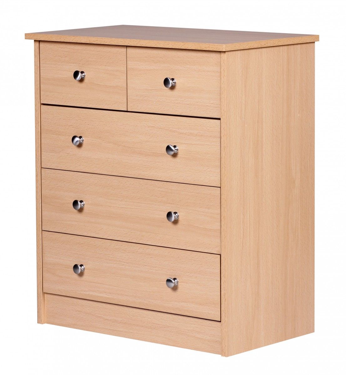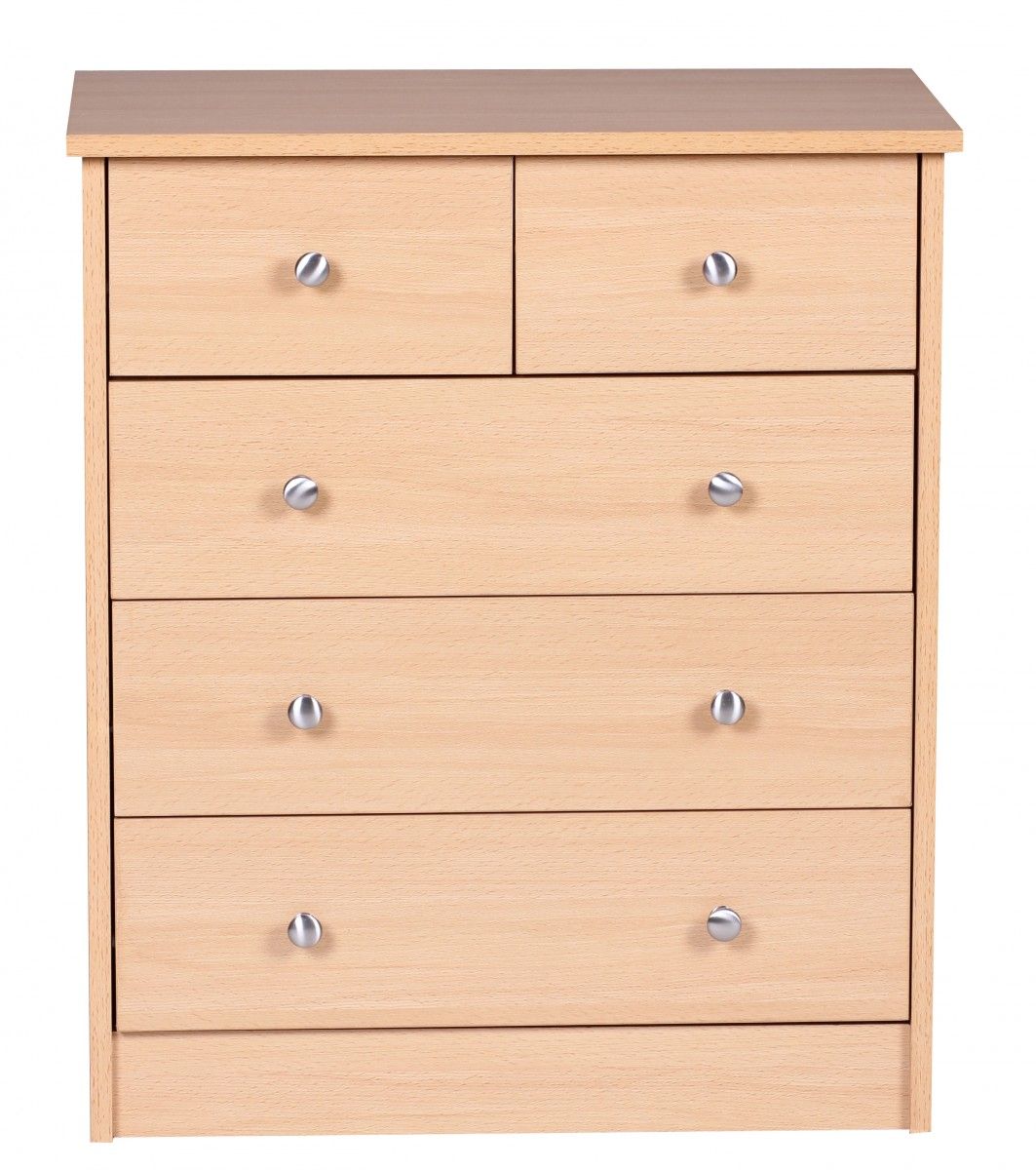 - Cinq tiroirs offrent un bel espace de rangement pour les accessoires du quotidien