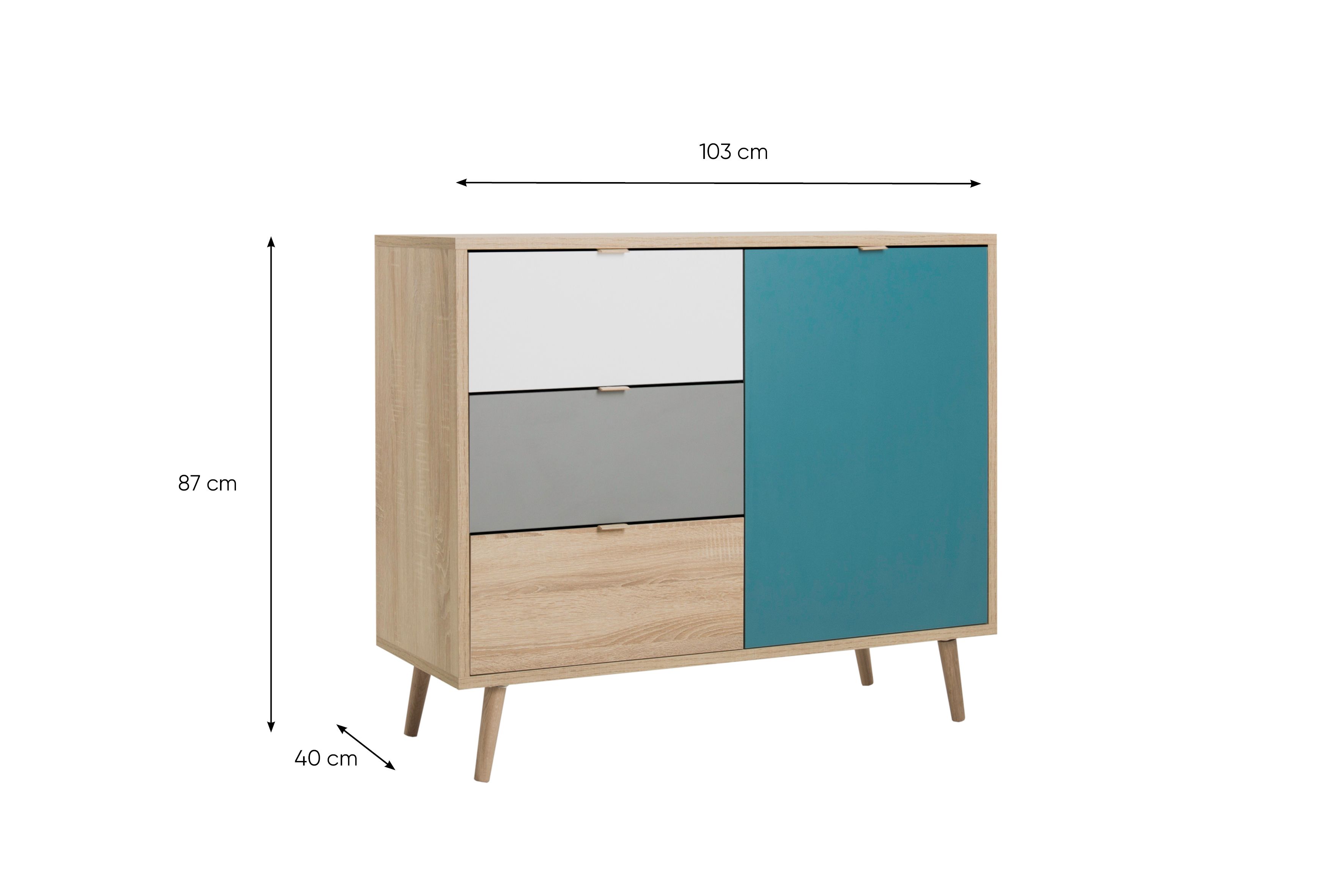 Nuance de couleur: | chêne Sonoma - blanc - bleu pétrole - gris | ||