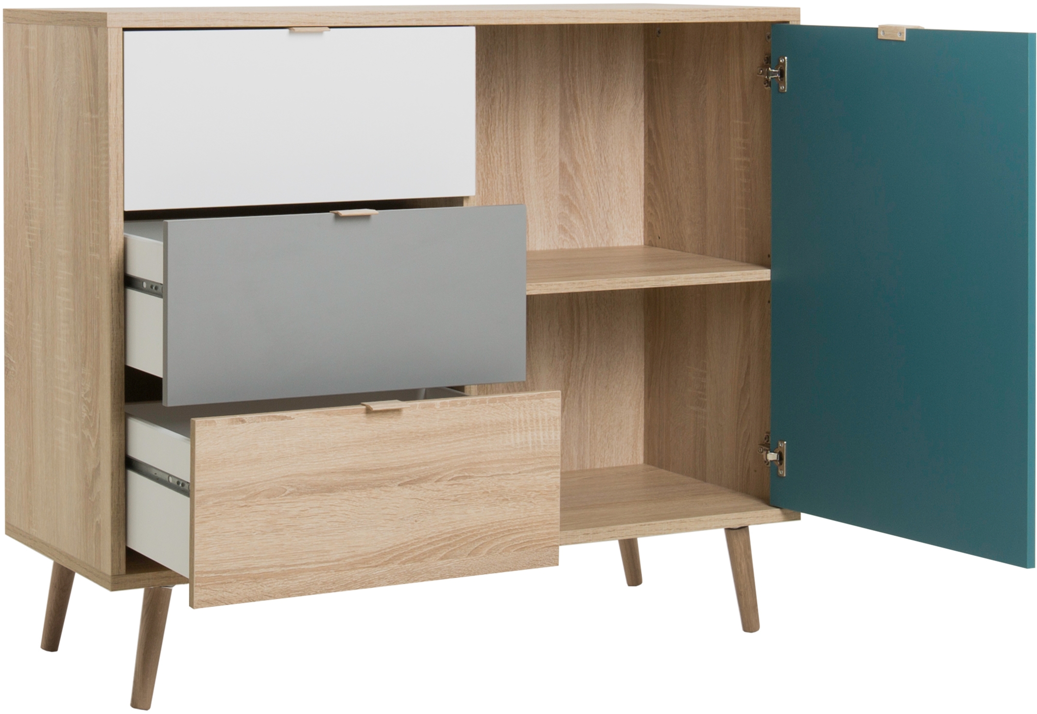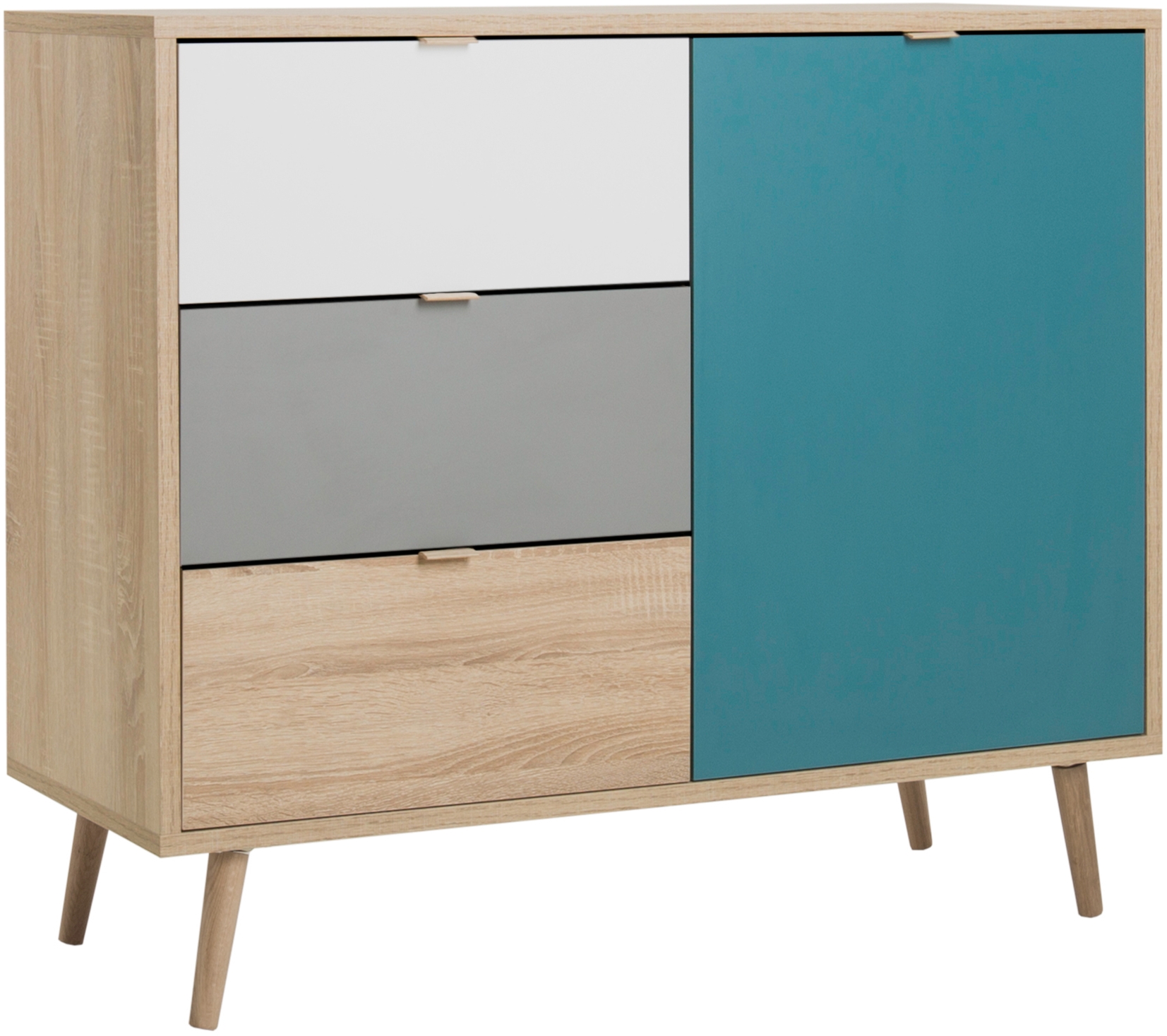 Façade : imitation chêne Sonoma / blanc / bleu pétrole / gris