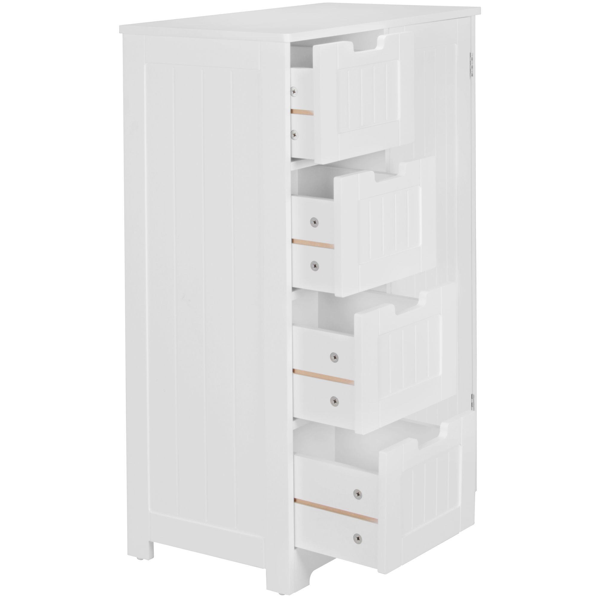 - DESIGN ✔ Meuble de salle de bains blanc de style campagne // 4 tiroirs et une porte // Encoches stylées en guise de poignées pour les tiroirss