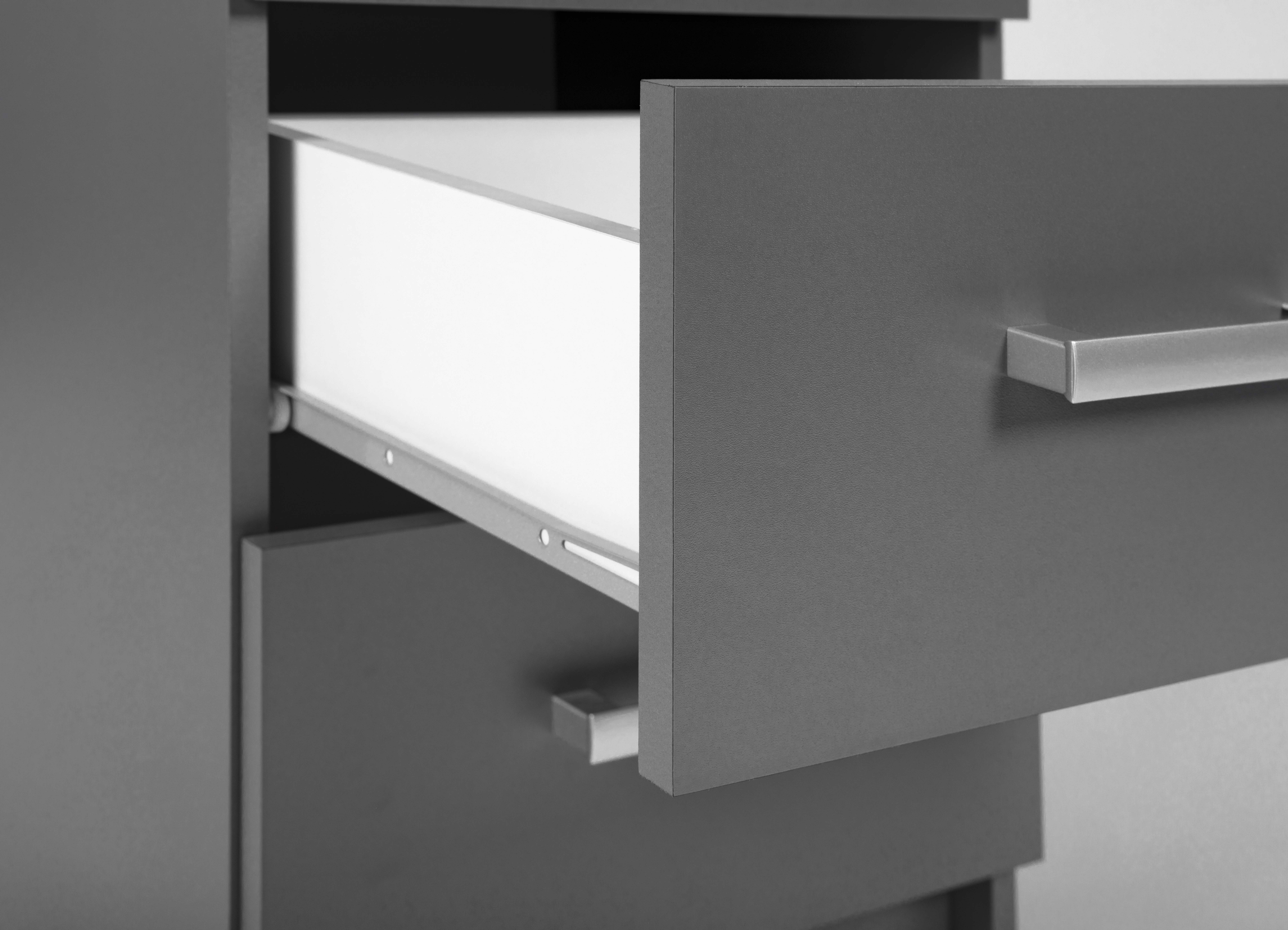 La commode Elenzio vous offre un espace de rangement polyvalent grâce à ses trois tiroirs montés sur glissières dans lesquels vous pouvez ranger soigneusement fournitures de bureau, dossiers, livres ou même vêtements.
