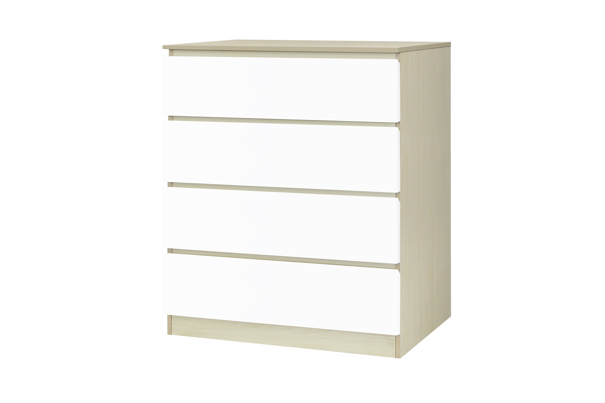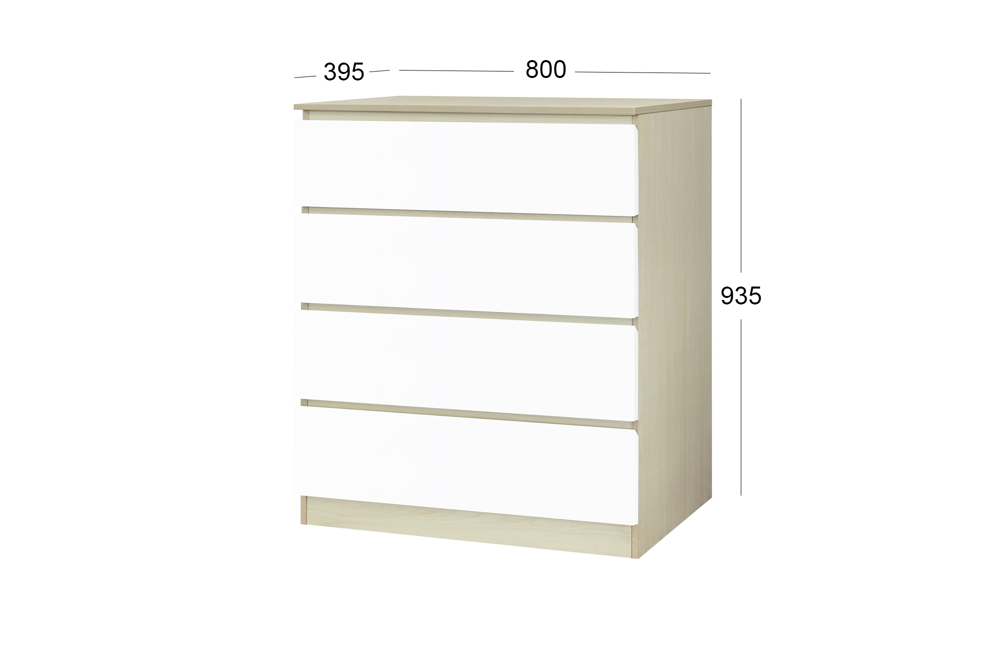 La commode intemporelle dans un look scandinave ultra chic est proposée dans une combinaison de couleurs ton naturel et ton blanc qui se combine à merveille avec différents styles grâce à sa neutralité. La commode offre dans quatre tiroirs un bel espace de rangement pour vos affaires. Grâce à sa sobriété, elle est très polyvalente et peut s'utiliser dans différentes pièces. Elle est pratique et fonctionnelle dans le salon, la salle à manger et la chambre qu'elle met joliment en valeur.