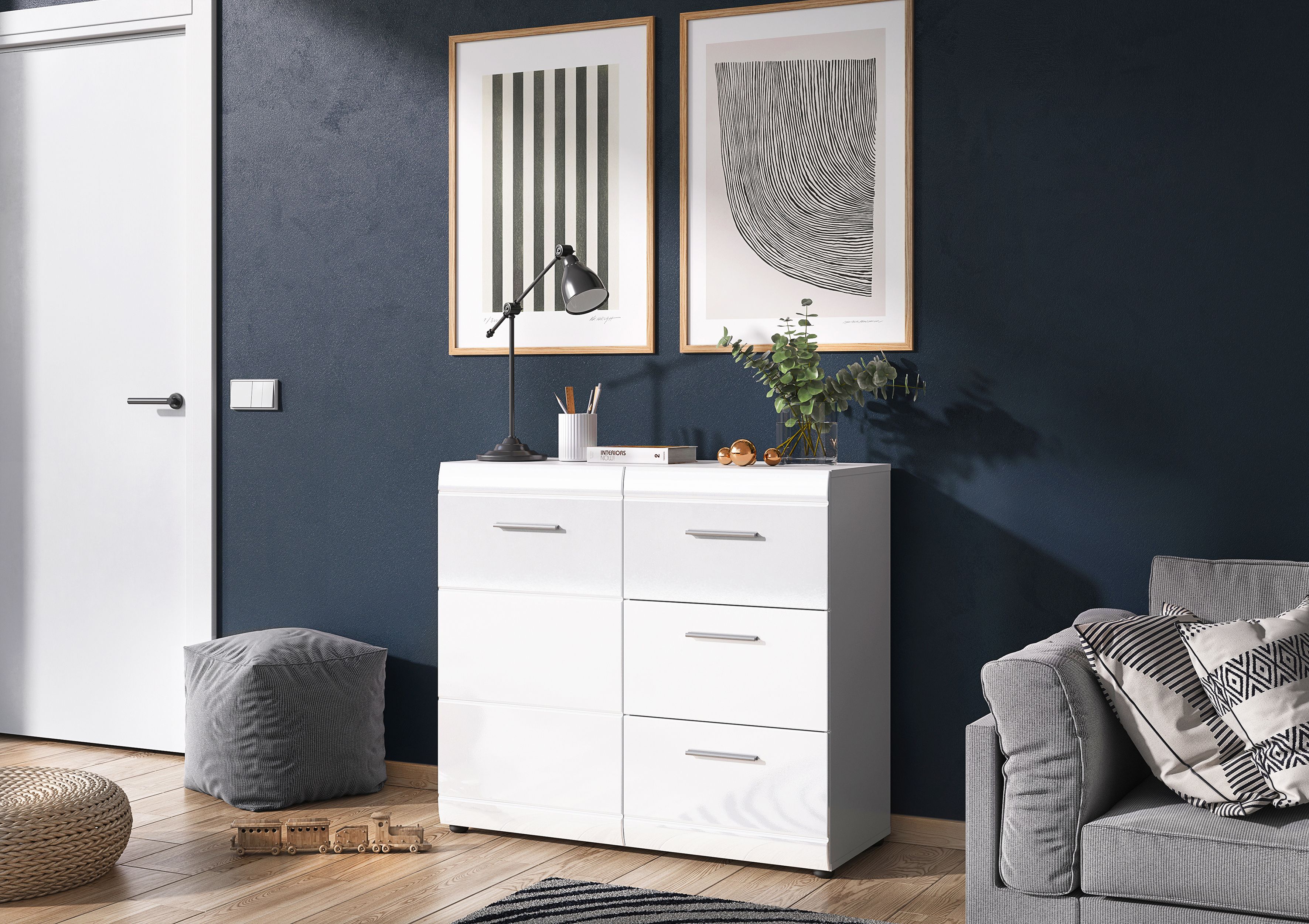 Façade : MDF (panneau de fibres à densité moyenne), blanc ultra brillant