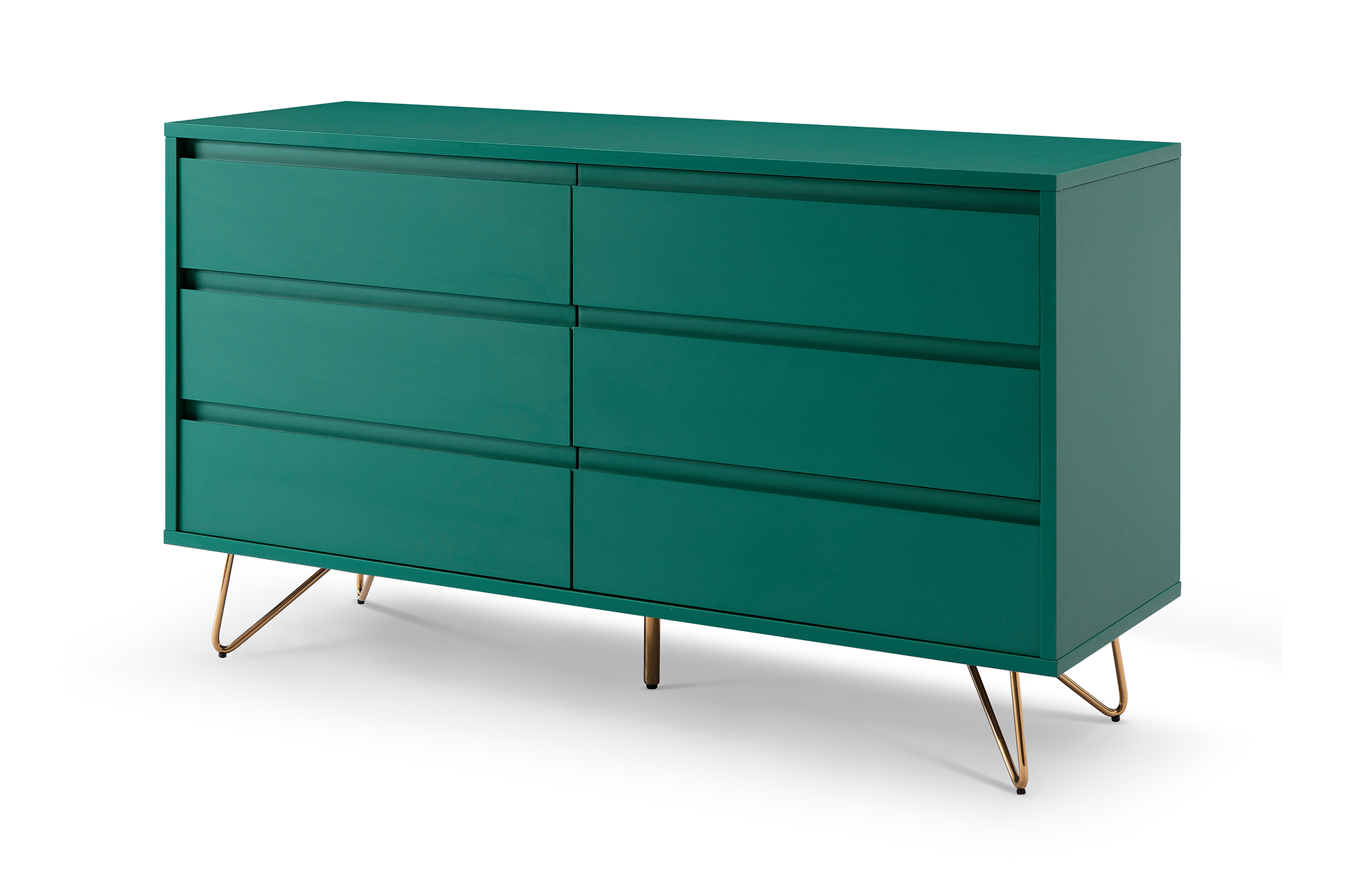 Cette commode moderne dans un joli design scandinave attirera tous les regards. L'association de teintes sobres et des pieds métalliques ton doré fait de cette commode un meuble très particulier. Grâce à six tiroirs spacieux, vous disposerez de beaucoup d'espace de rangement stylé pour les petites choses du quotidien. Le design scandinave moderne de cette commode large sera toujours tendance et se combinera à merveille avec votre ameublement déjà existant.