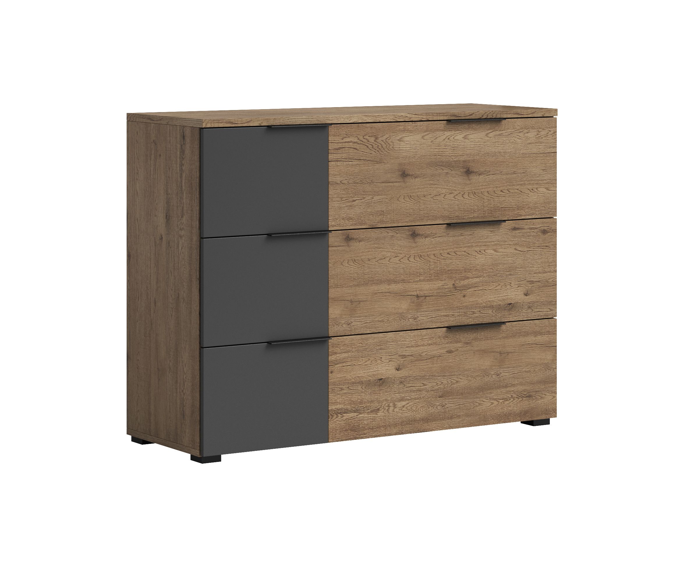 Commode moderne LINEA aspect chêne Bartex, ton graphite - Une commode moderne & expressive pour votre chambre à coucher - 120 x 89 x 40 cm (L/H/P)