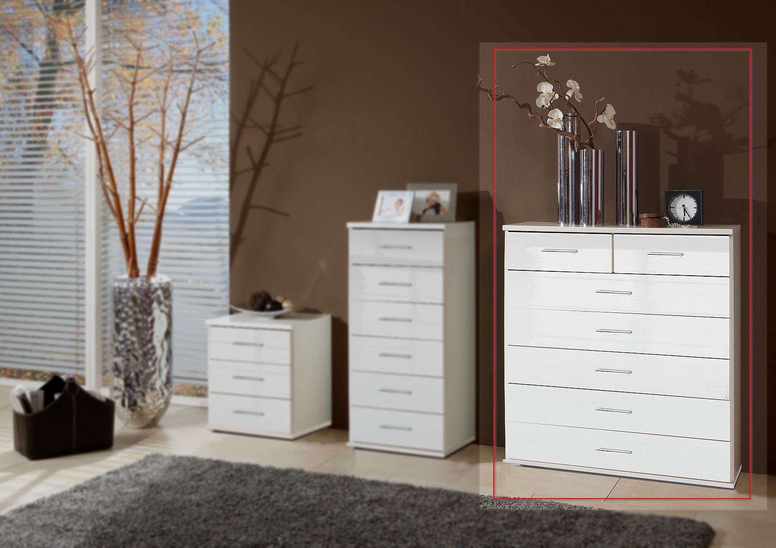 2 petits et 5 grands tiroirs