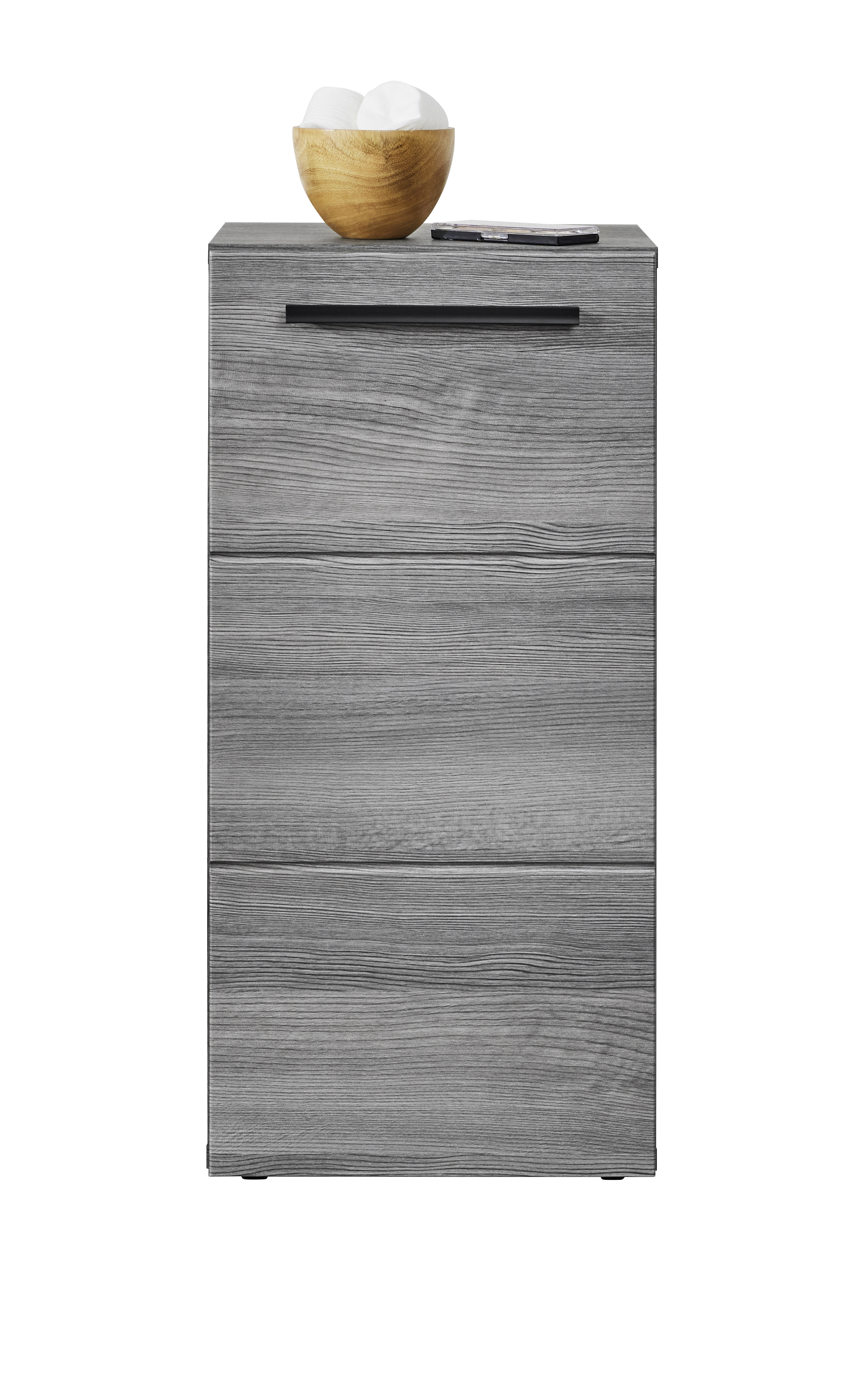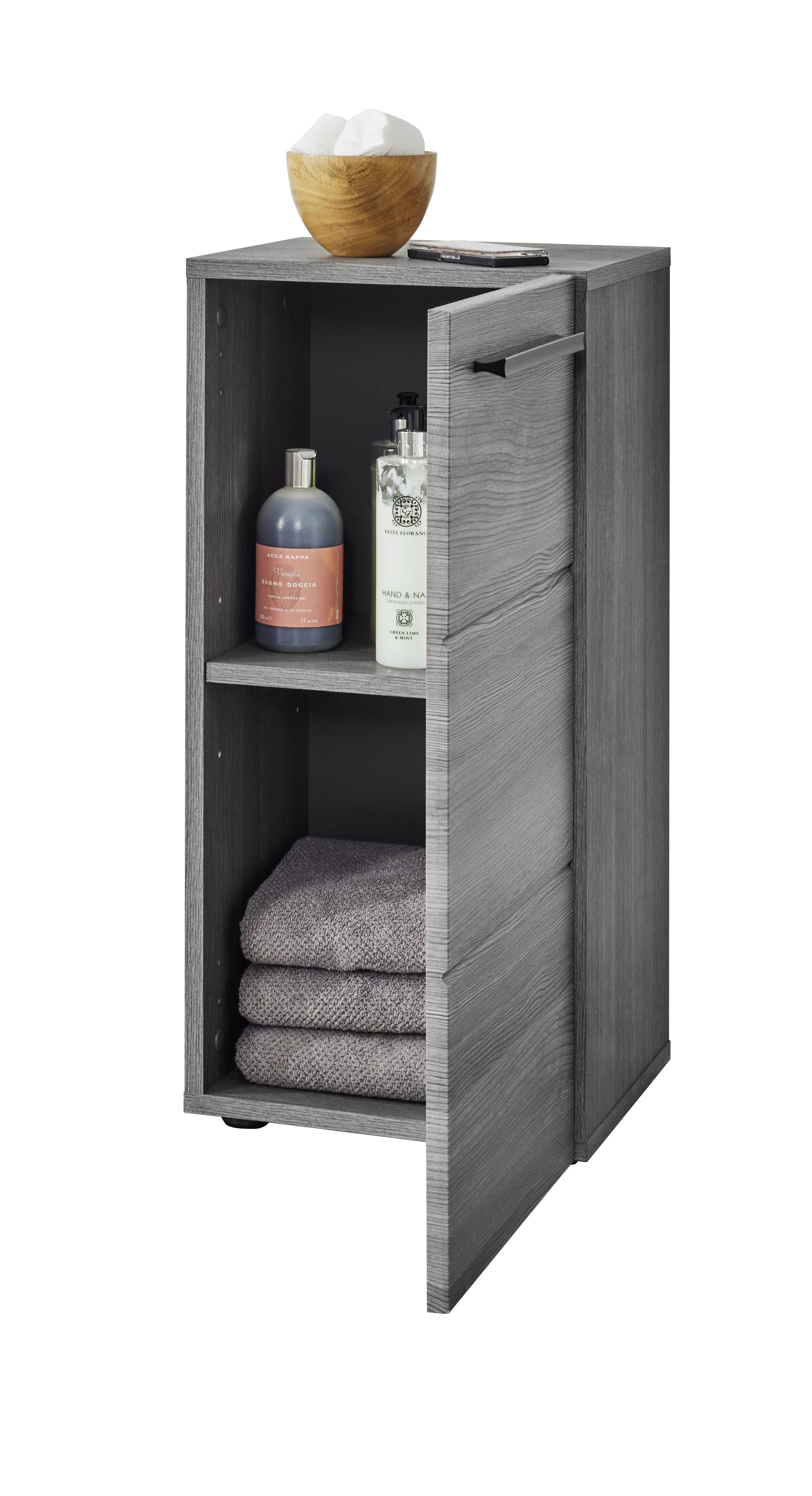 La porte avec fonction Soft-Close permet une fermeture silencieuse et en douceur. À l'intérieur, une étagère offre un espace de rangement pratique pour les accessoires de salle de bain, les accessoires de décoration ou les objets du quotidien. La commode s'intègre parfaitement dans les concepts modernes de salon ou de salle de bain.