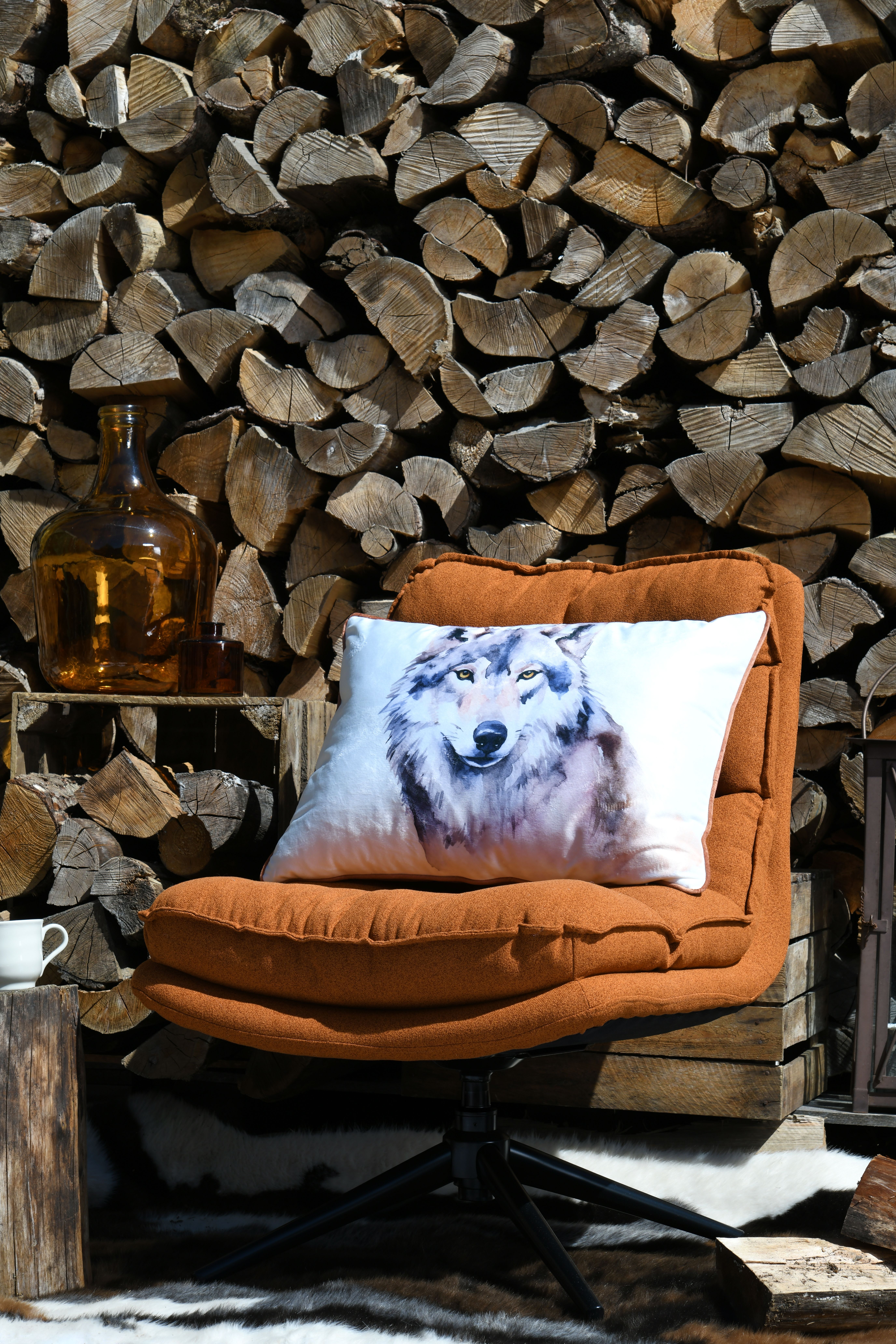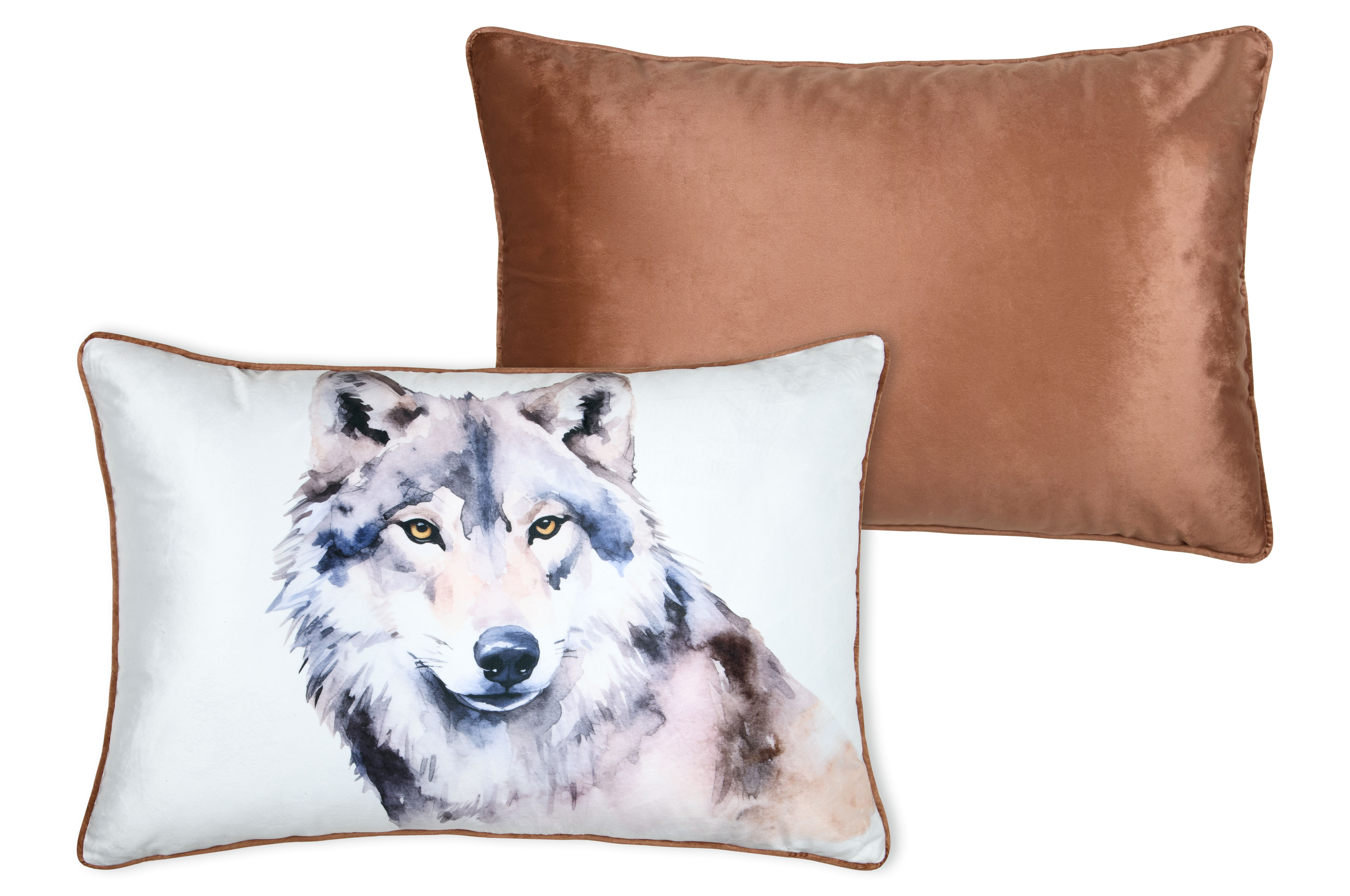 Coloris : blanc, beige, marron, gris avec motif imprimé : face avant motif loup et face arrière ton marron uni