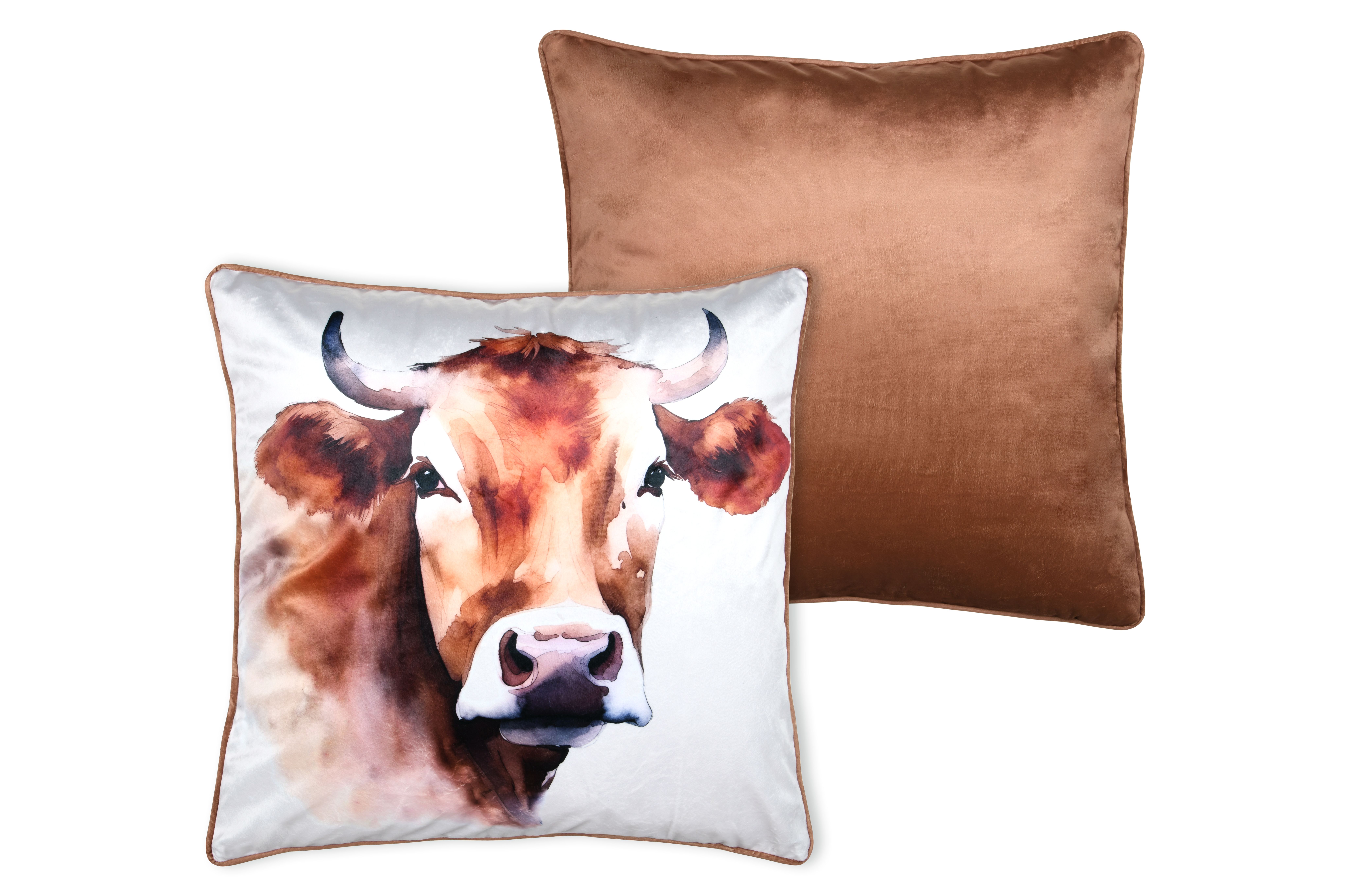 Coloris : beige, marron avec motif imprimé : face avant motif vache et face arrière ton marron uni