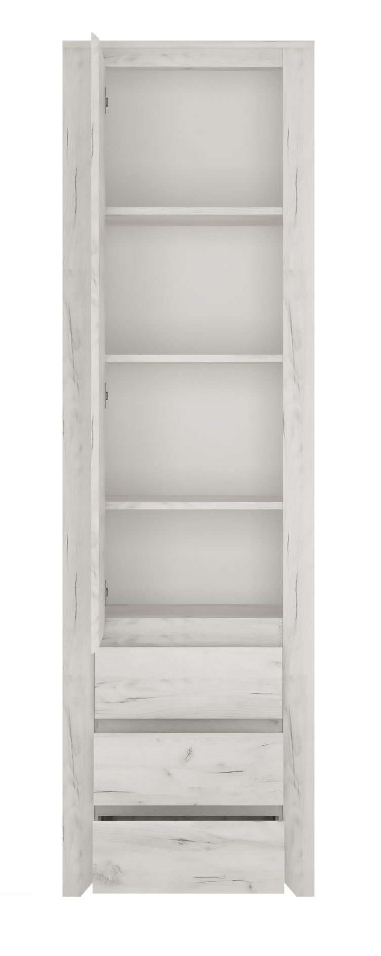 1 porte avec, derrière elle, 3 tablettes amovibles