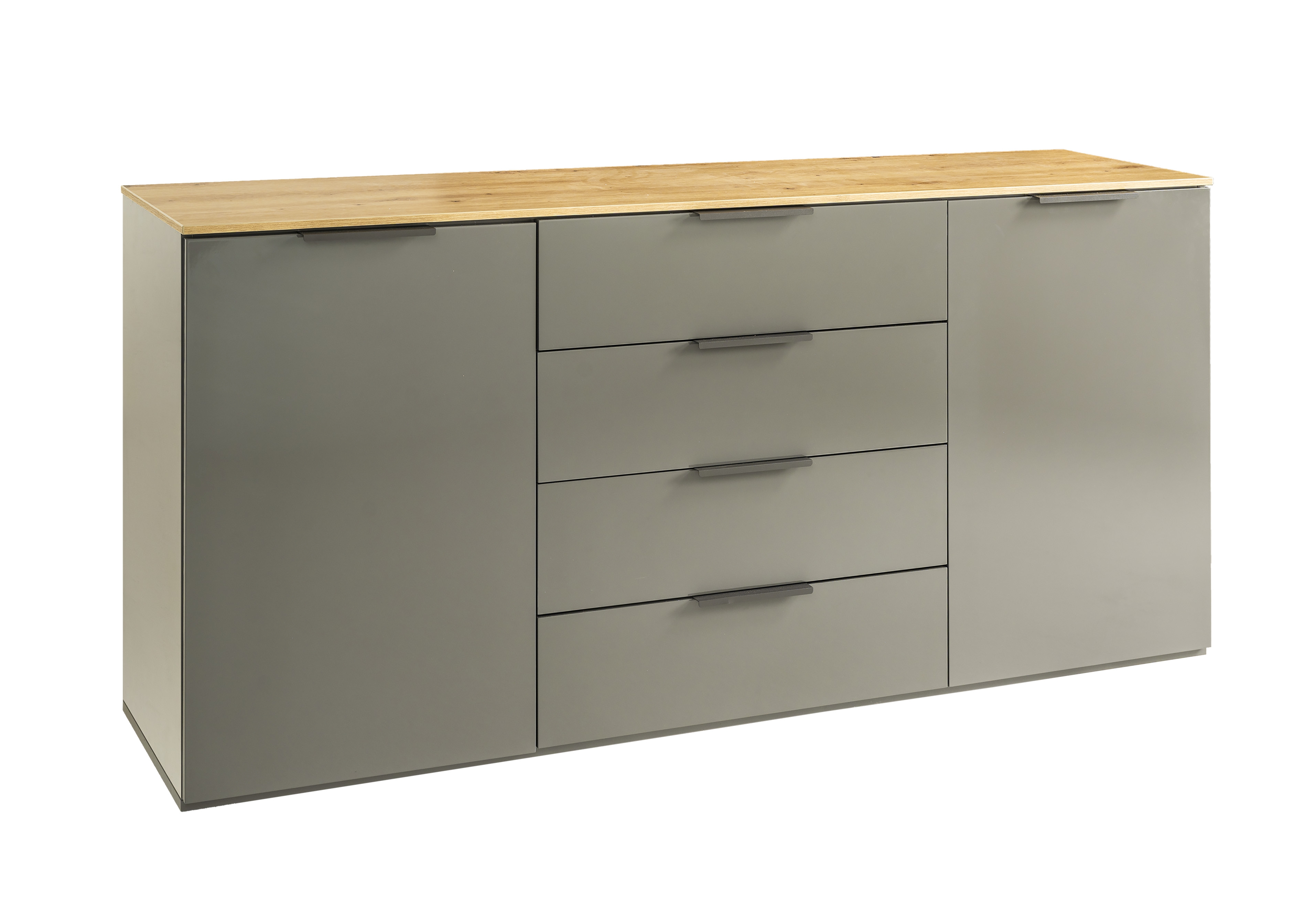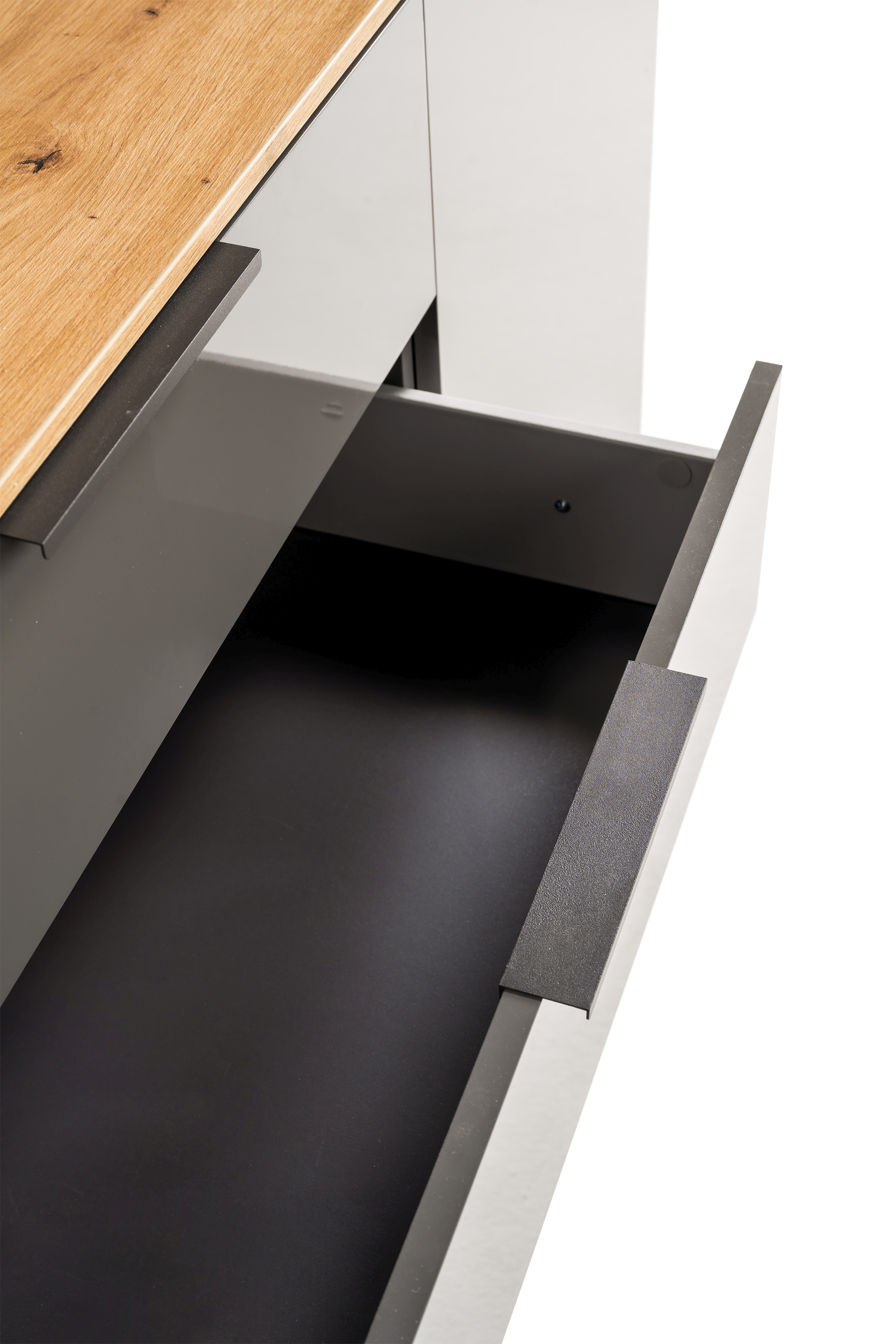 Caisson et façade : décor chêne Artisan et ton gris titane ultra brillant