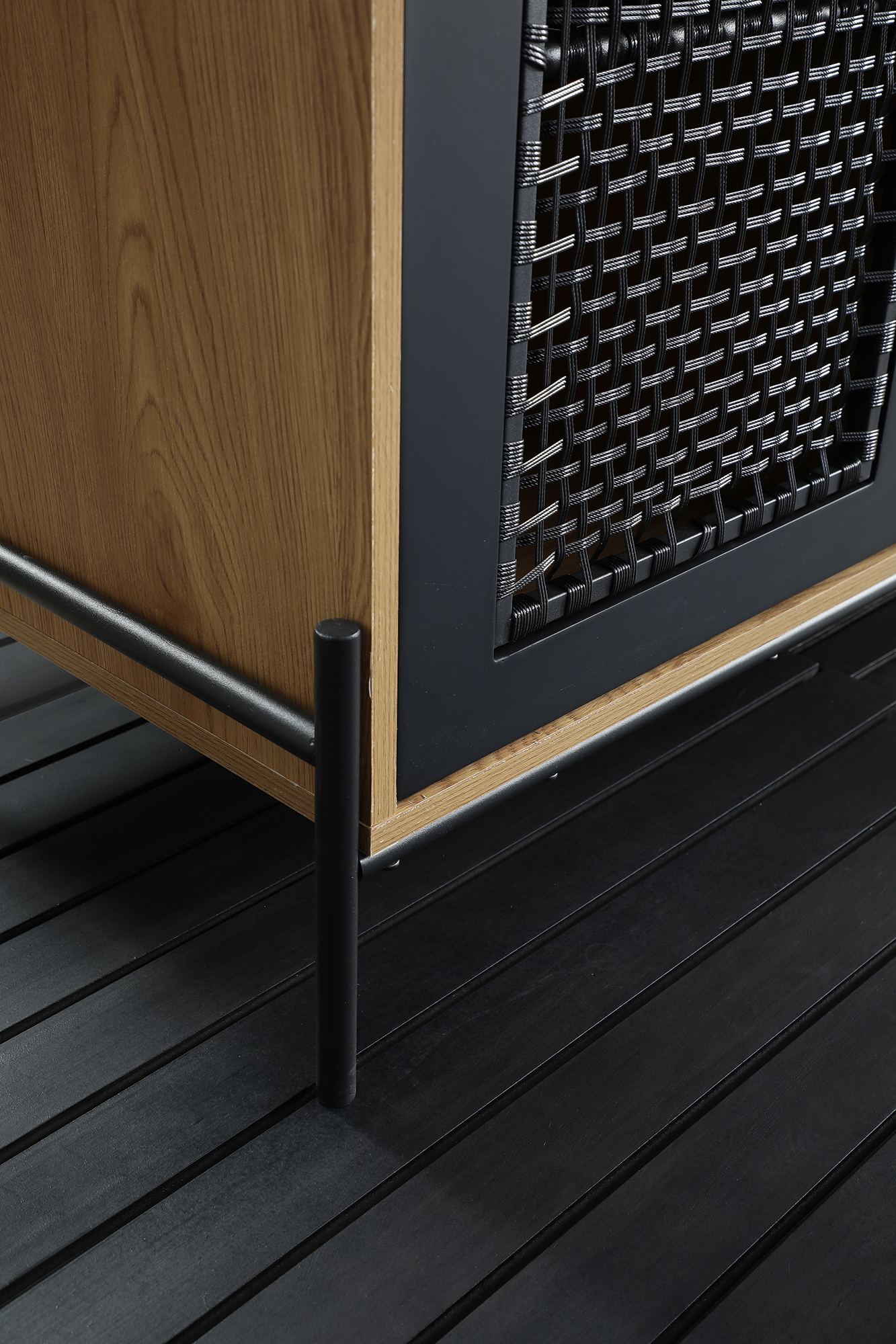 - Avec inserts ton noir mat en poly rotin