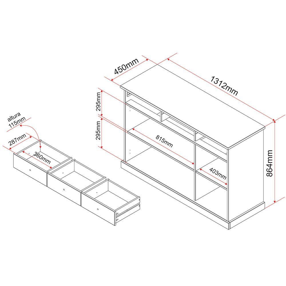 Doté de trois tiroirs et de quatre espaces de rangement dissimulés derrière de larges portes, il représente une solution de stockage à la fois fonctionnelle et esthétique. La surface supérieure permet également d’exposer des objets décoratifs tels qu'un vase ou un vide-poches. Les tiroirs sont montés sur des rails métalliques pour un grand confort d'utilisation.