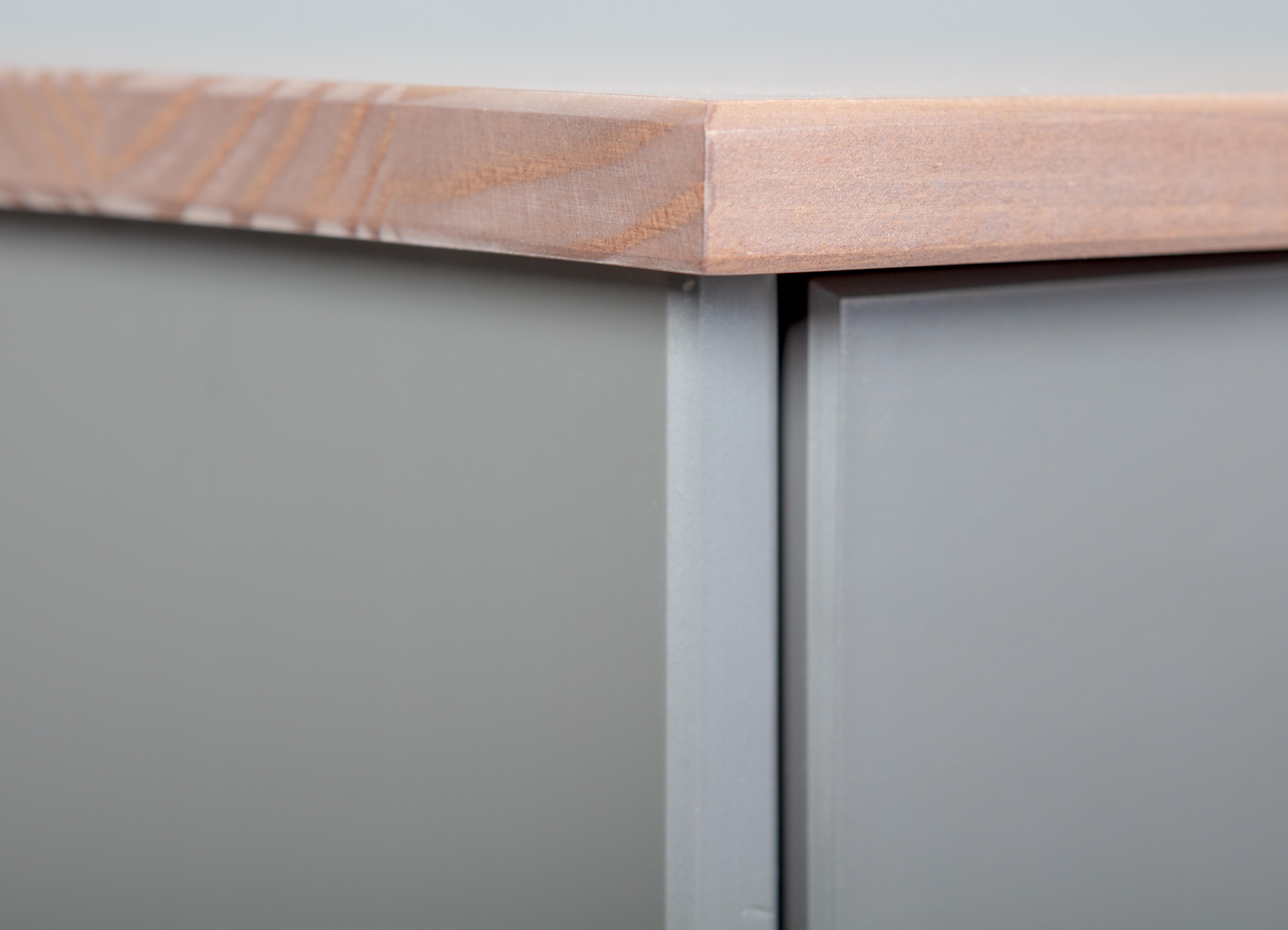Pin massif (Brésil) laqué ton gris et plateau laqué ton marron sépia