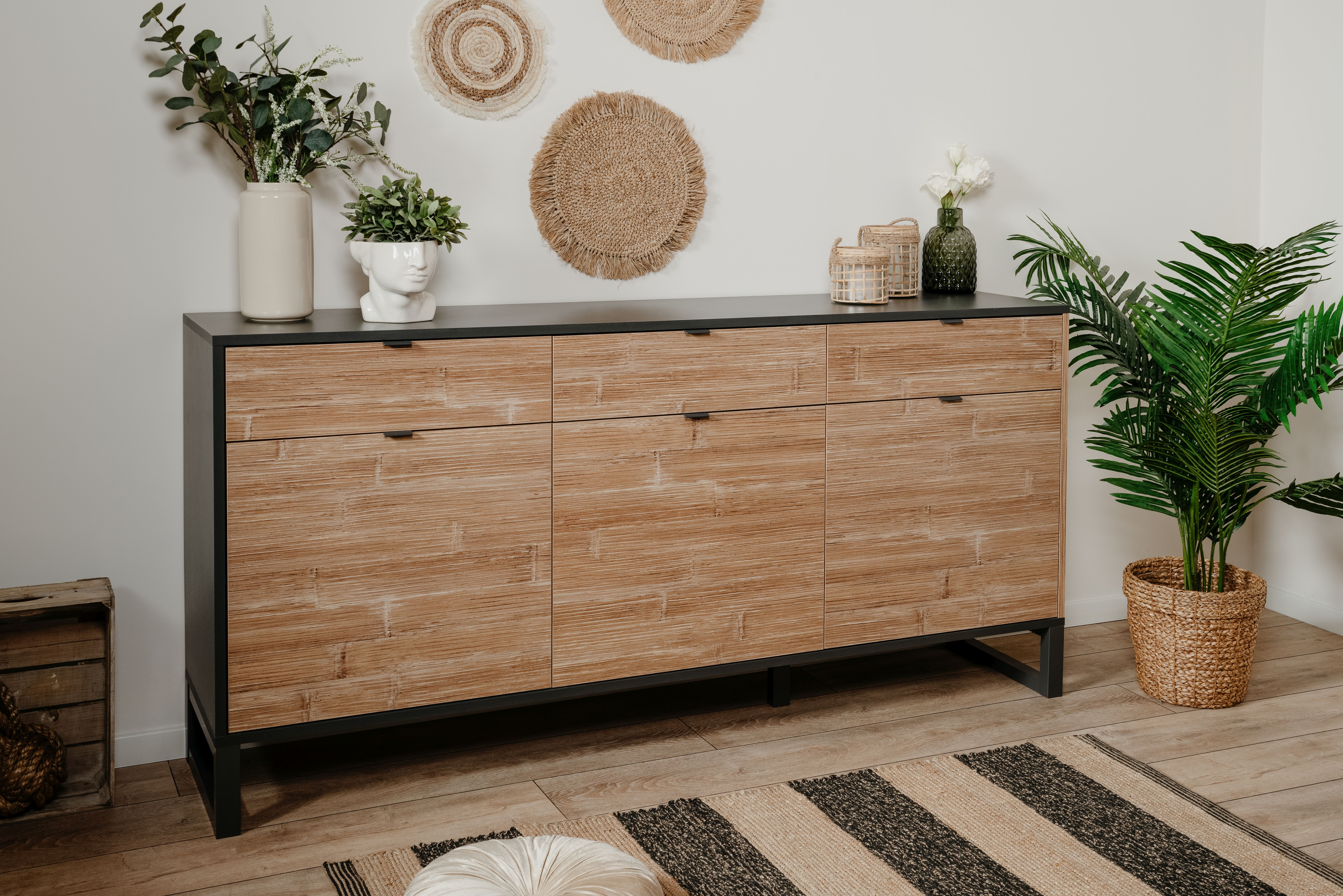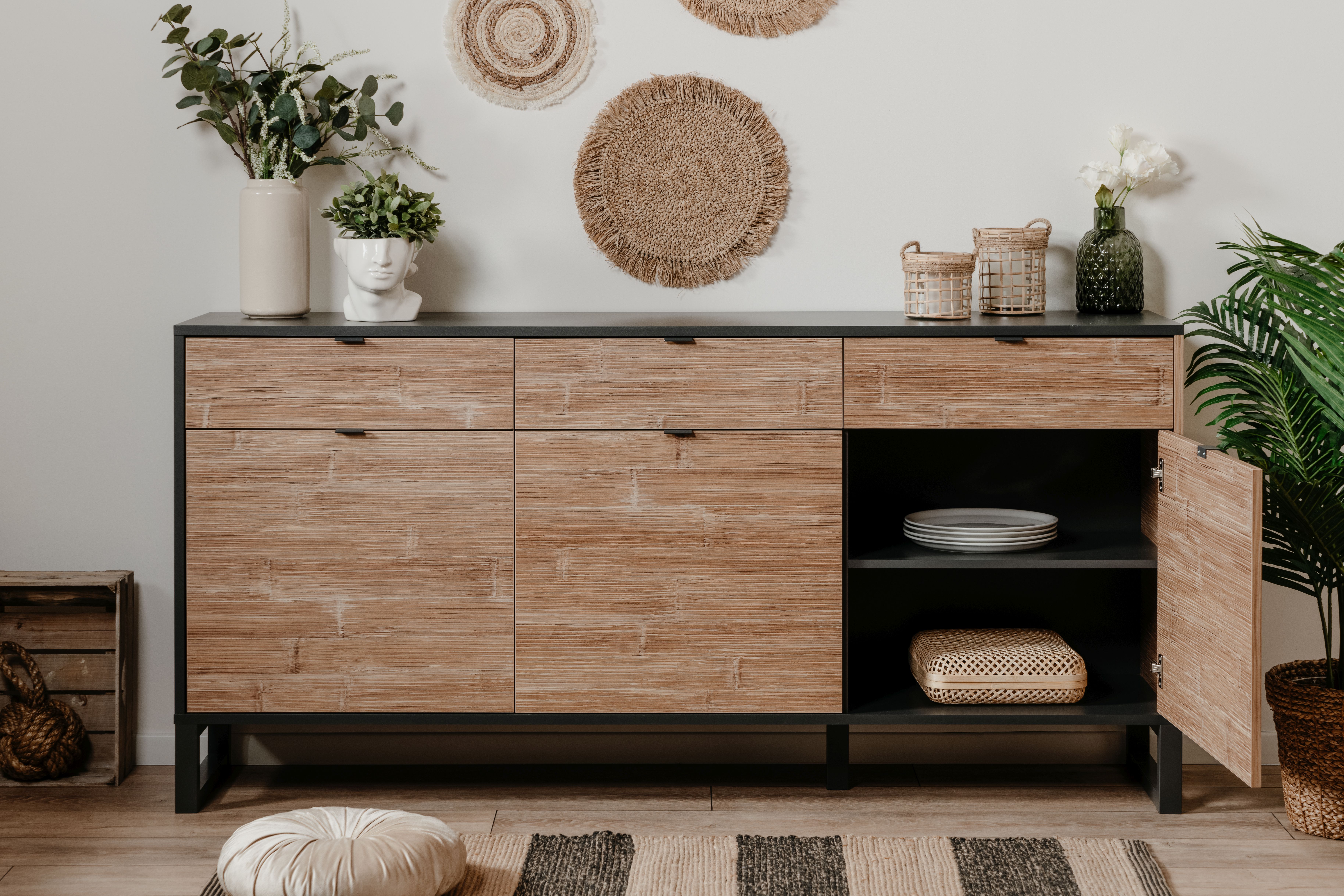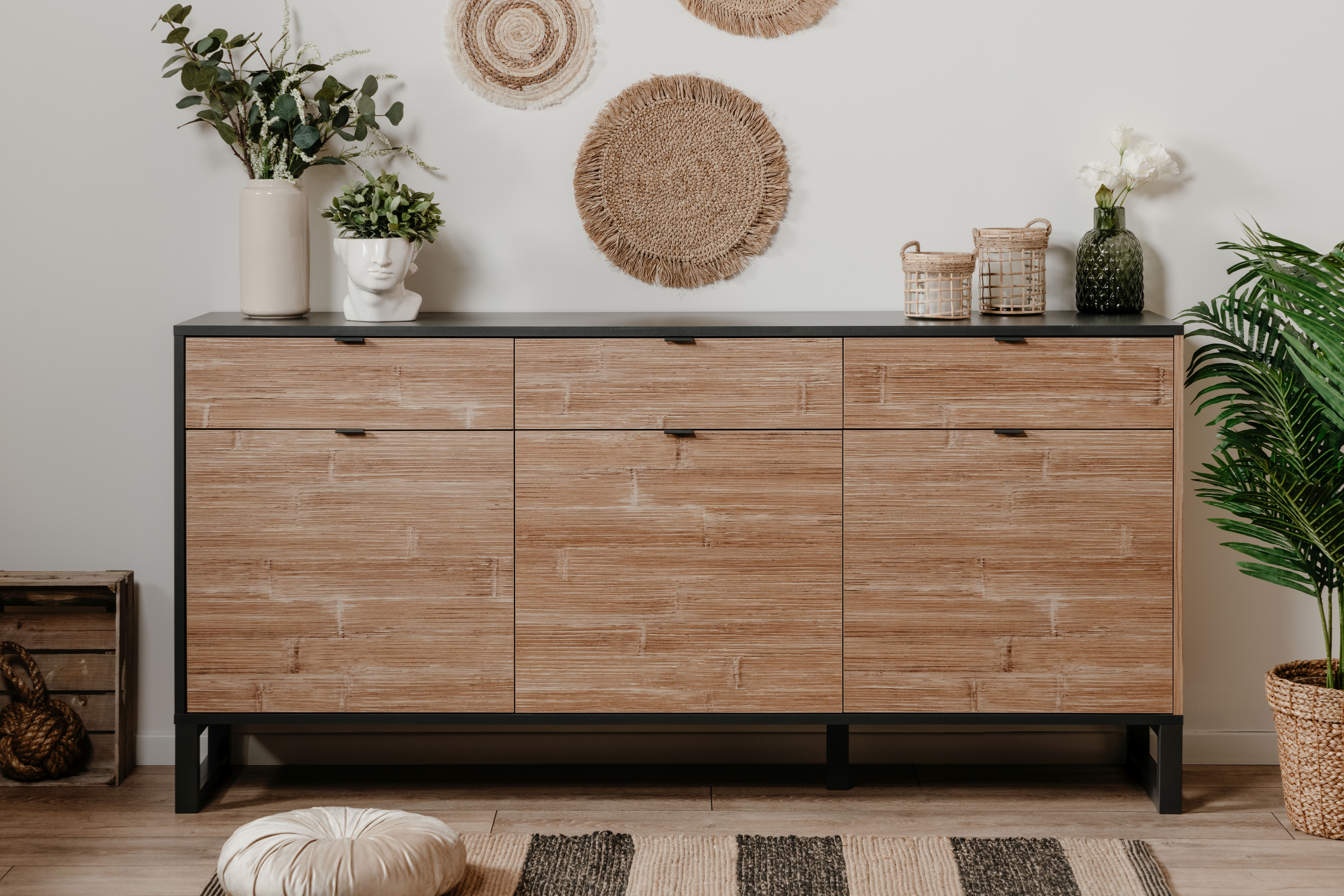 décor bambou et MDF (panneaux de fibres de bois de densité moyenne) ton anthracite