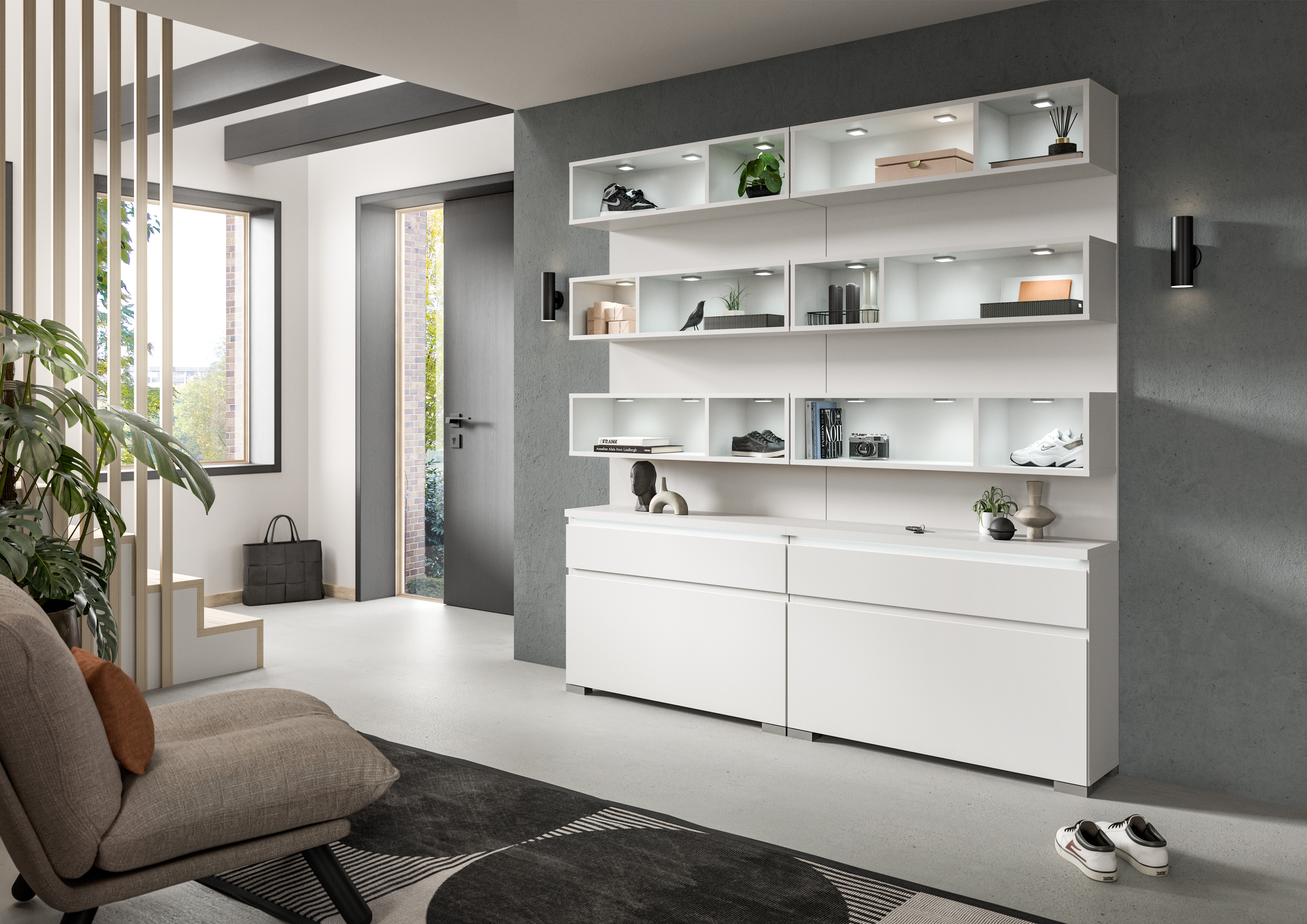 Cet ensemble est parfaitement adapté aux familles et aux personnes seules qui attachent de l’importance à un intérieur ordonné et contemporain.