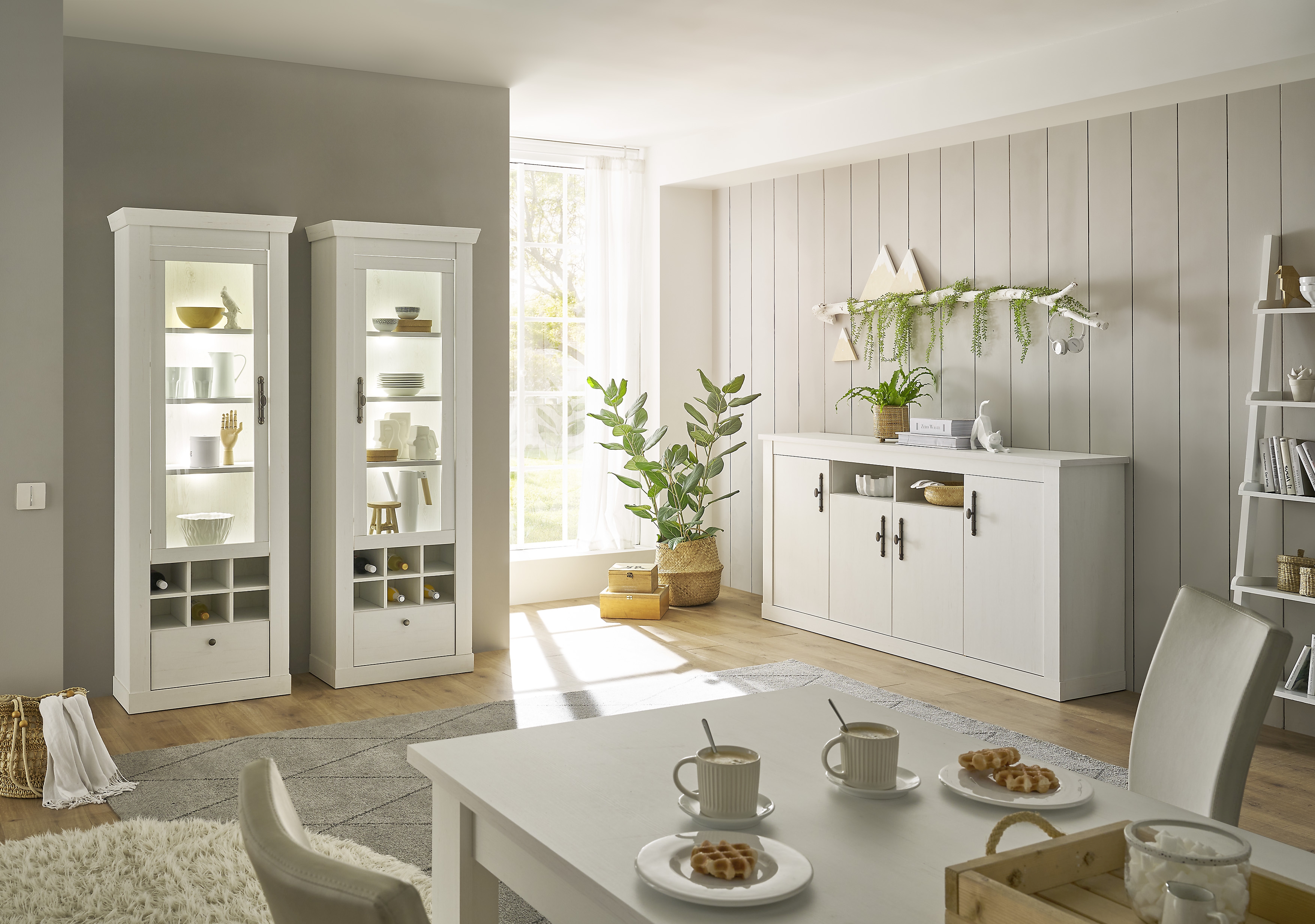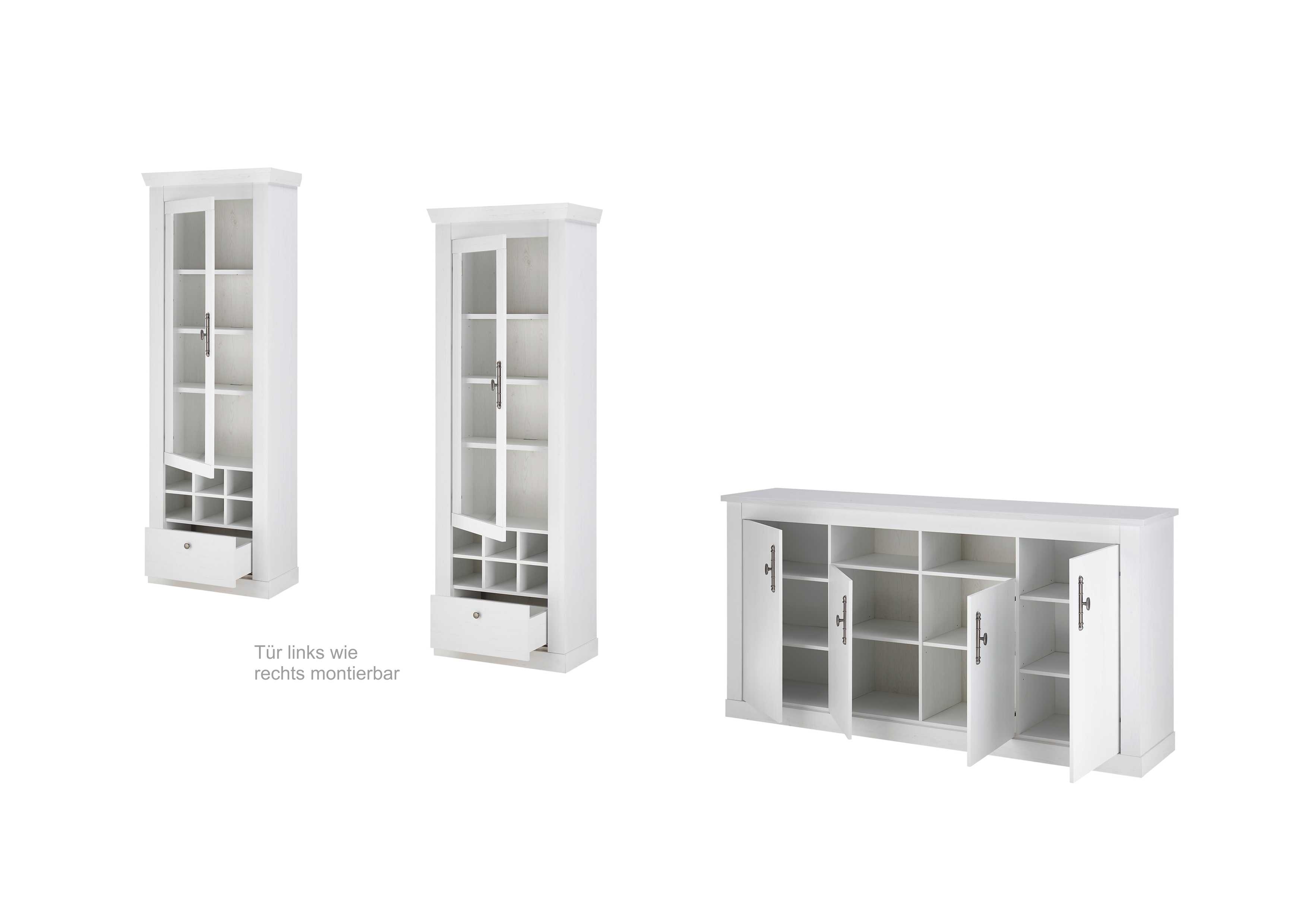 2 meubles vitrines comprenant, chacun, 1 porte avec encadrement, 3 tablettes, 1 tiroir et 1 rangement pour bouteilles avec 6 casiers