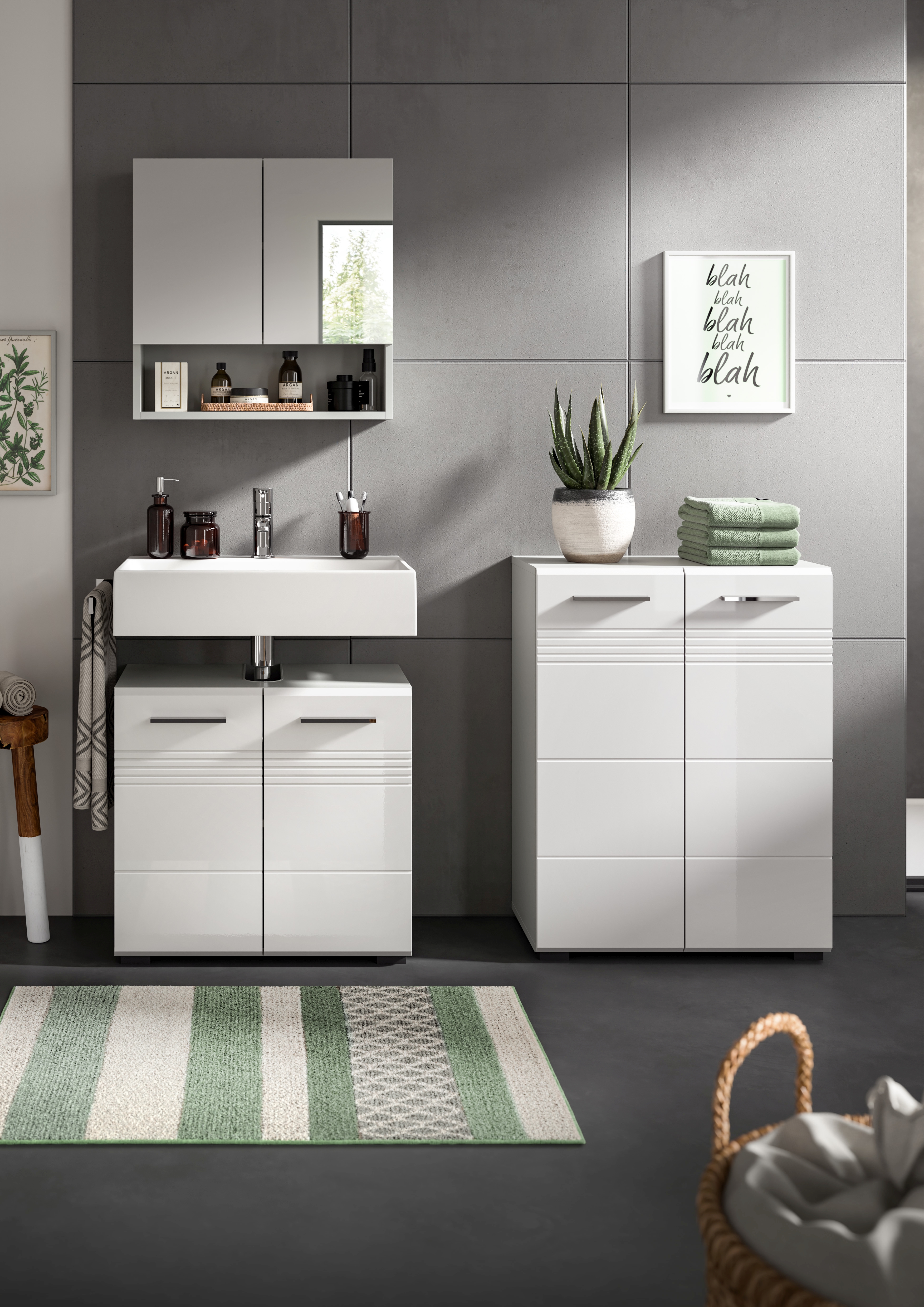 1 meuble de salle de bains avec 2 portes et 2 tablettes amovibles