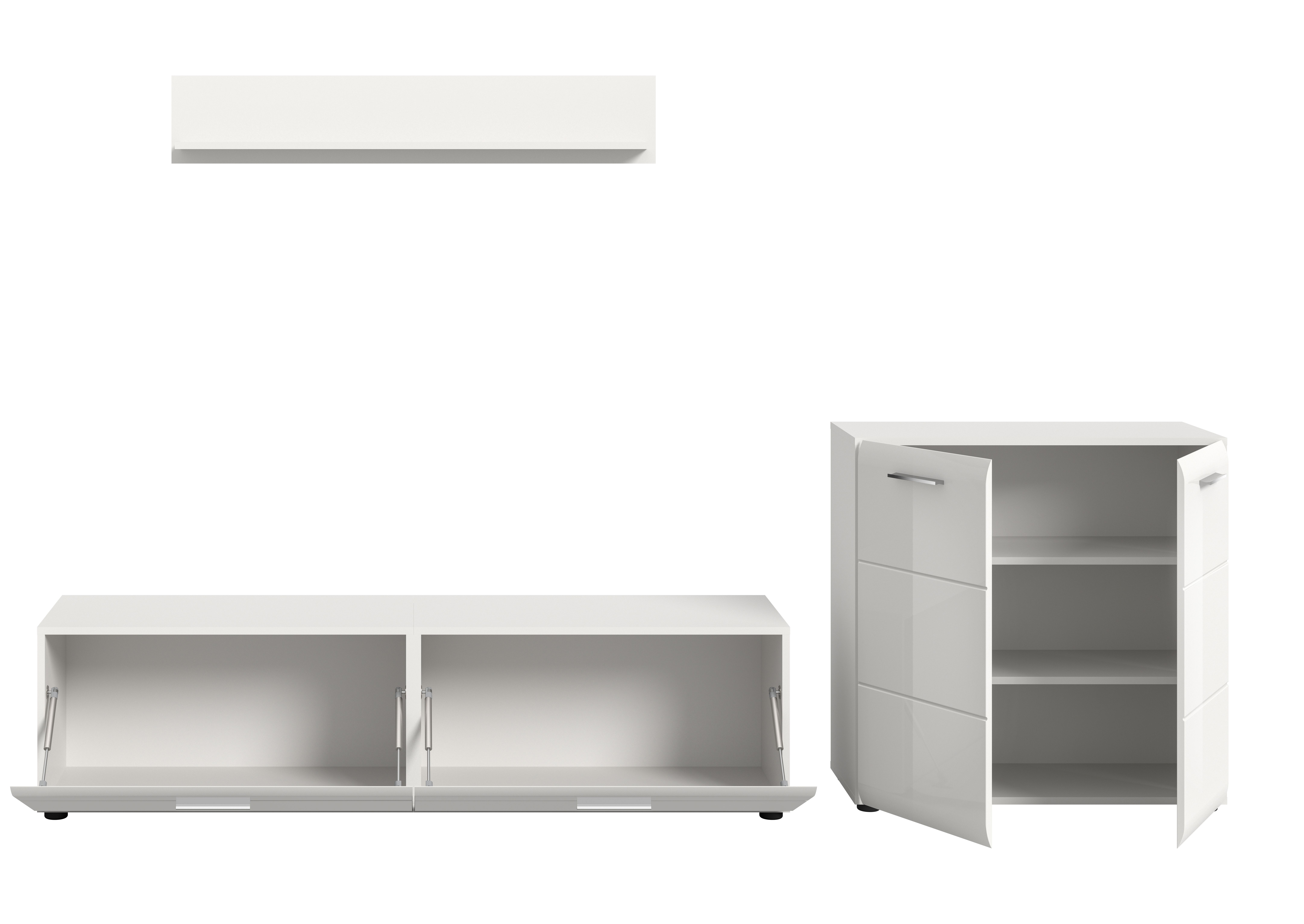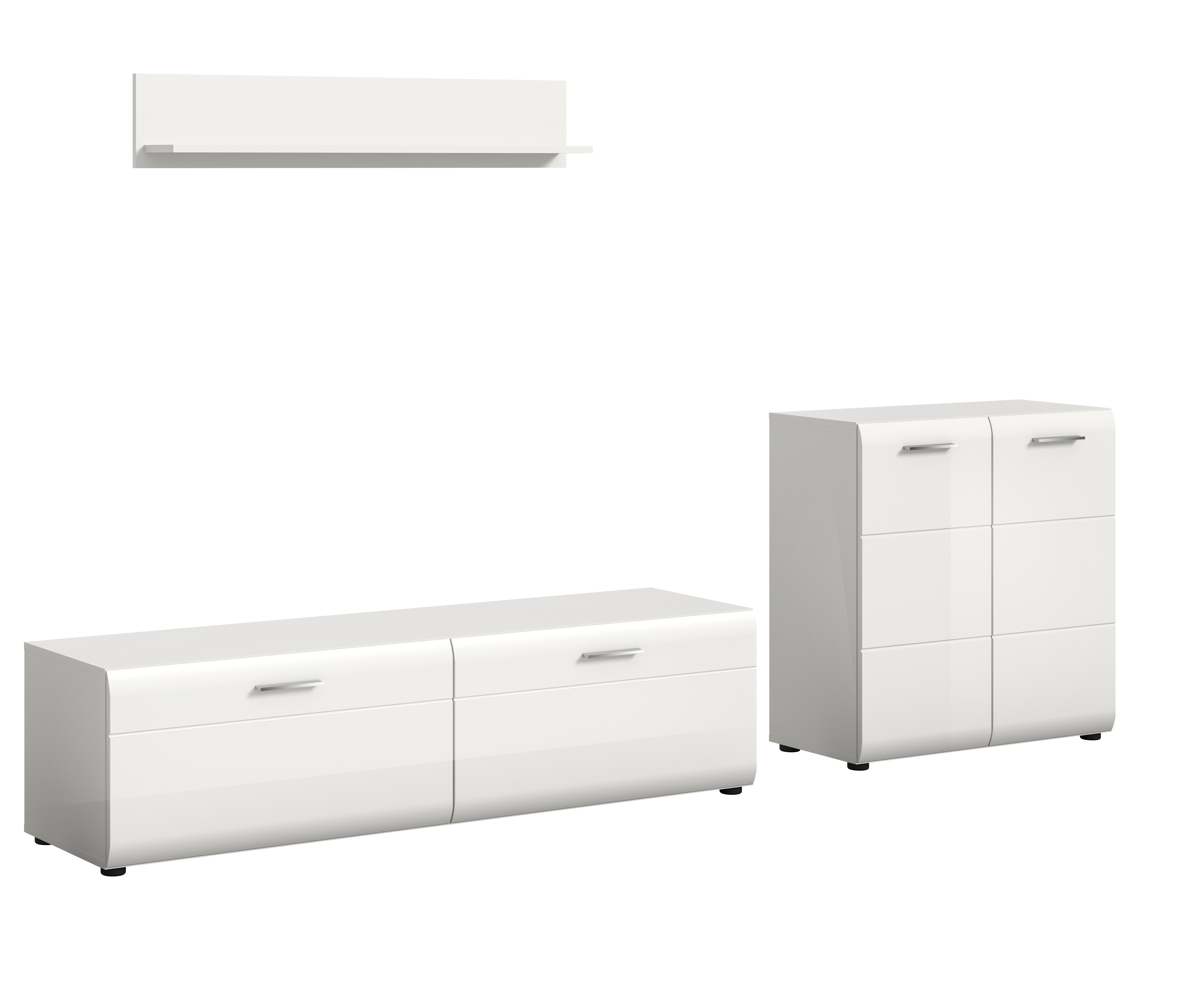 Complétez votre ameublement avec notre ensemble de salon 3 éléments dans un style élégant ! Composé d’un bahut, d’un banc TV et d’une étagère murale, il offre - avec ses dimensions généreuses de 255 x 160 x 41 cm et un espacement entre les éléments de 15 cm - une solution optimale pour le rangement et la mise en valeur de vos objets.