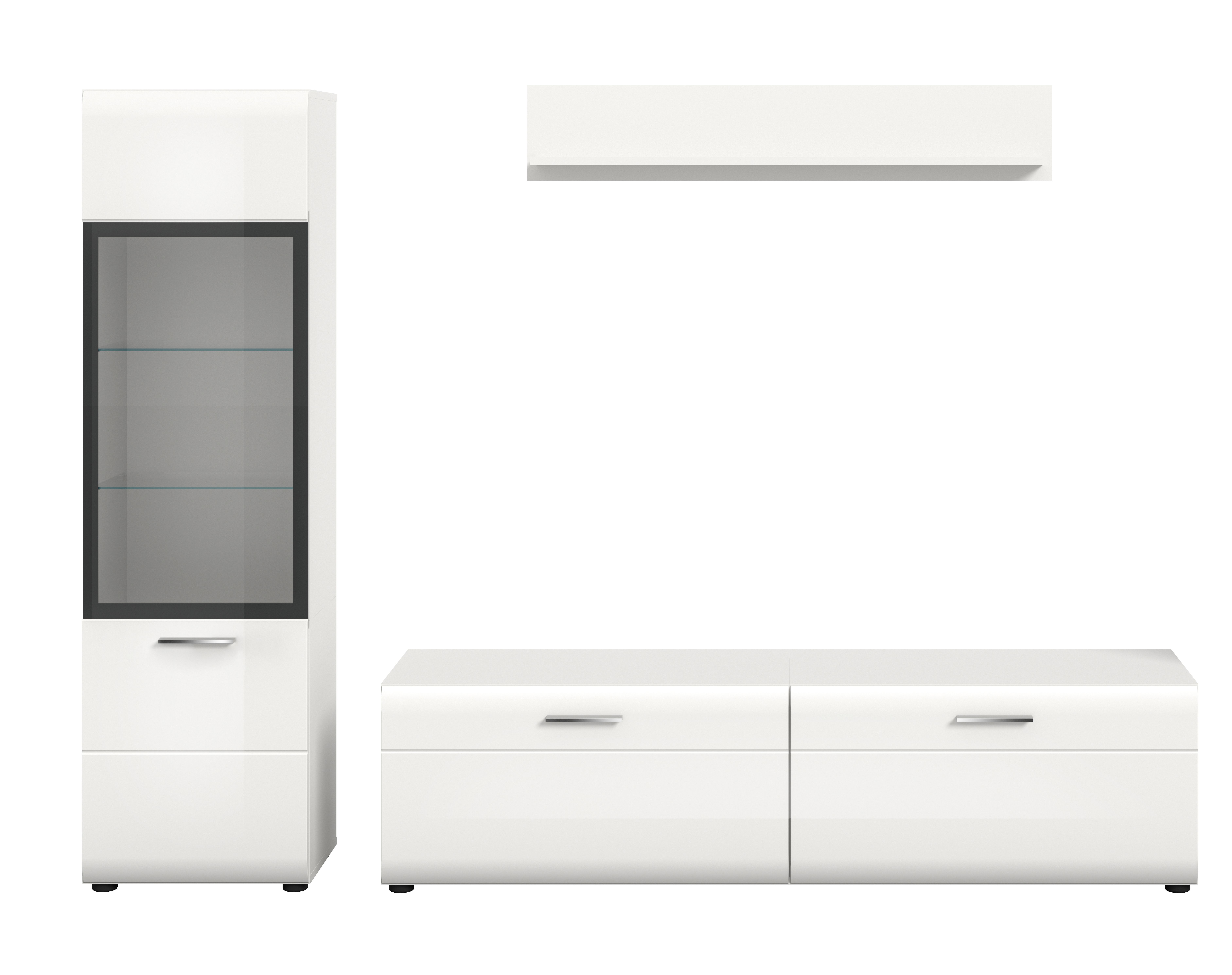 - Ensemble de salon 3 pièces, composé de : 1 vitrine, 1 meuble bas, 1 étagère murale