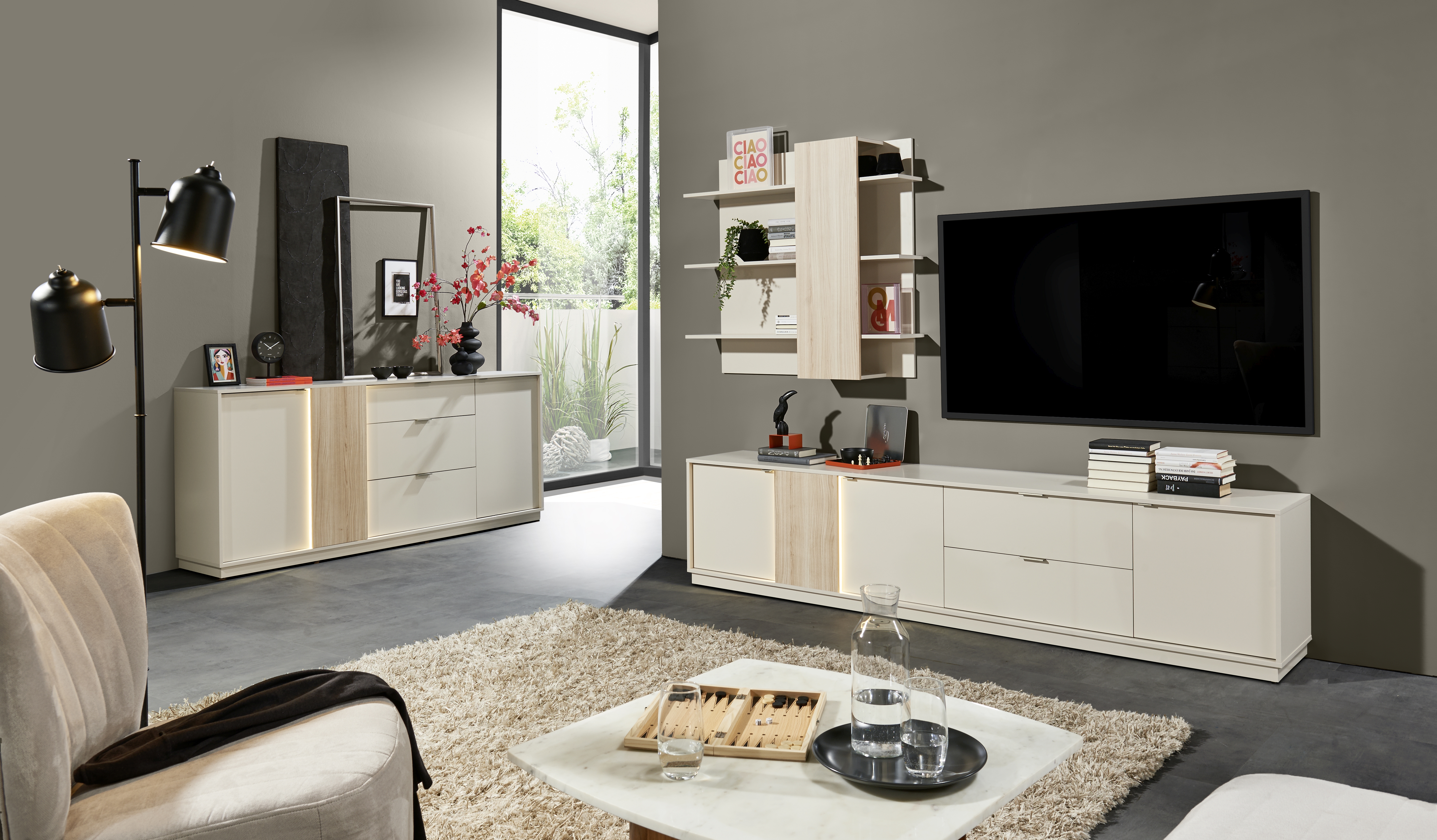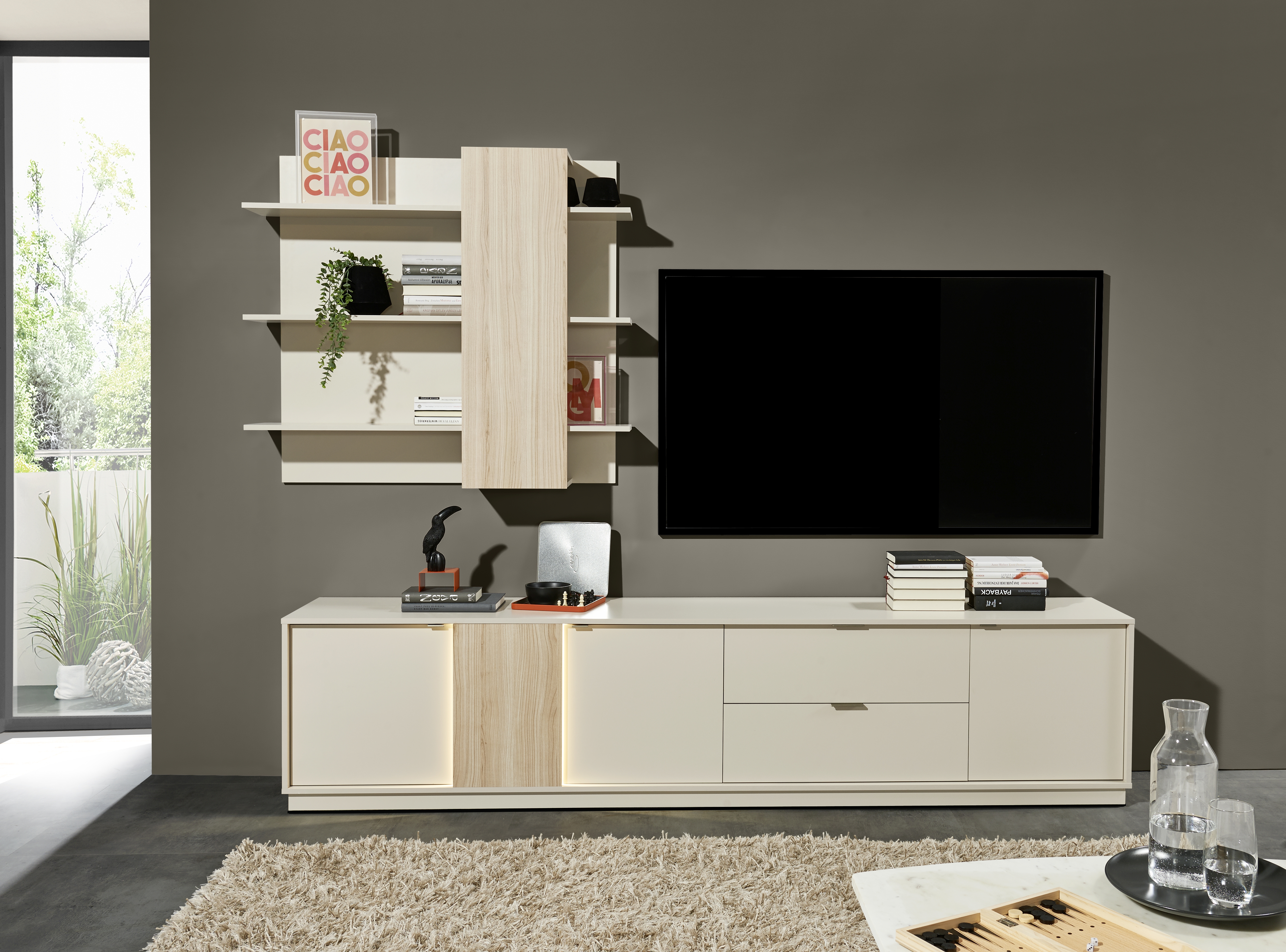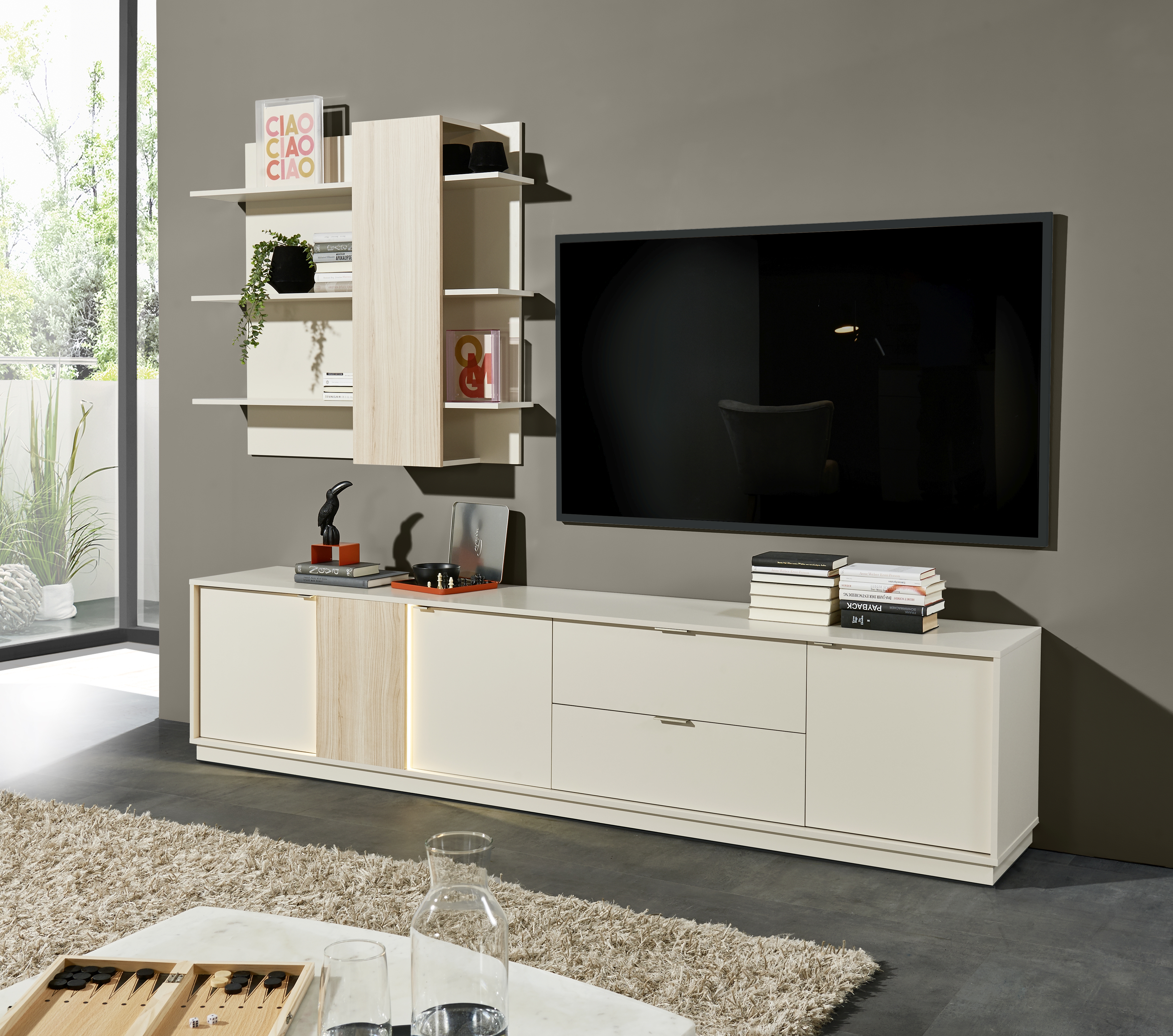 · Ensemble composé d'un meuble bas et d'une étagère murale