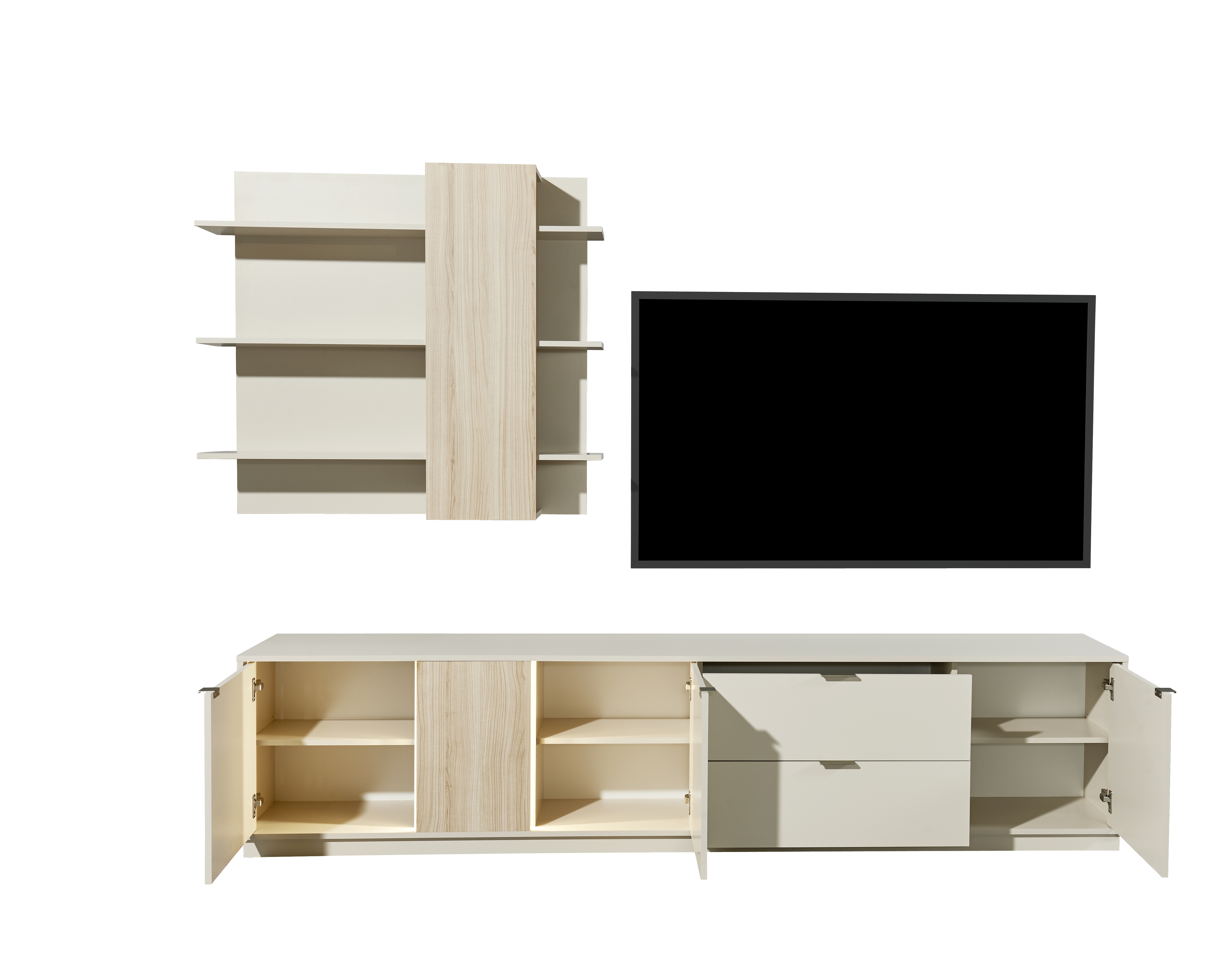 | Equipement murs TV: | Casiers ouverts, Tiroirs | ||