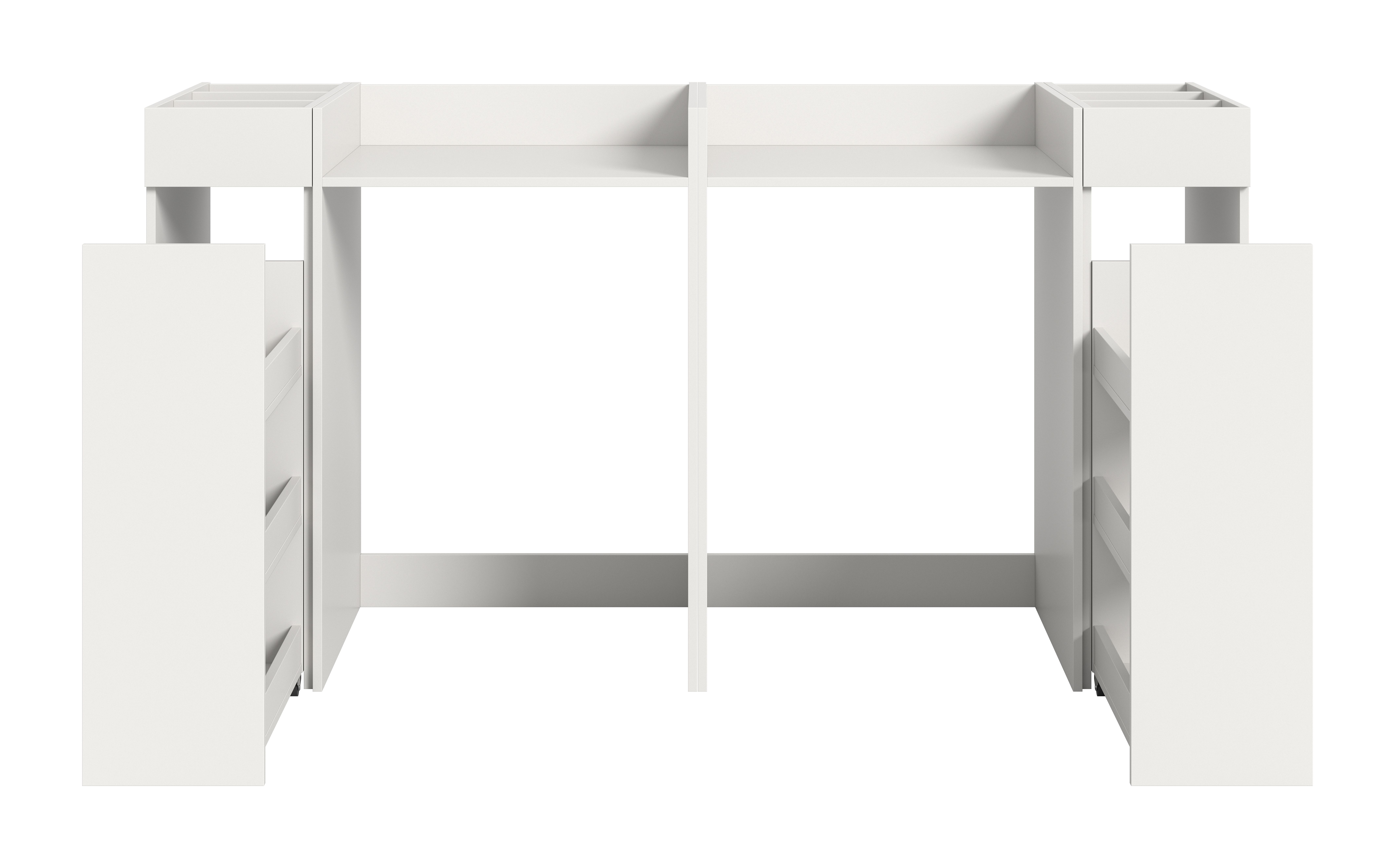 - 2 rangements coulissants avec chacun 3 casiers et des surfaces ouvertes