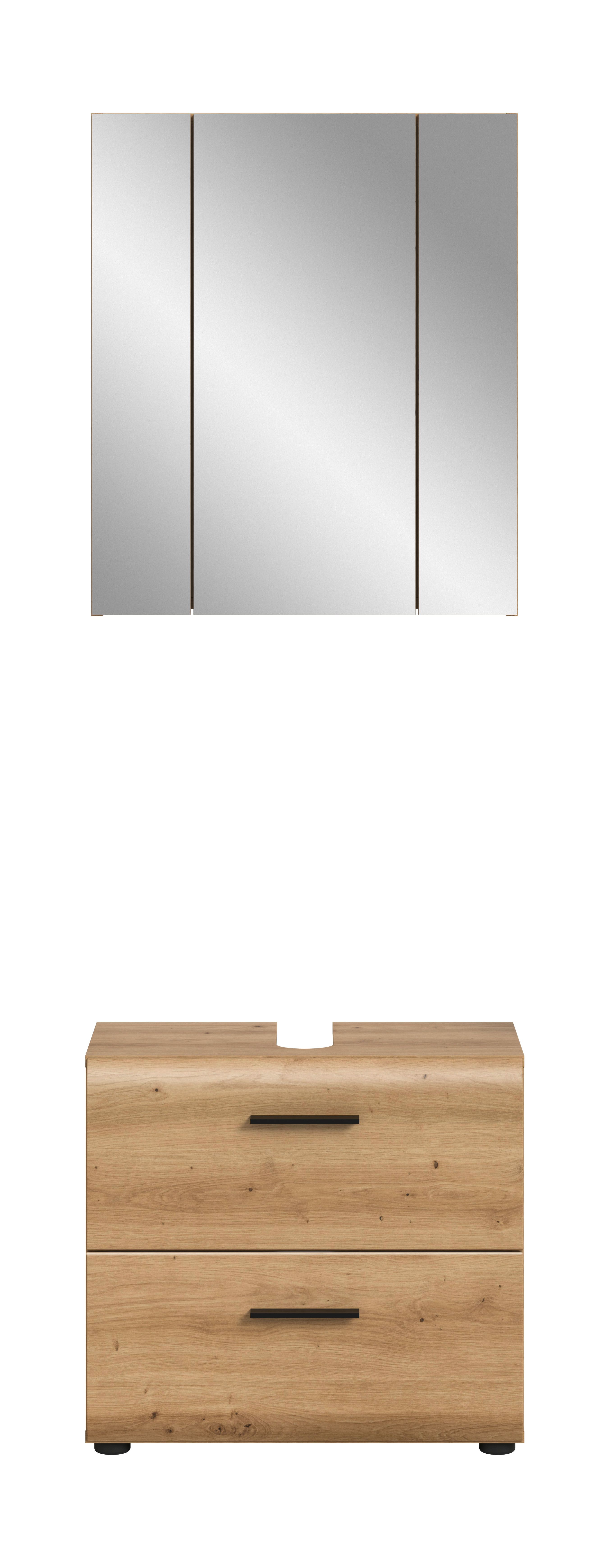 - Fonctionnalité : ensemble constitué d’un meuble sous lavabo et d’une armoire de toilette pour une solution de rangement complète sur un faible encombrement dans la salle de bains.