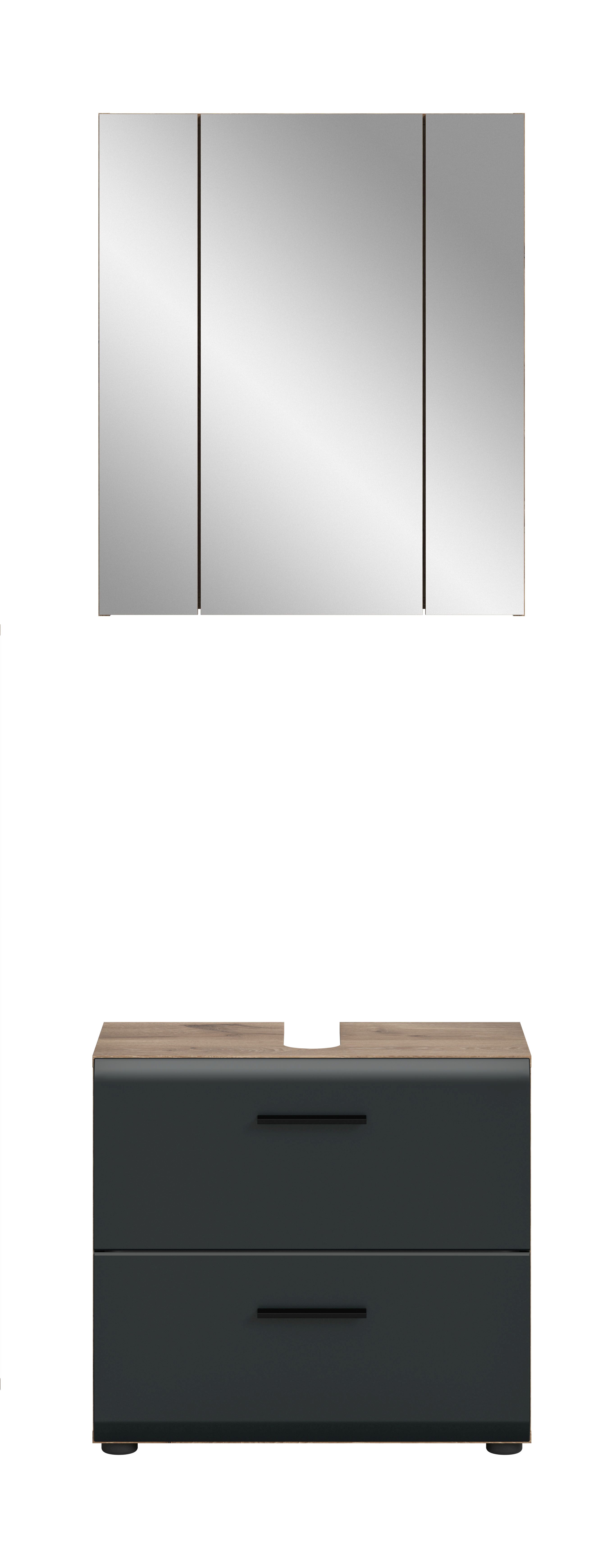 - Fonctionnalité : ensemble constitué d’un meuble sous lavabo et d’une armoire de toilette pour une solution de rangement complète sur un faible encombrement dans la salle de bains.