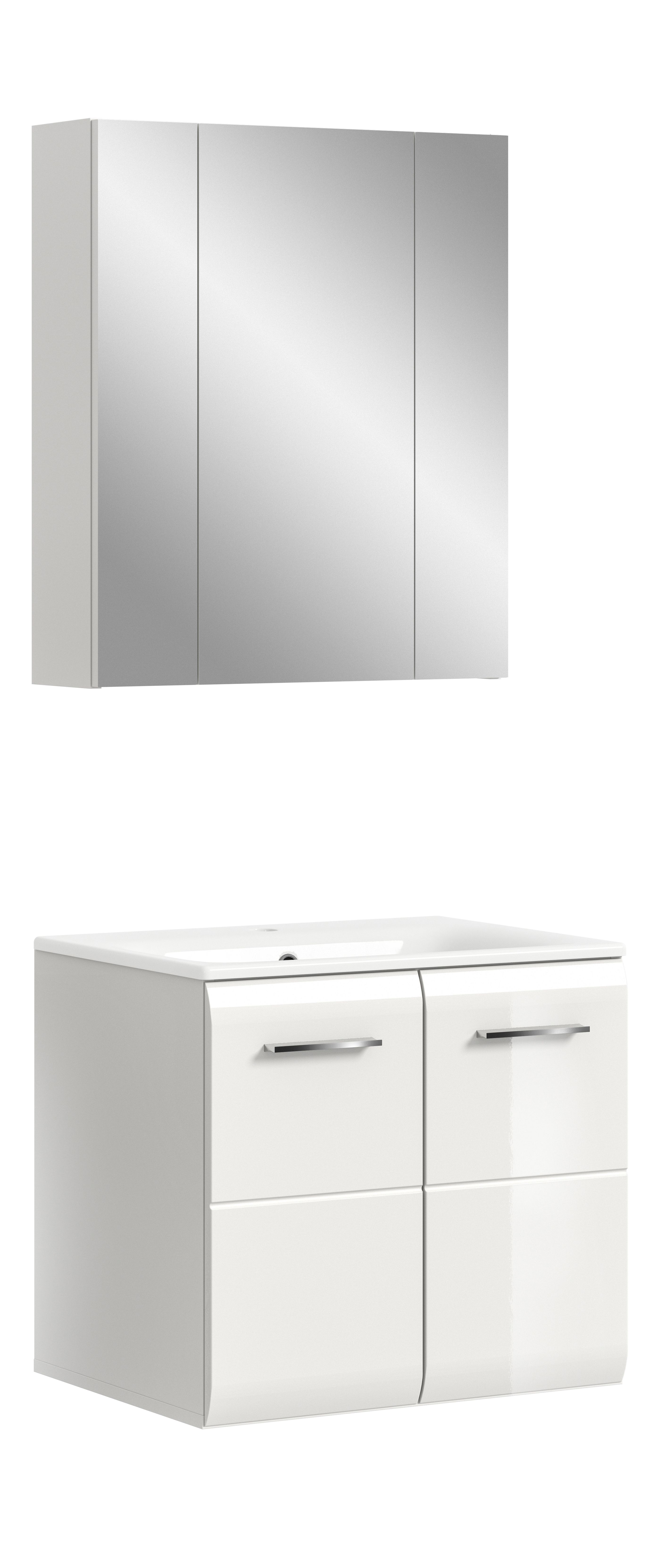 - Salle de bains combinée 2 éléments comprenant : 1 meuble sous vasque avec vasque, 1 armoire de toilette
