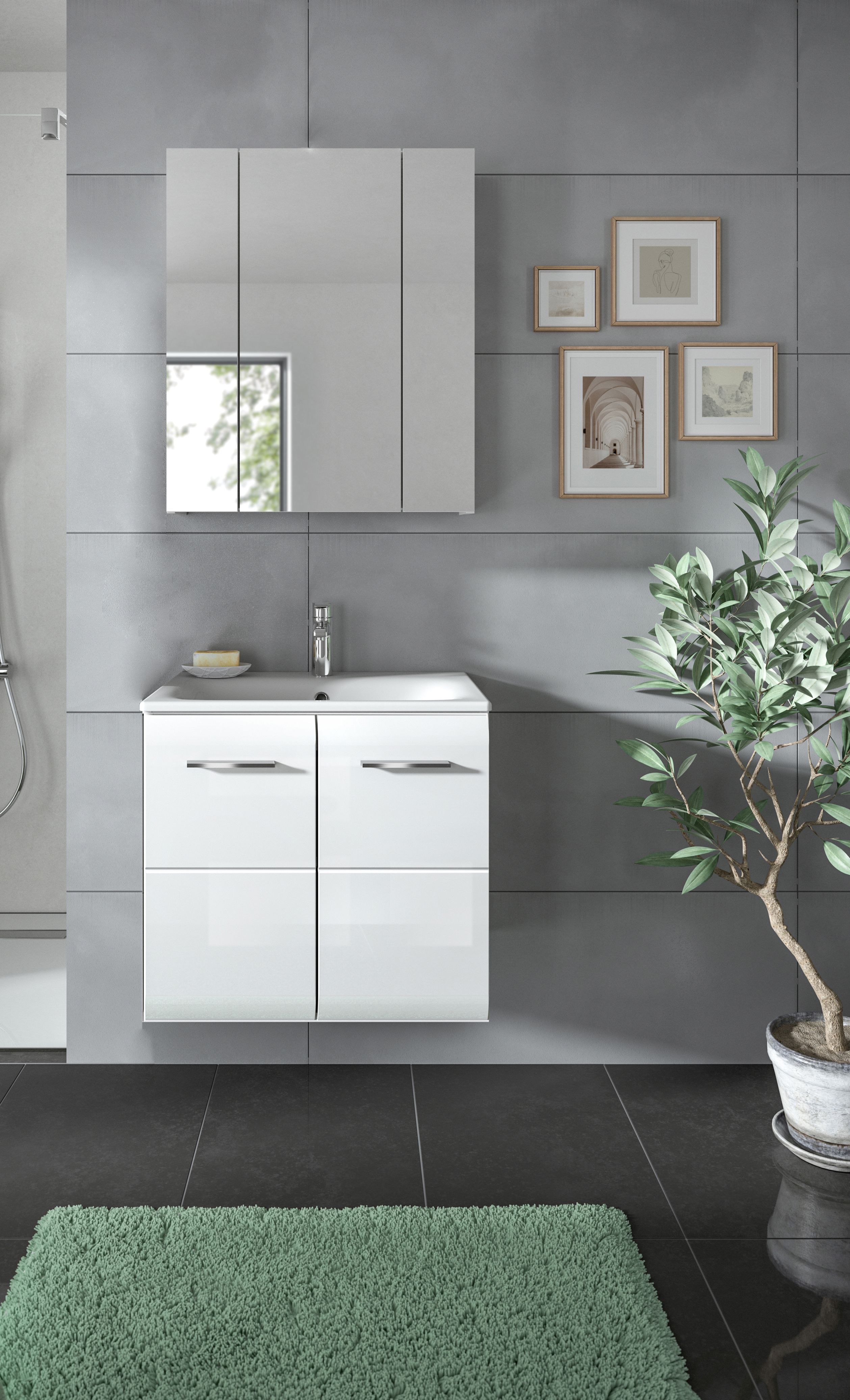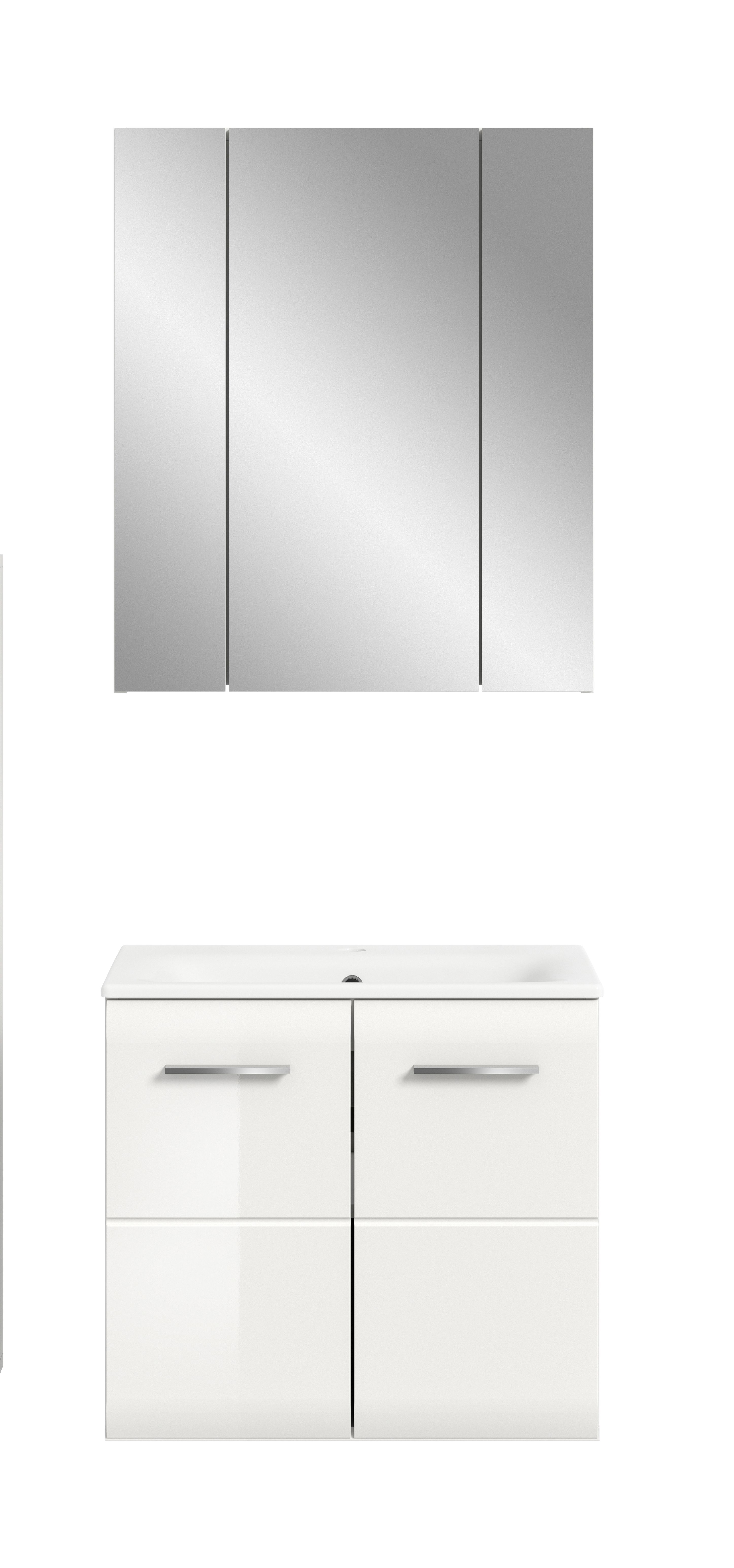 Optimisez l'espace disponible dans votre pièce grâce à notre salle de bains combinée 2 éléments ! Elle se compose d’un meuble sous vasque avec vasque intégrée et d’une armoire de toilette pratique. Cette solution compacte est idéale pour les petites pièces et offre une manière élégante de garder vos accessoires de bain bien ordonnés. La façade en MDF de qualité avec finition rainurée confère à l’ensemble un look tendance.