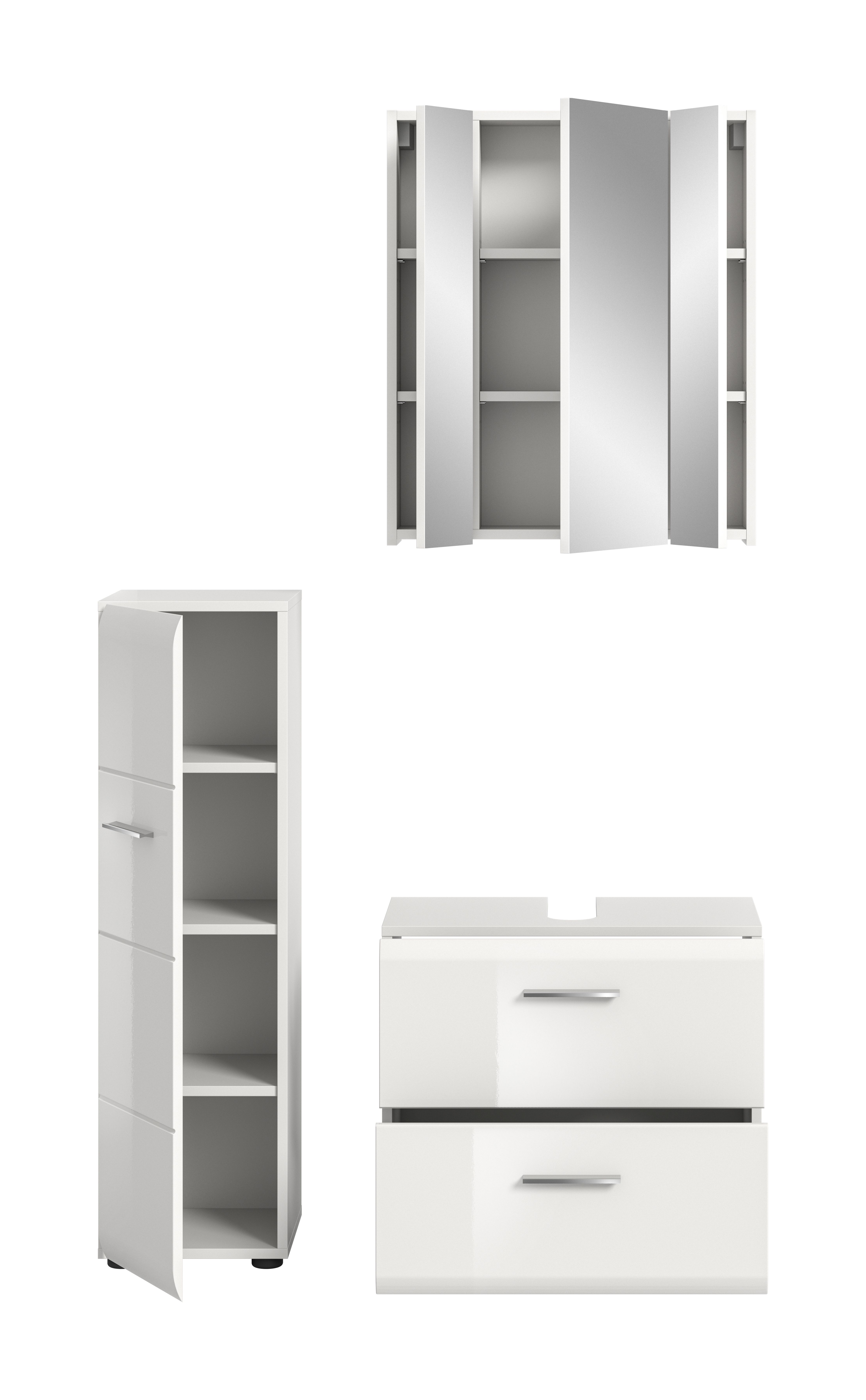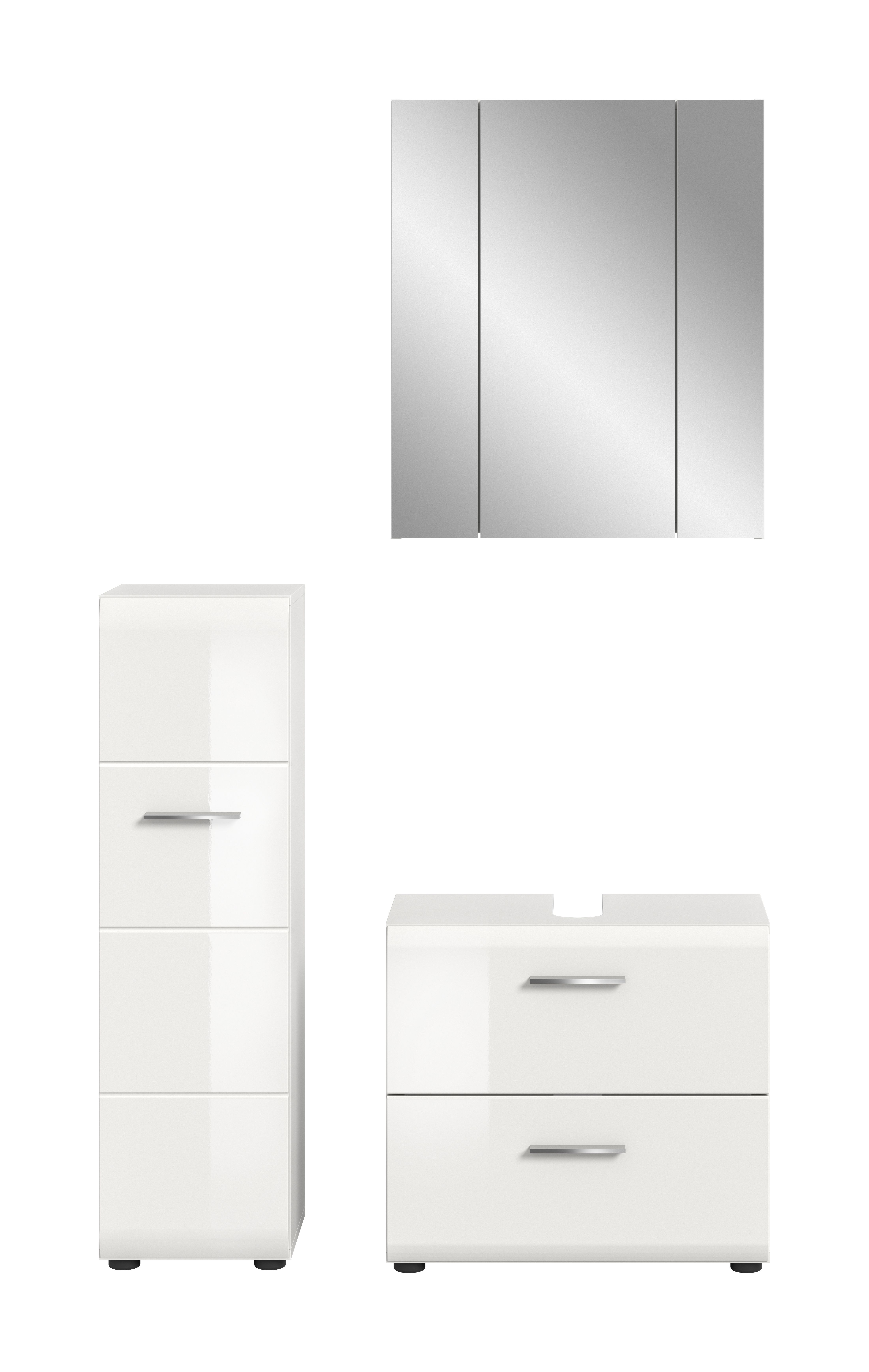 • Fonctionnalité : ensemble composé d’un meuble sous lavabo, d’une armoire de toilette et d'un meuble de rangement : un set complet et peu encombrant pour le rangement et l’organisation dans la salle de bains.
