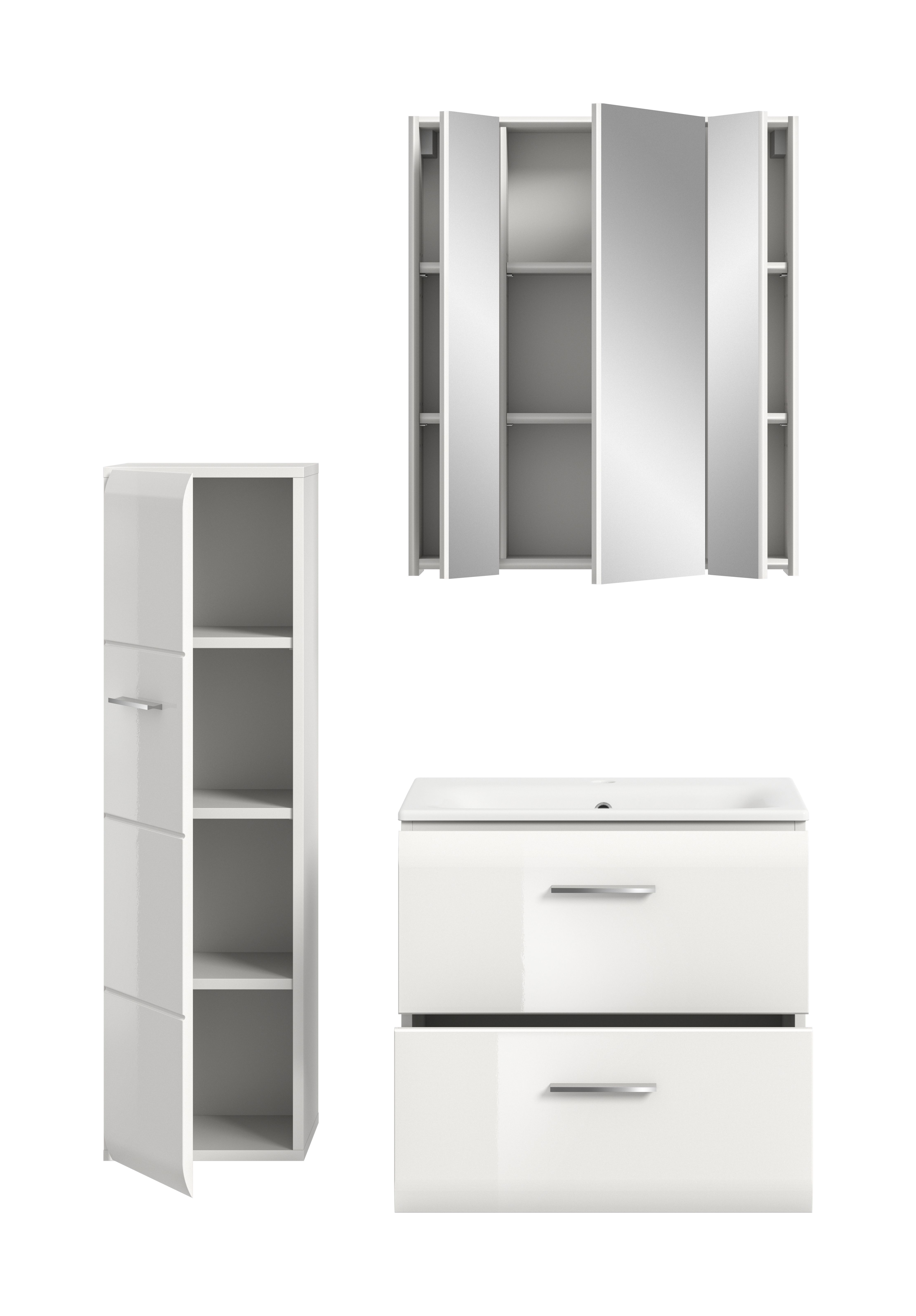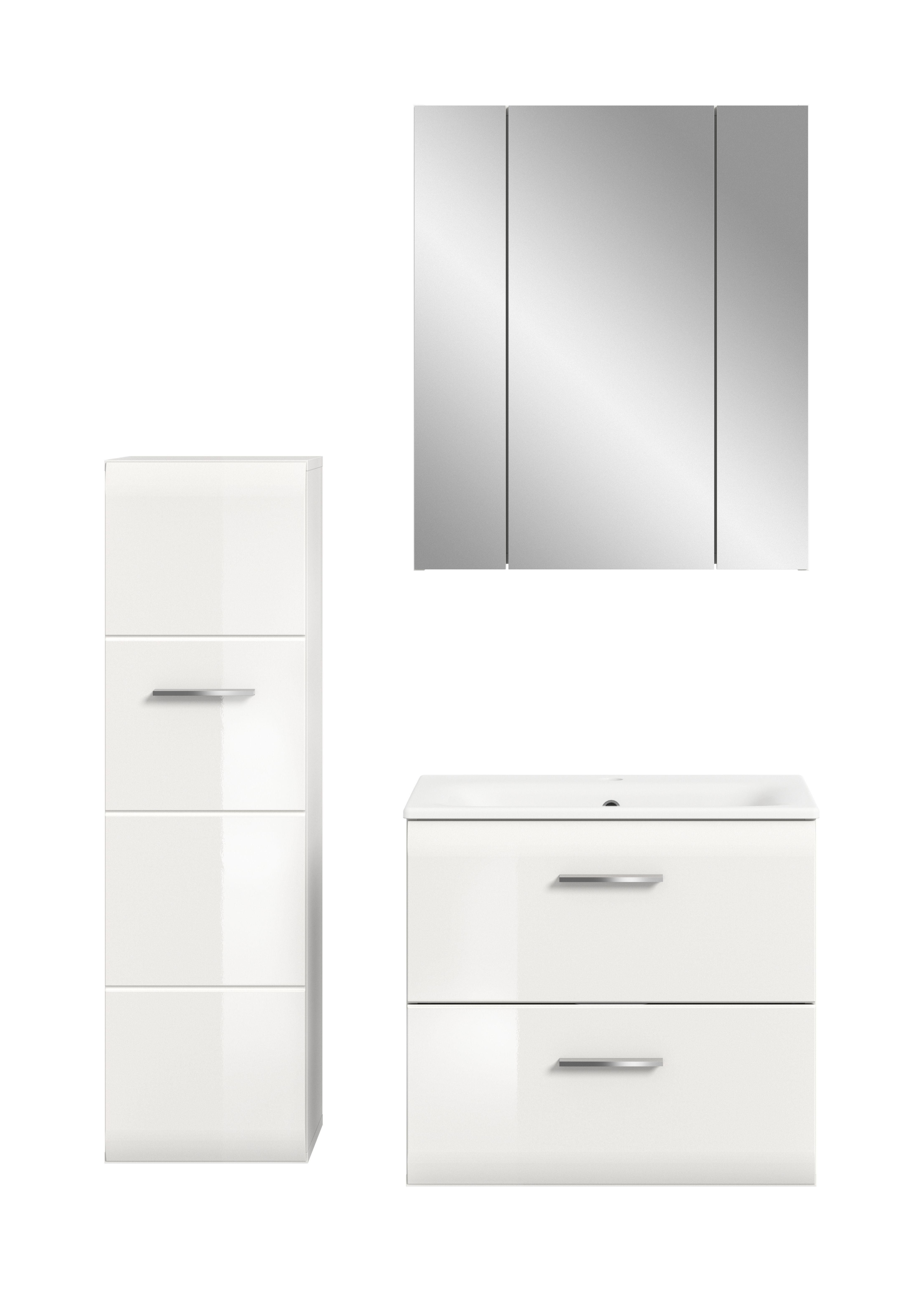- Salle de bains combinée 3 éléments comprenant : 1 meuble de salle de bains, 1 meuble sous vasque avec vasque, 1 armoire de toilette