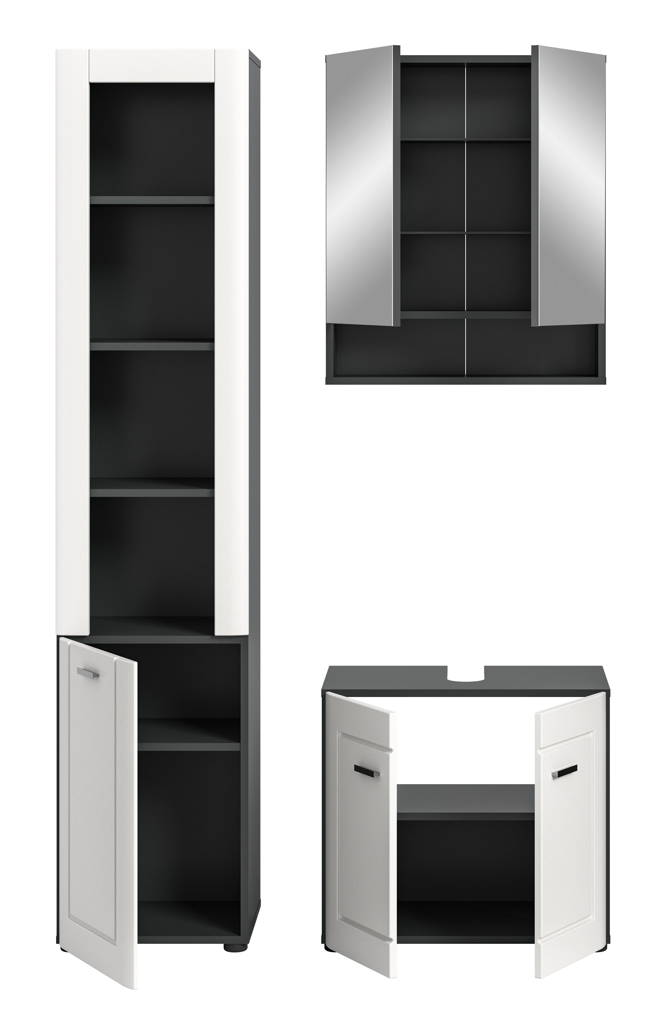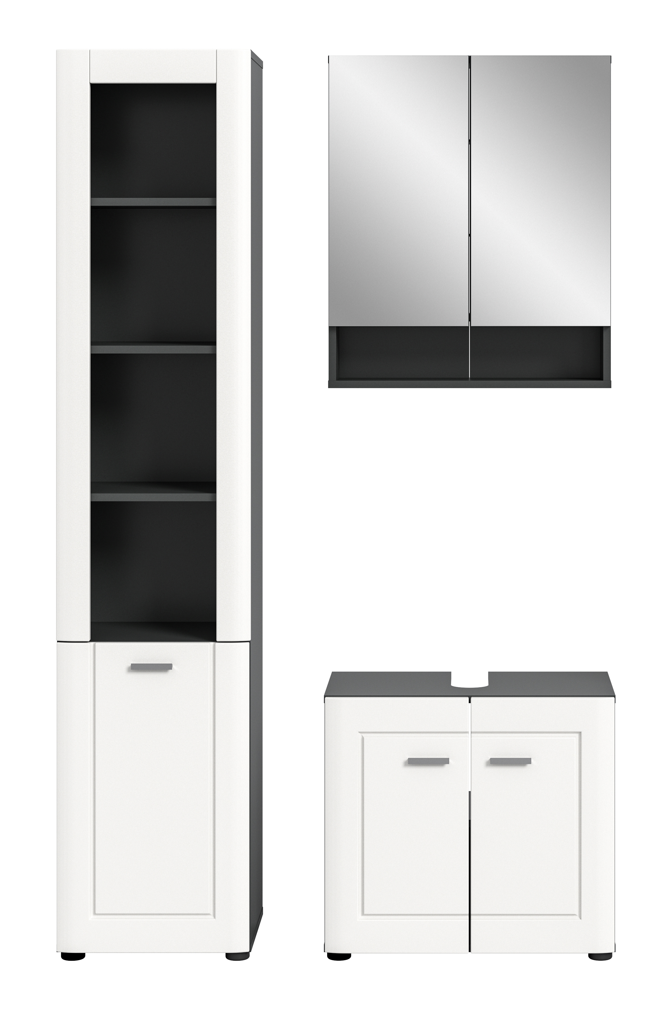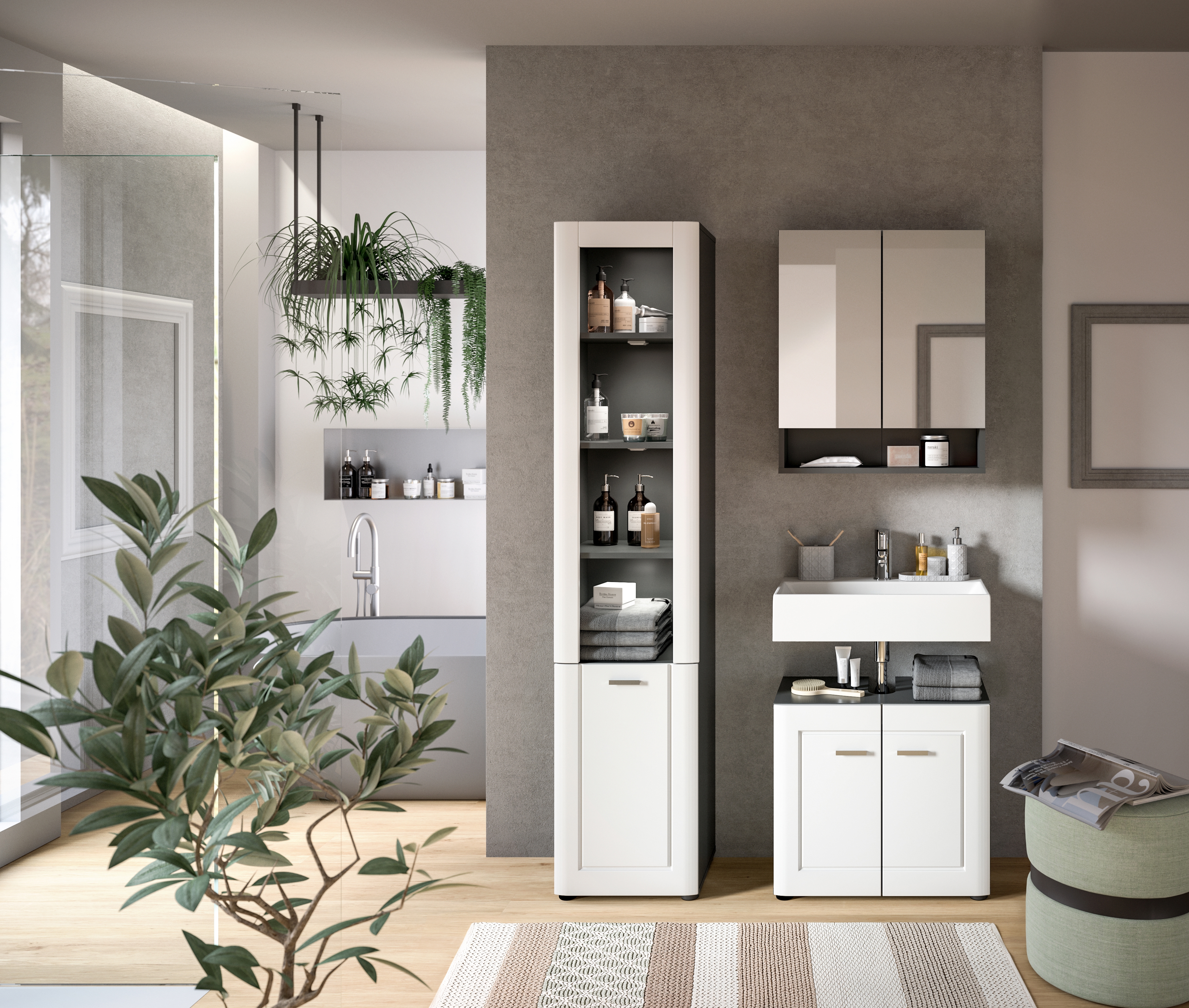 - Fonctionnalité : salle de bain complète avec différents éléments (meuble sous lavabo, colonne de salle de bains et armoire de toilette) pour une utilisation optimale de l’espace disponible et un stockage efficace des accessoires de bains et produits de nettoyage.
