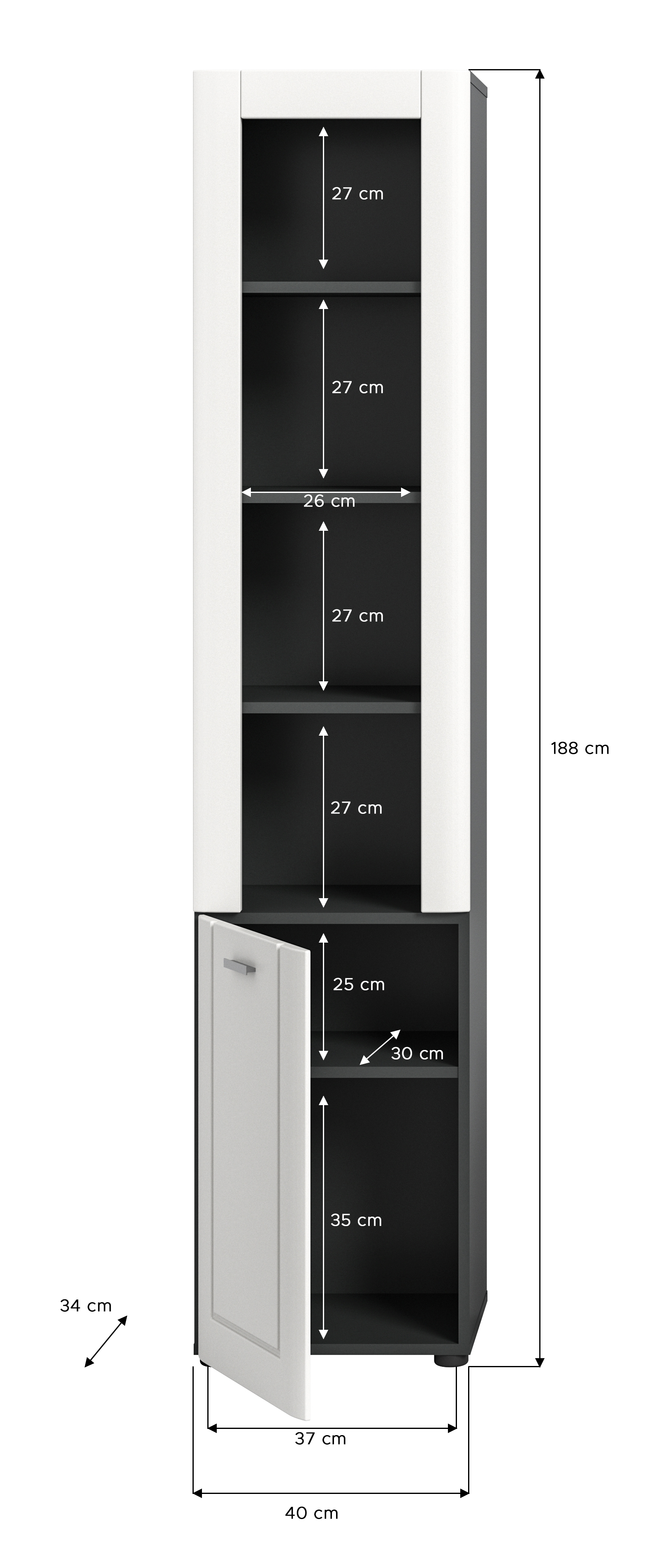 1 meuble colonne avec 1 porte, 1 tablette amovible et 4 casiers ouverts