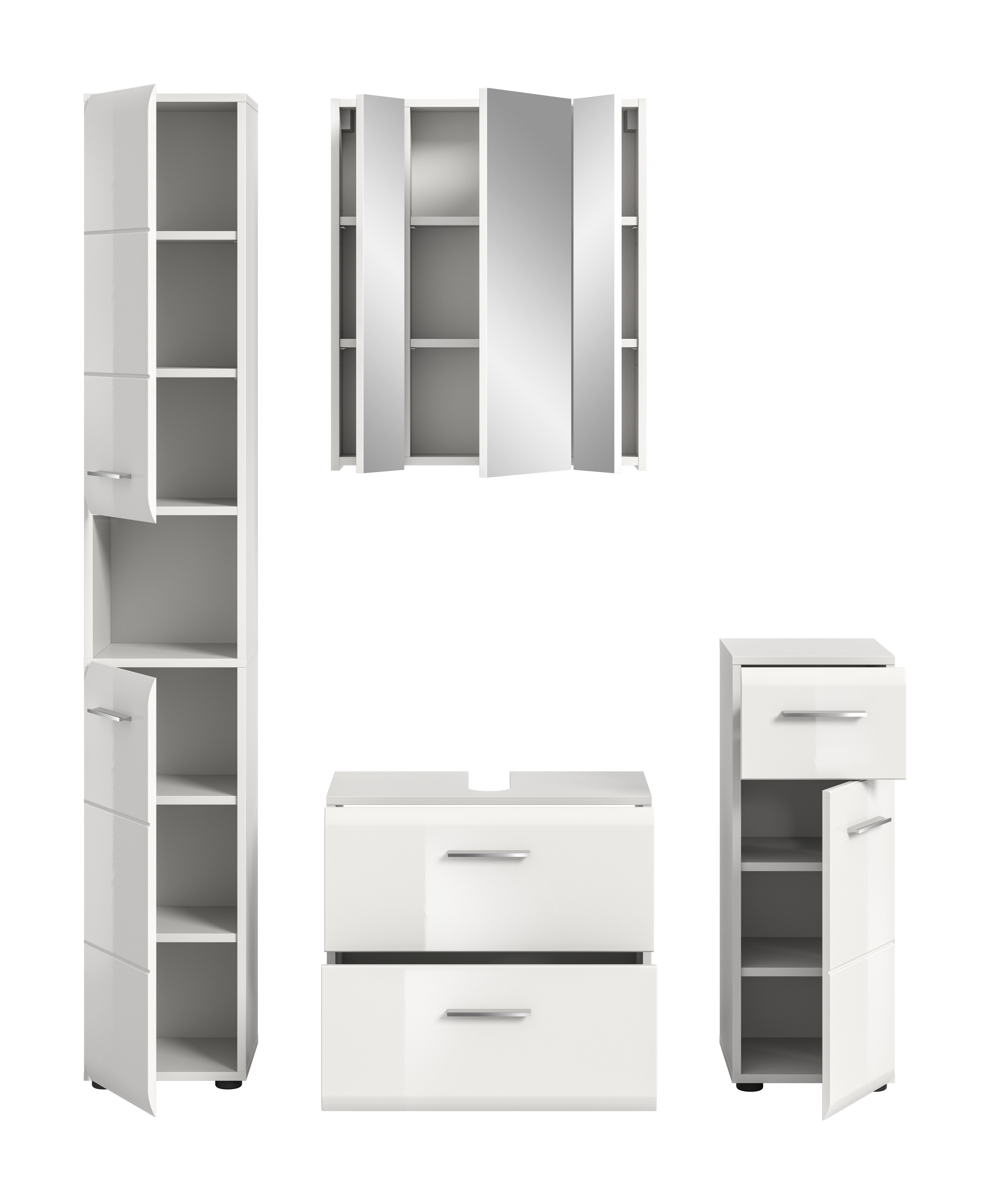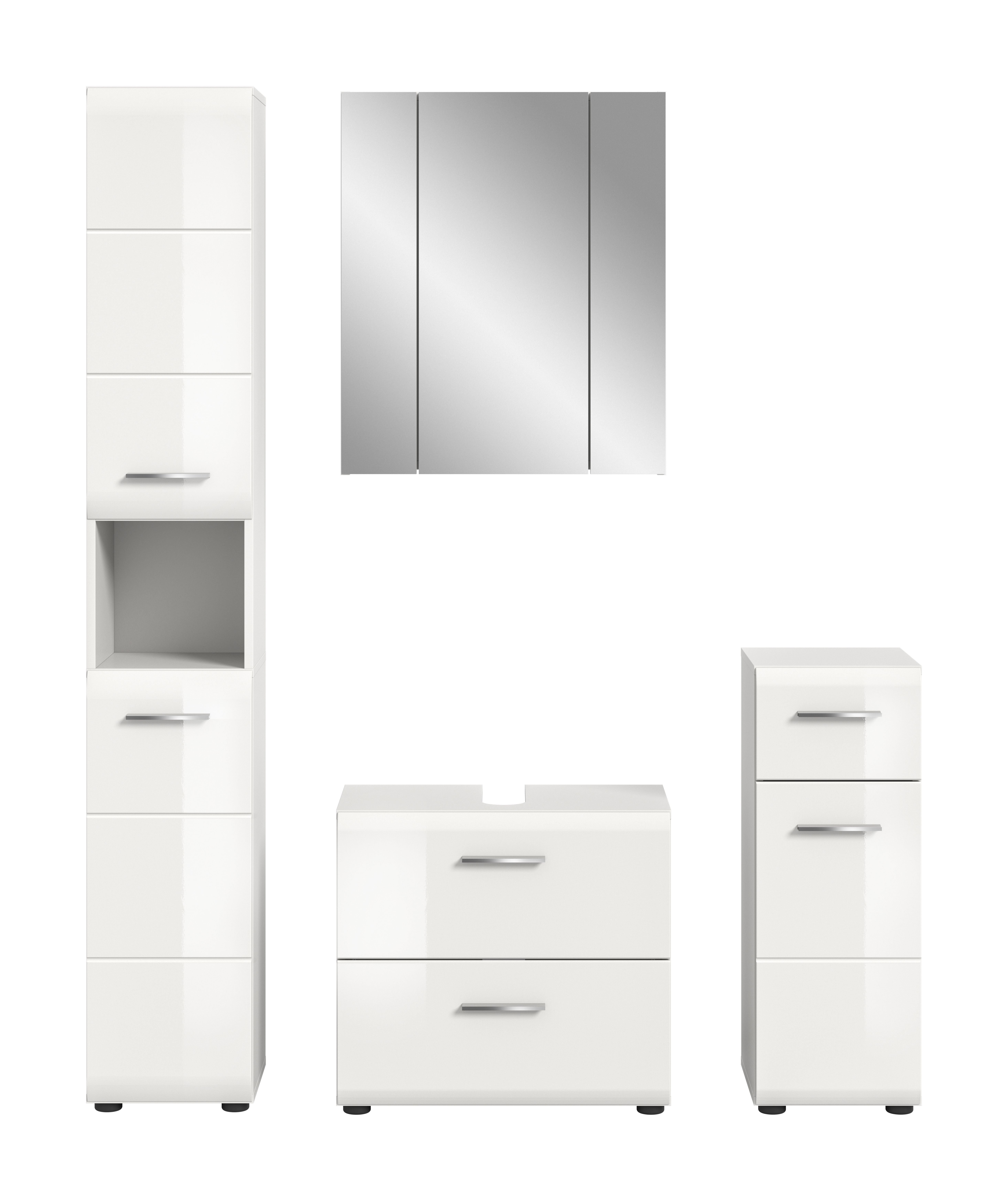 • Fonctionnalité : ensemble composé d’un meuble sous lavabo, d’une armoire de toilette, d’une colonne de salle de bains et d’un meuble de rangement : un set complet et peu encombrant pour le rangement et l’organisation dans la salle de bains.