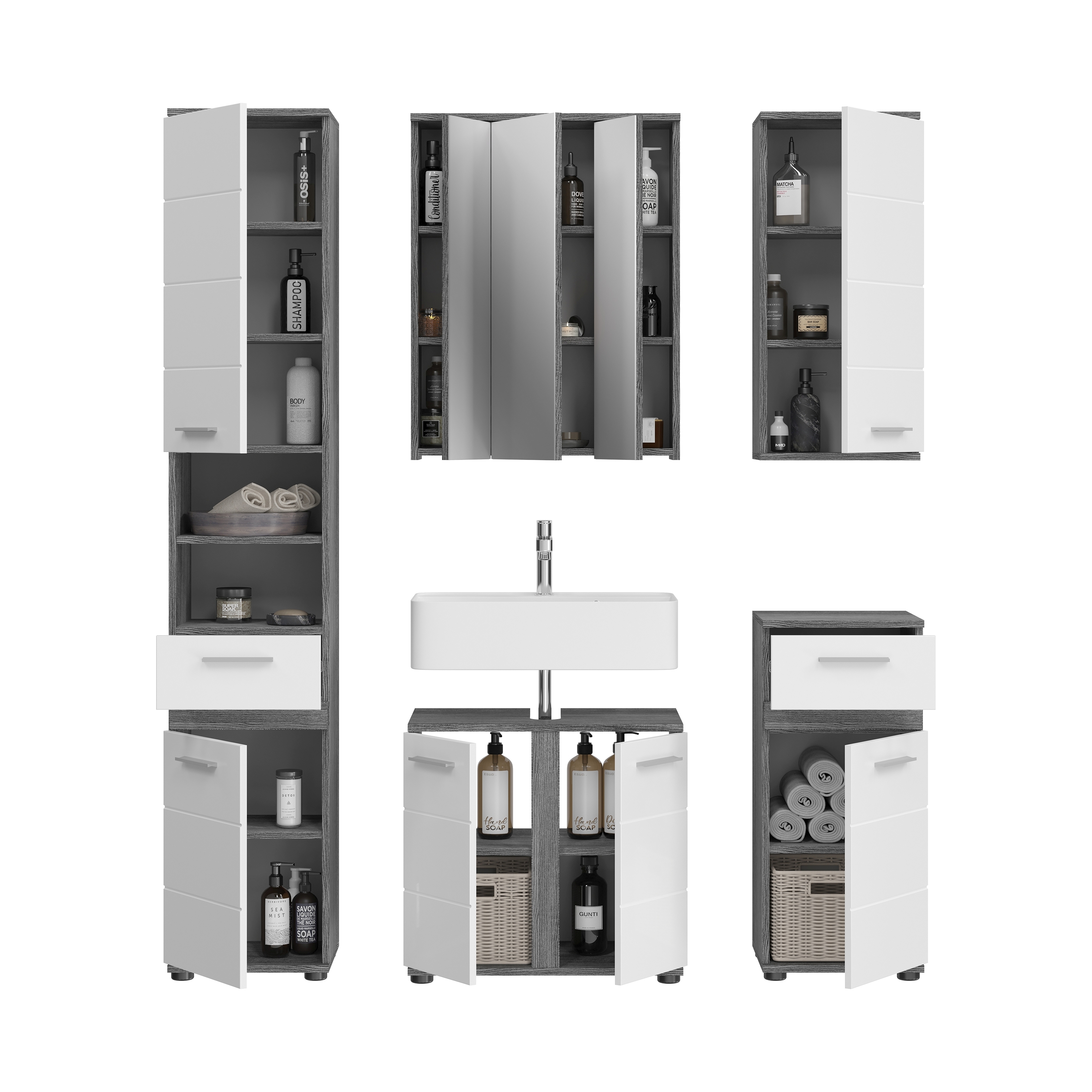 - Design/style : ensemble salle de bains tendance dans un contraste stylé décor bois argent fumé et ton blanc ultra brillant pour une note élégante et moderne dans votre intérieur.