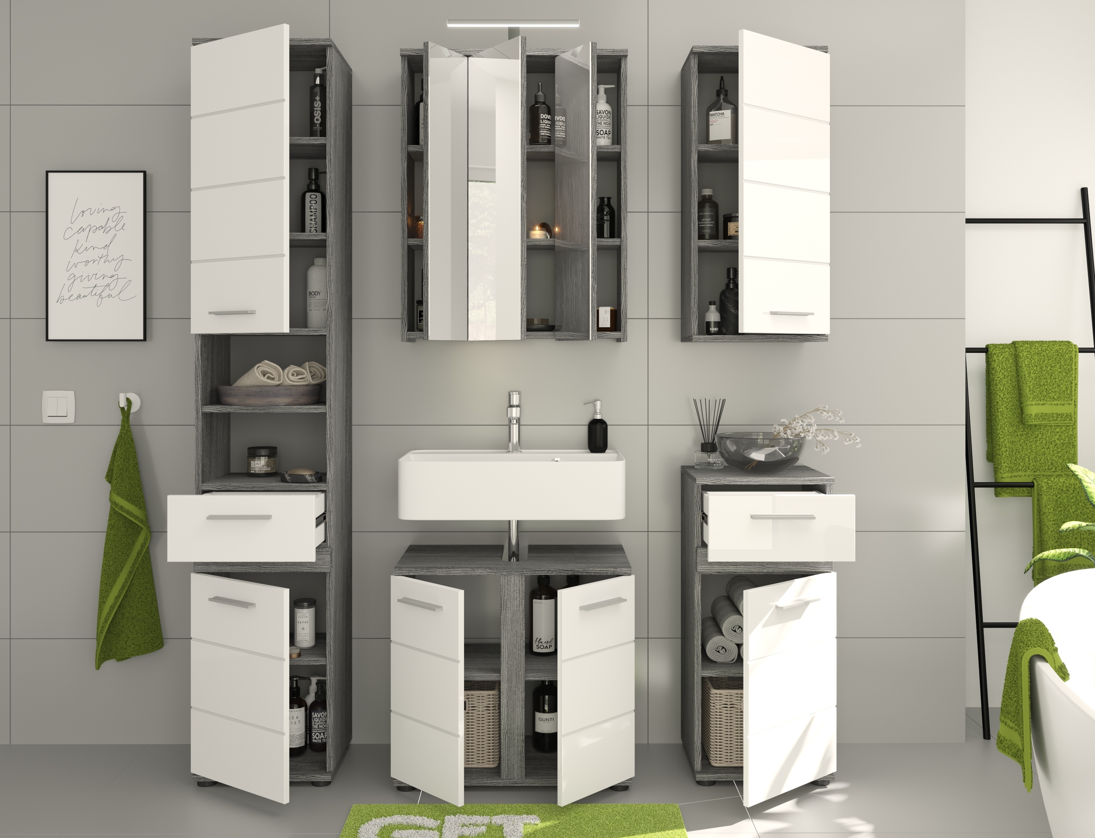 - Design/style : ensemble pour salle de bains tendance dans un contraste stylé décor bois argent fumé et ton blanc ultra brillant pour une note élégante et moderne dans votre intérieur.