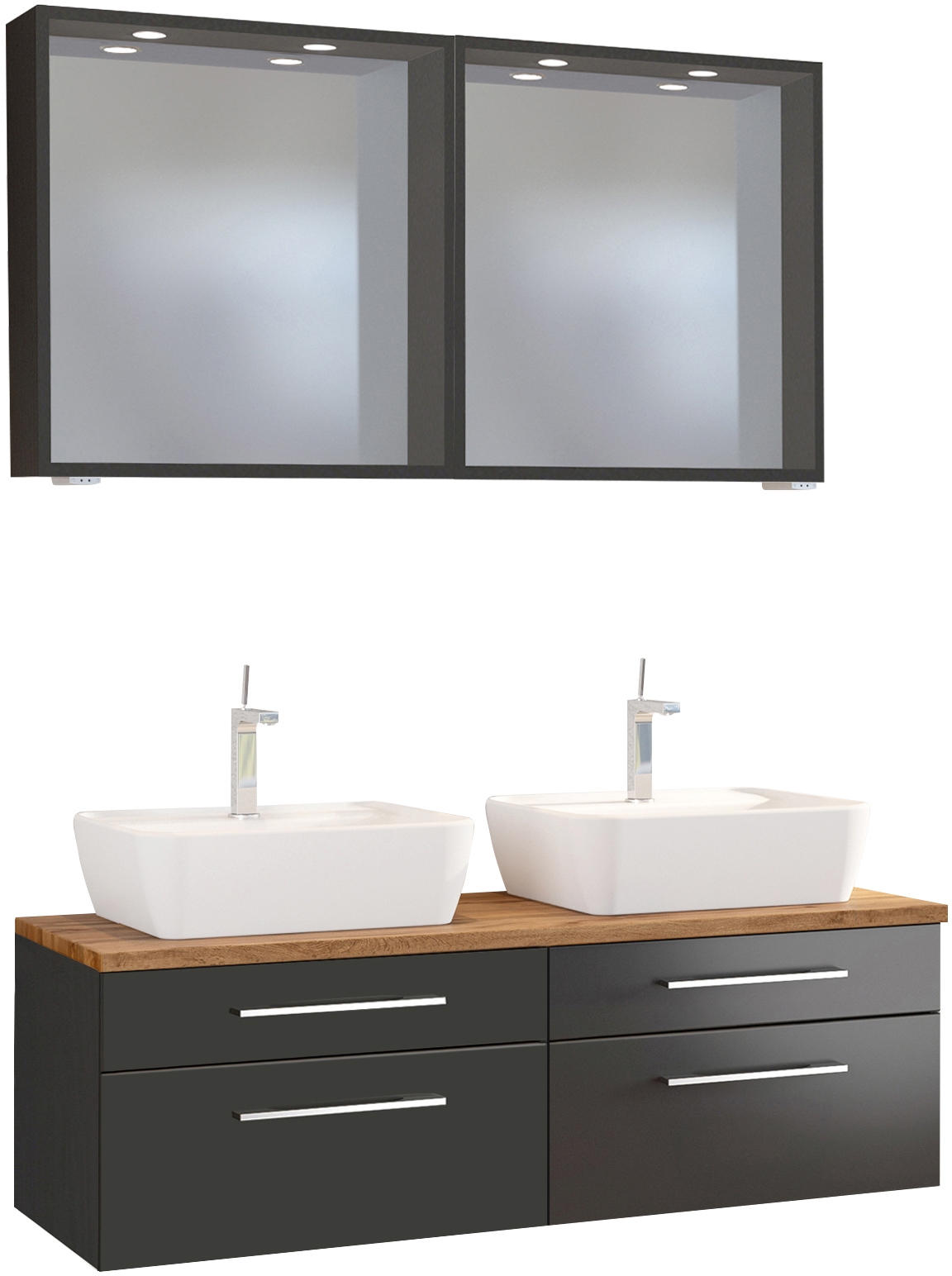 1 meuble sous vasque avec 2 tiroirs bas et 2 tiroirs hauts avec fermeture amortie, incl. découpe siphon