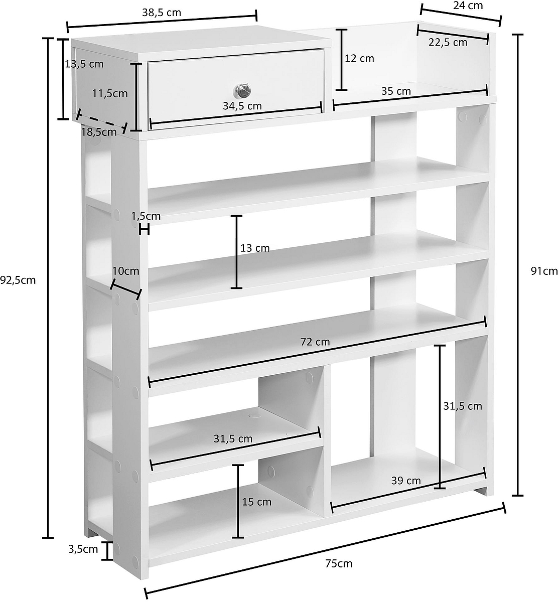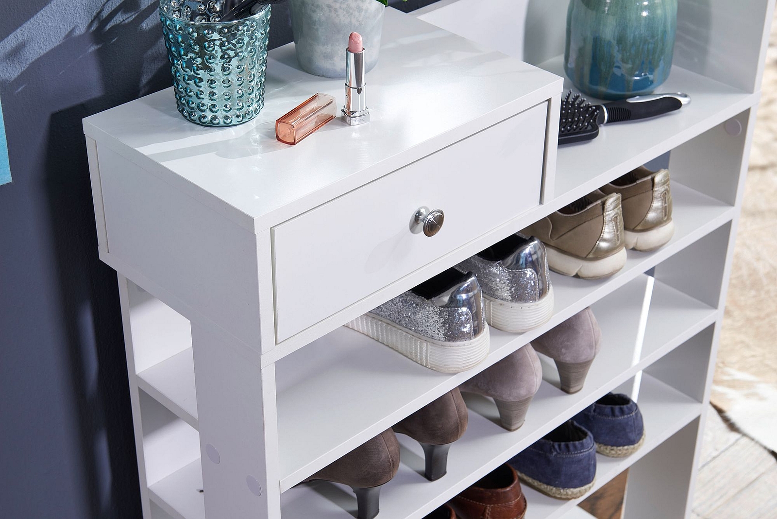 - POUR TOUT RANGER ✔ Selon le viel adage : « Une vie sans ordre est une vie en désordre » et c’est particulièrement important dans le couloir. Souvent, la zone de l’entrée est petite ou étroite et il est d’autant plus difficile d’y maintenir l’ordre. Grâce à notre meuble polyvalent, vous aurez non seulement vos chaussures à portée de main en un coup d’œil, mais vous pourrez également ranger vos clés, vos stylos et autres accessoires dans le tiroir en un rien de temps.