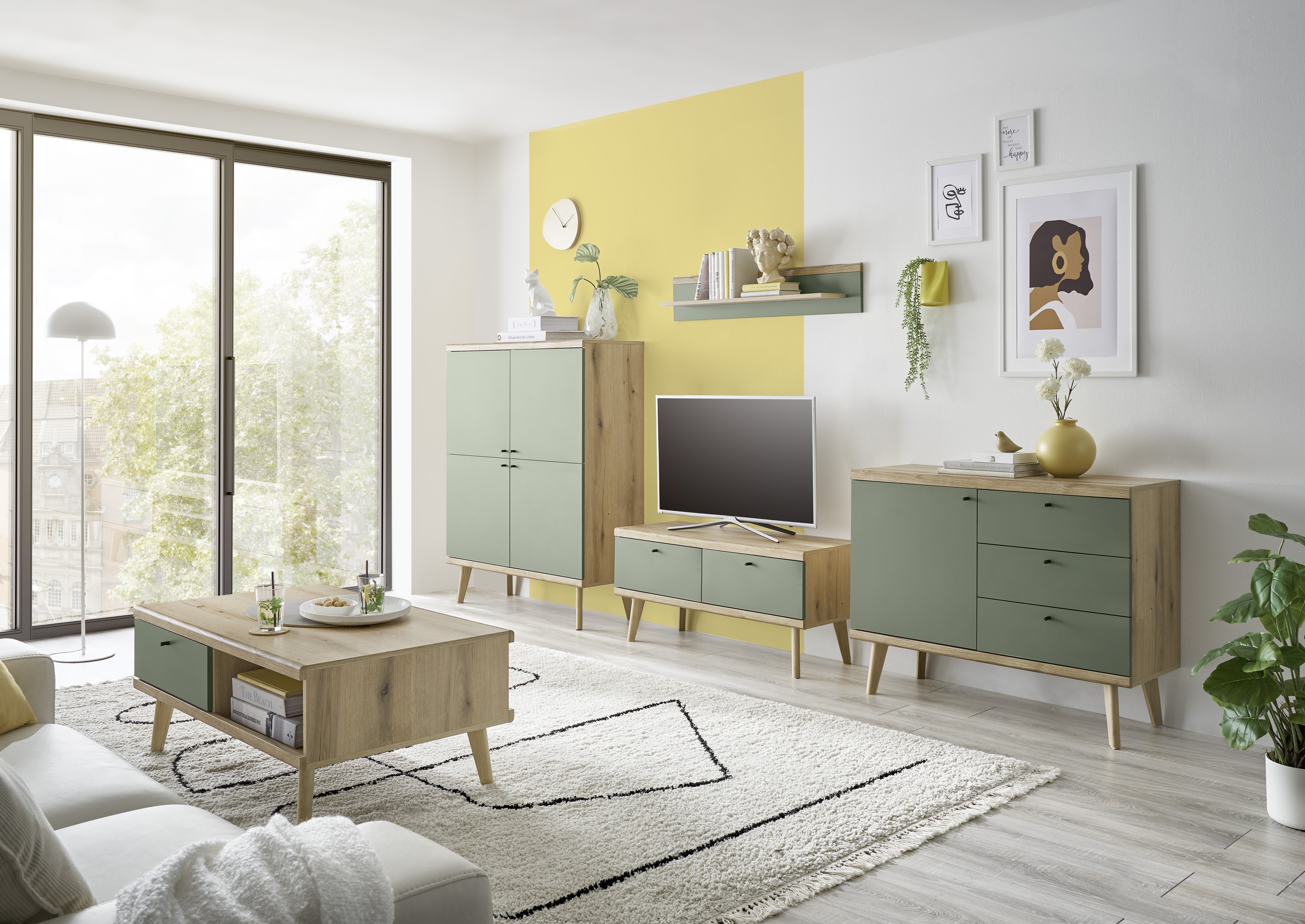 Ton sauge avec 1 tablette et détails décor chêne Evoke
