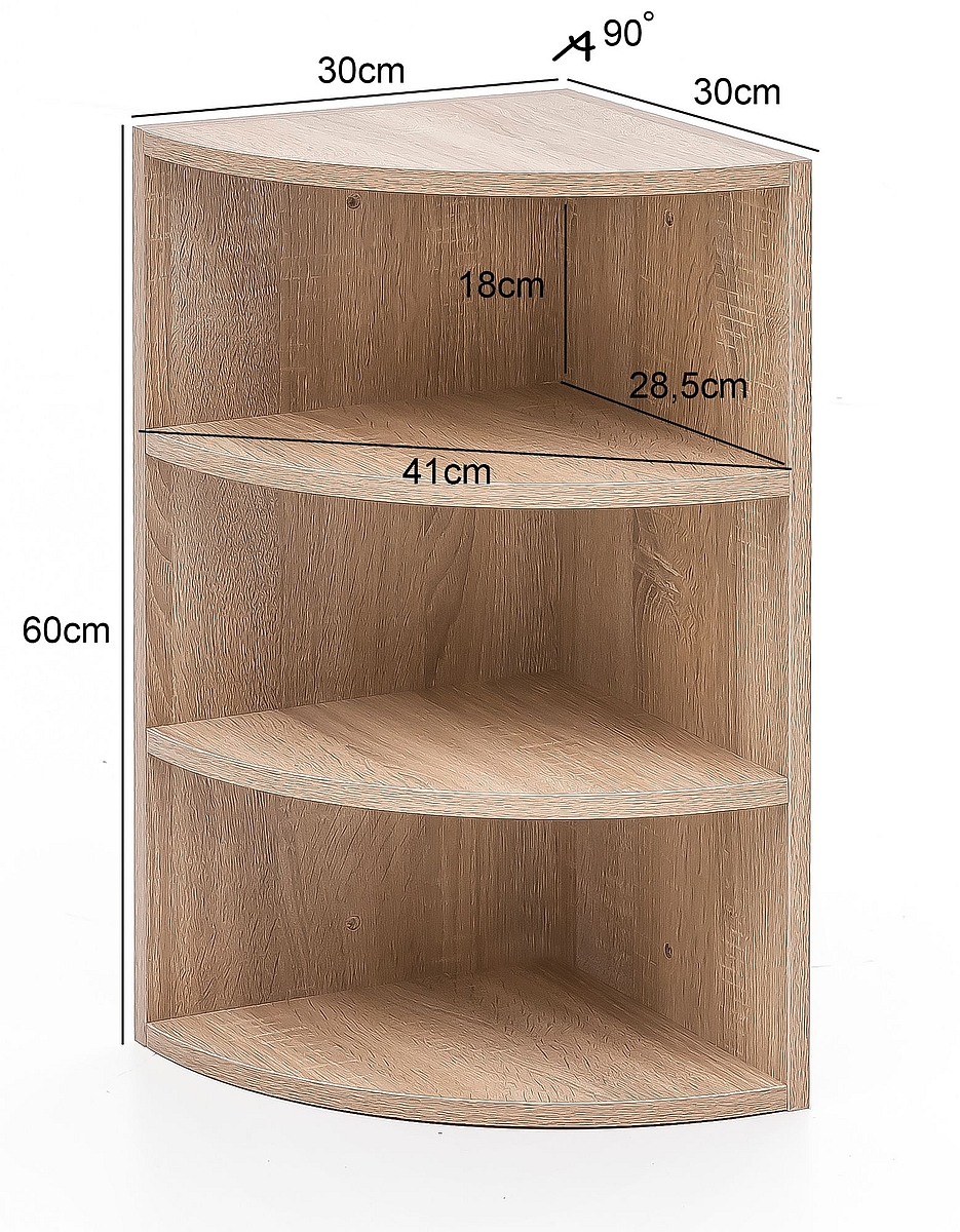 - Étagère d’angle complète : panneau de particules (mélaminé, laqué)