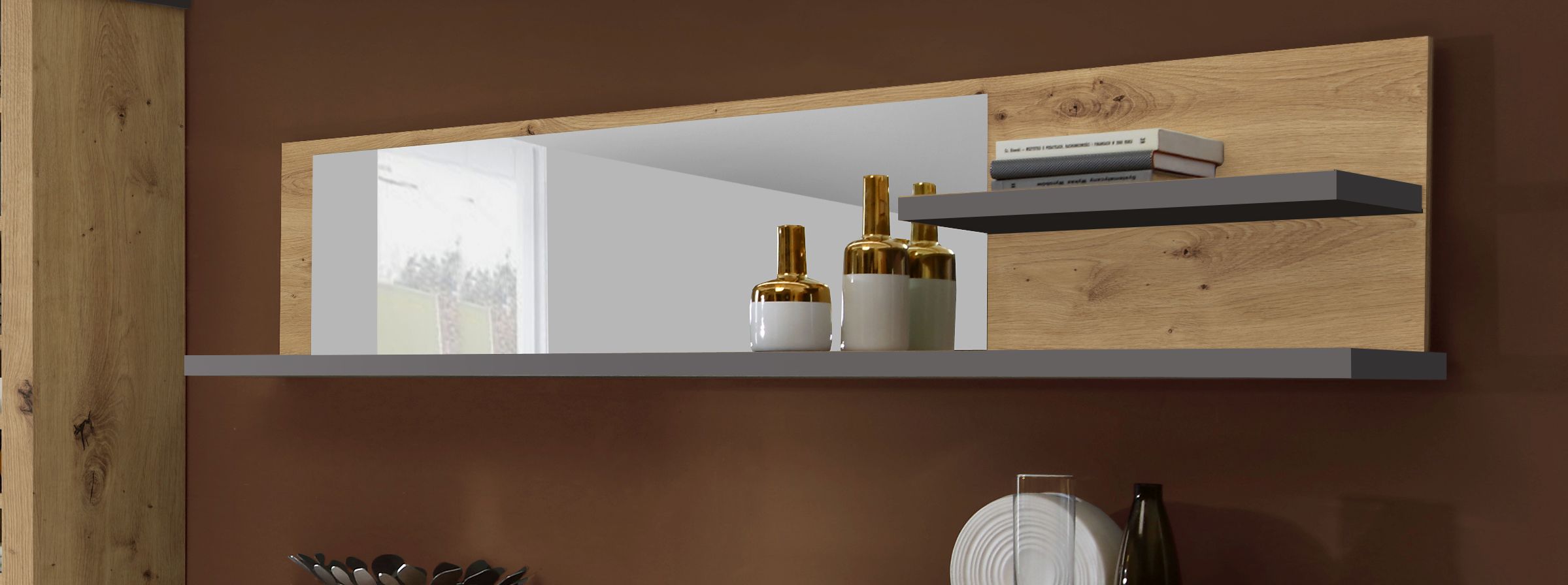 décor chêne Artisan et ton gris foncé / miroir