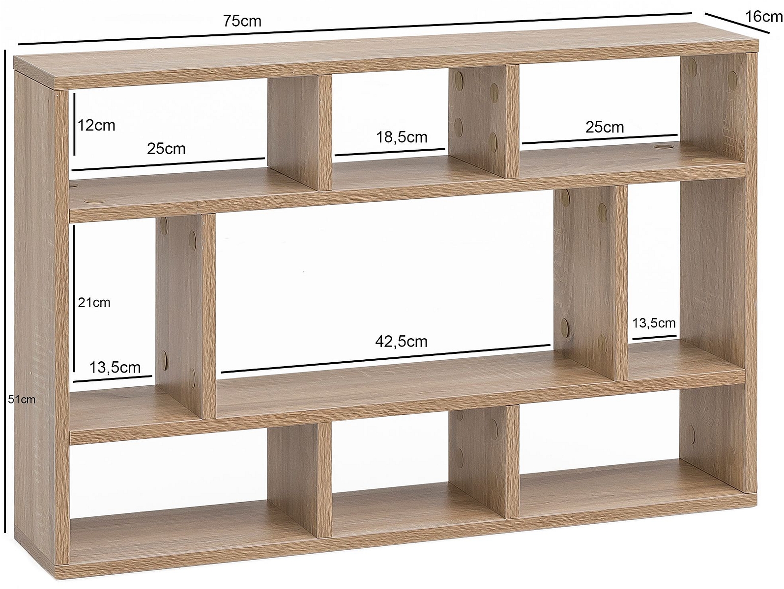 - ESPACE DE RANGEMENT AU MUR ✔ Vos livres préférés, les trophées remportés ou simplement de jolis accessoires de décoration : ces objets méritent une place spéciale ! Le mur est l’emplacement idéal, car vos objets favoris attireront immédiatement l’attention. C’est là que notre étagère murale à casiers ouverts entre en jeu. Avec ses neuf compartiments, il y a suffisamment de place pour vos objets fétiches !