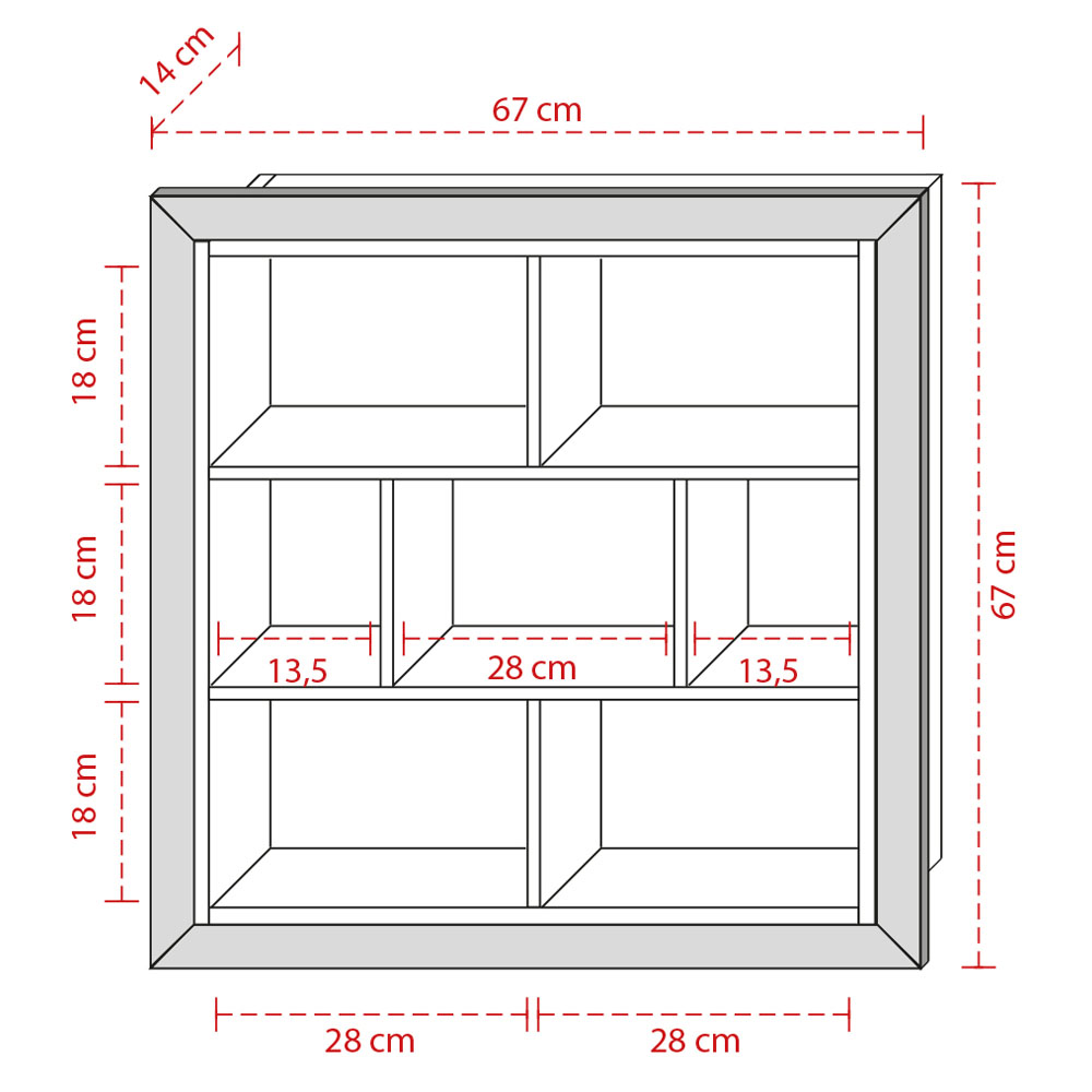| Etagère murale | 67 | 67 | 14 |