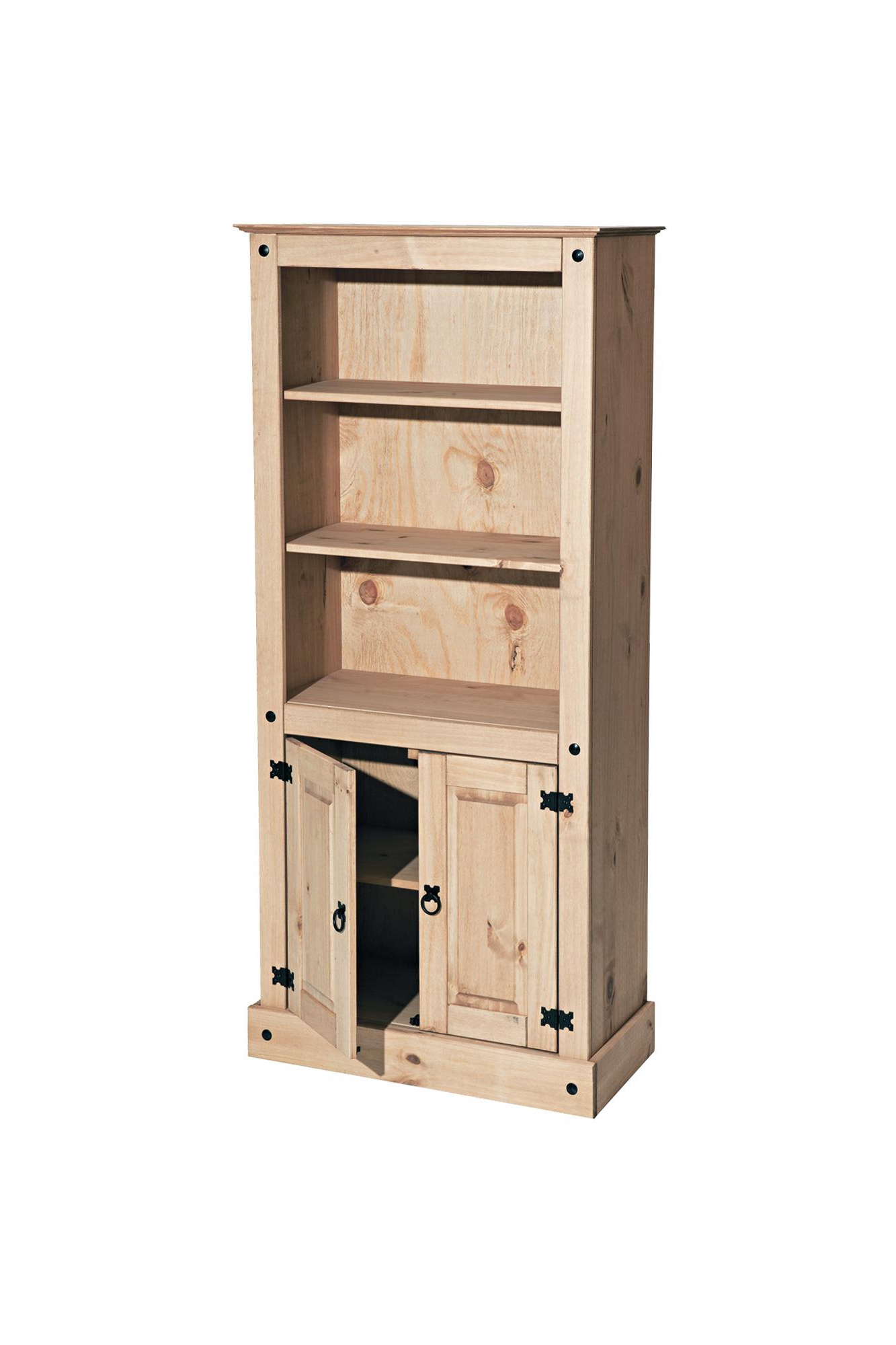 L’étagère est fabriquée en pin massif dans un style rustique. La surface est cirée dans un ton miel chaud. La bibliothèque dispose de 3 casiers ouverts et de 2 portes avec, derrière elles, une tablette amovible. L’étagère stable et spacieuse attirera tous les regards dans votre salon, votre salle à manger ou votre entrée. Les décorations en métal laqué ton noir confèrent à cette bibliothèque un charme fou.