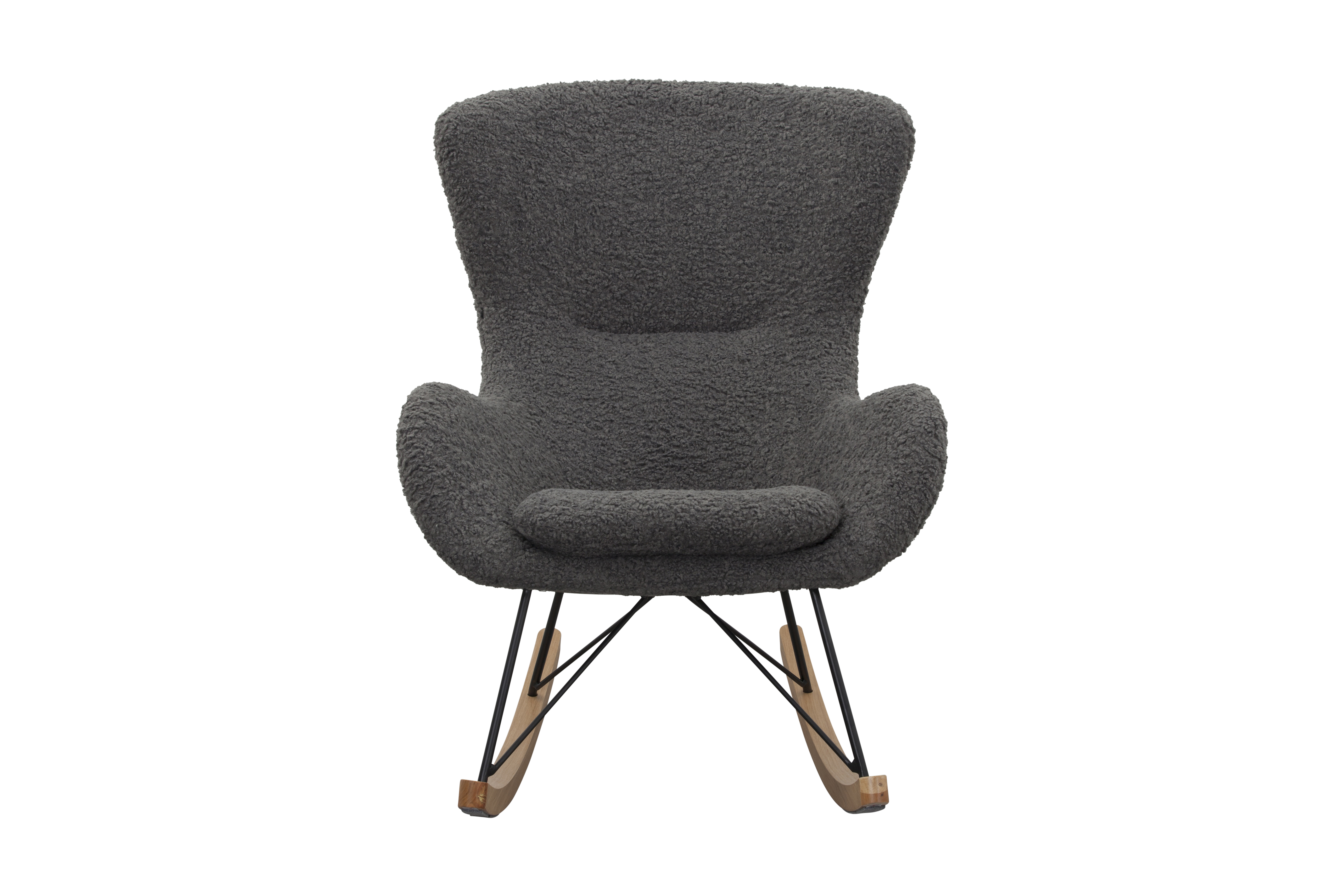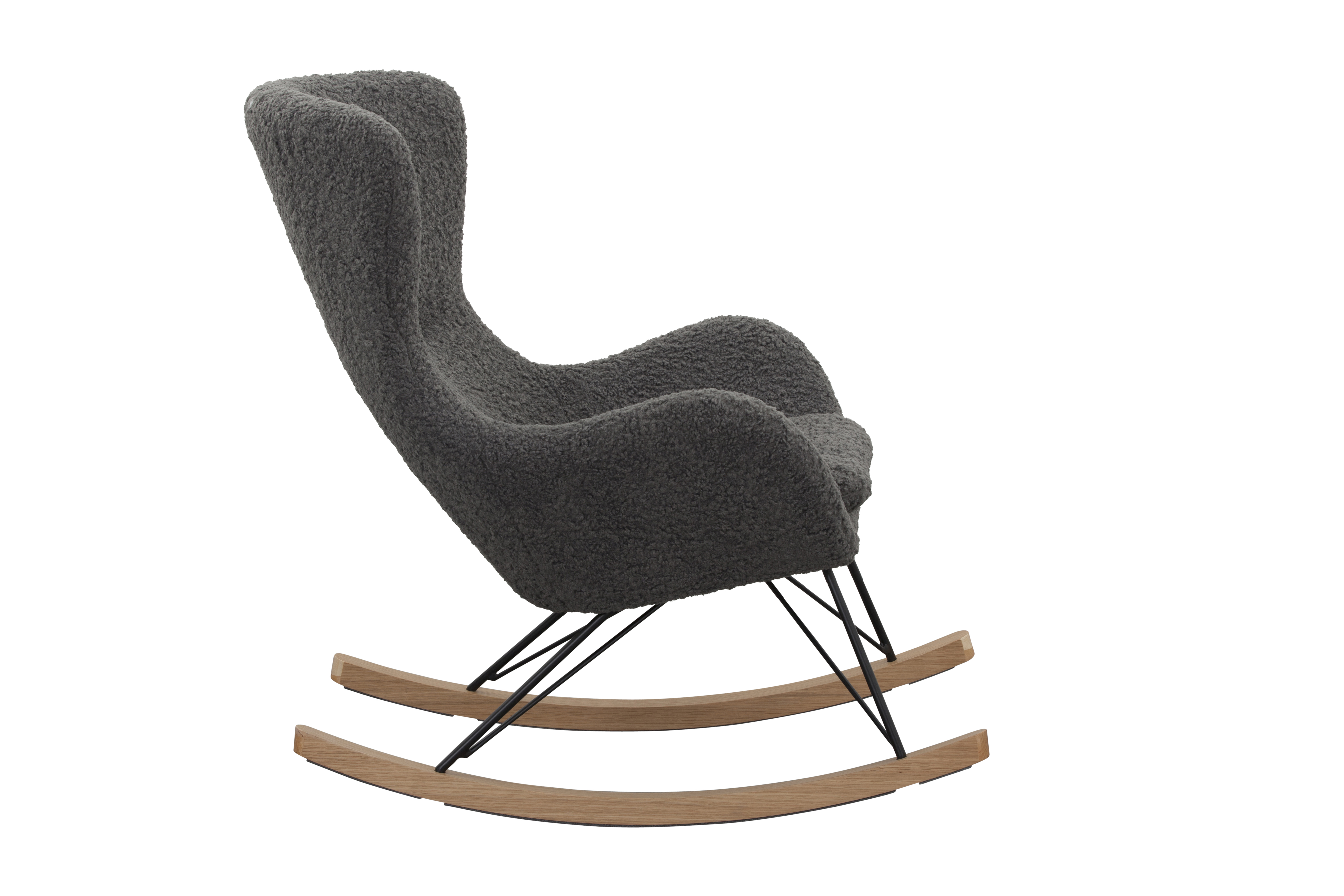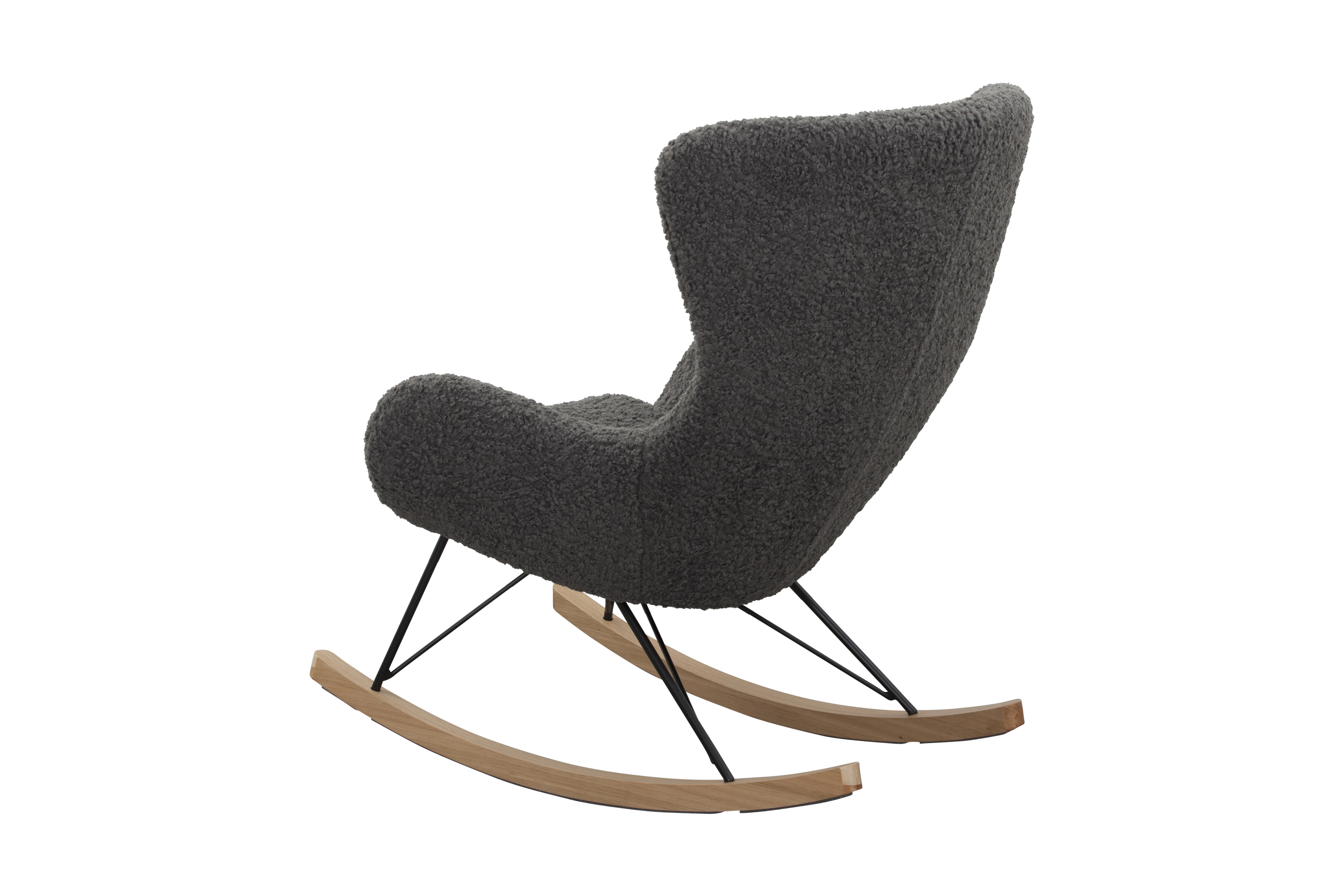 Le mobilier aspect peluche est une tendance de décoration confortable qui a conquis les intérieurs des amateurs de design ! La chaise à bascule de style scandinave séduit par la douceur de son revêtement en peluche. Alors que la structure est en métal thermolaqué ton noir, les deux pieds en arceaux sont en bois massif plaqué chêne. Cette structure garantit non seulement une répartition uniforme du poids et un beau mouvement du fauteuil, mais elle s’harmonise aussi parfaitement avec le revêtement en tissu. Grâce au rembourrage confortable, aux accoudoirs et au coussin d'assise ultra épais, faites l'expérience d'une détente et d'un confort haut de gamme. Le rocking-chair se distingue par son aspect original, sa qualité et sa robustesse. Faites de ce fauteuil à bascule votre nouveau lieu de prédilection et profitez de son confort pendant que vous lisez ou regardez la télévision.