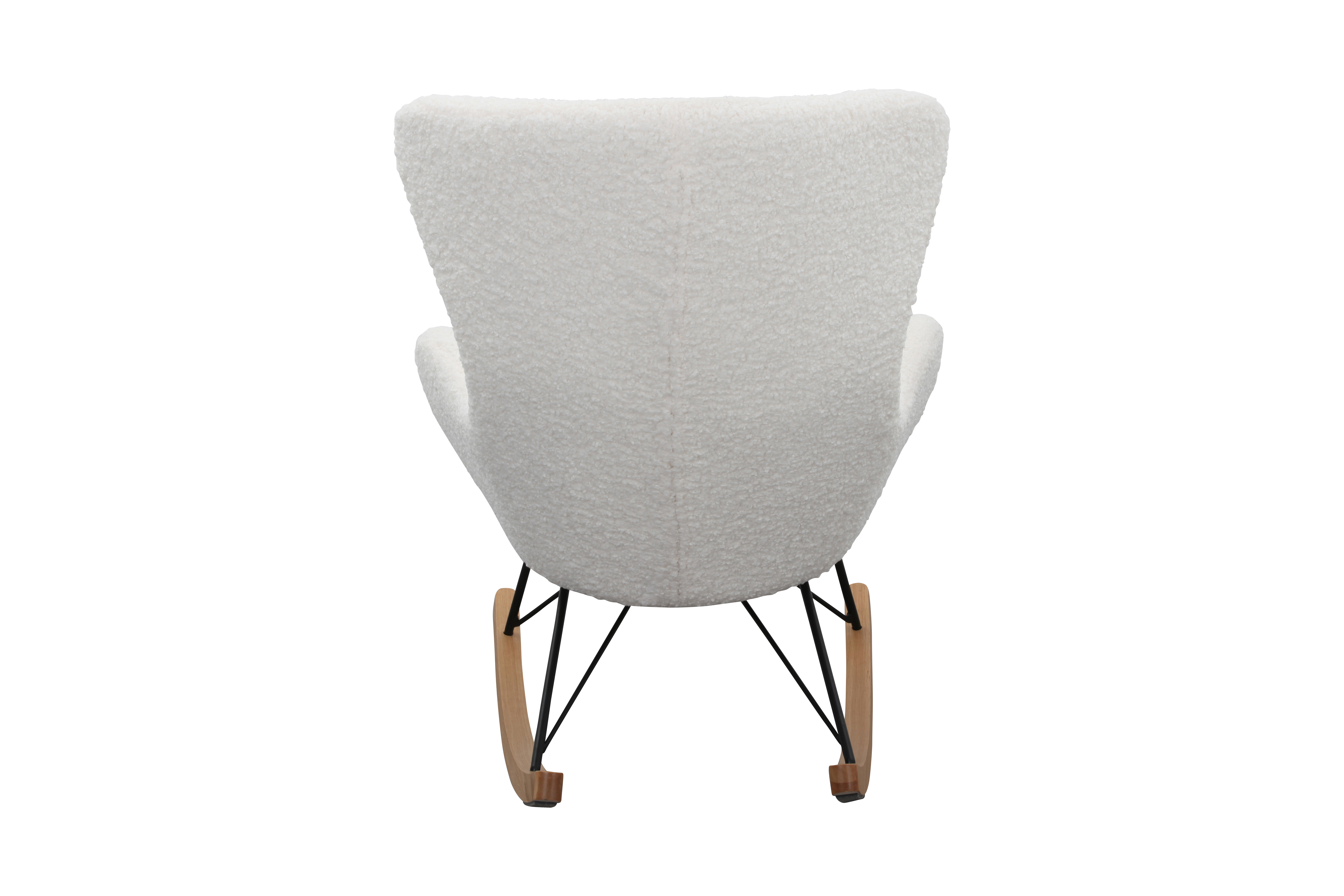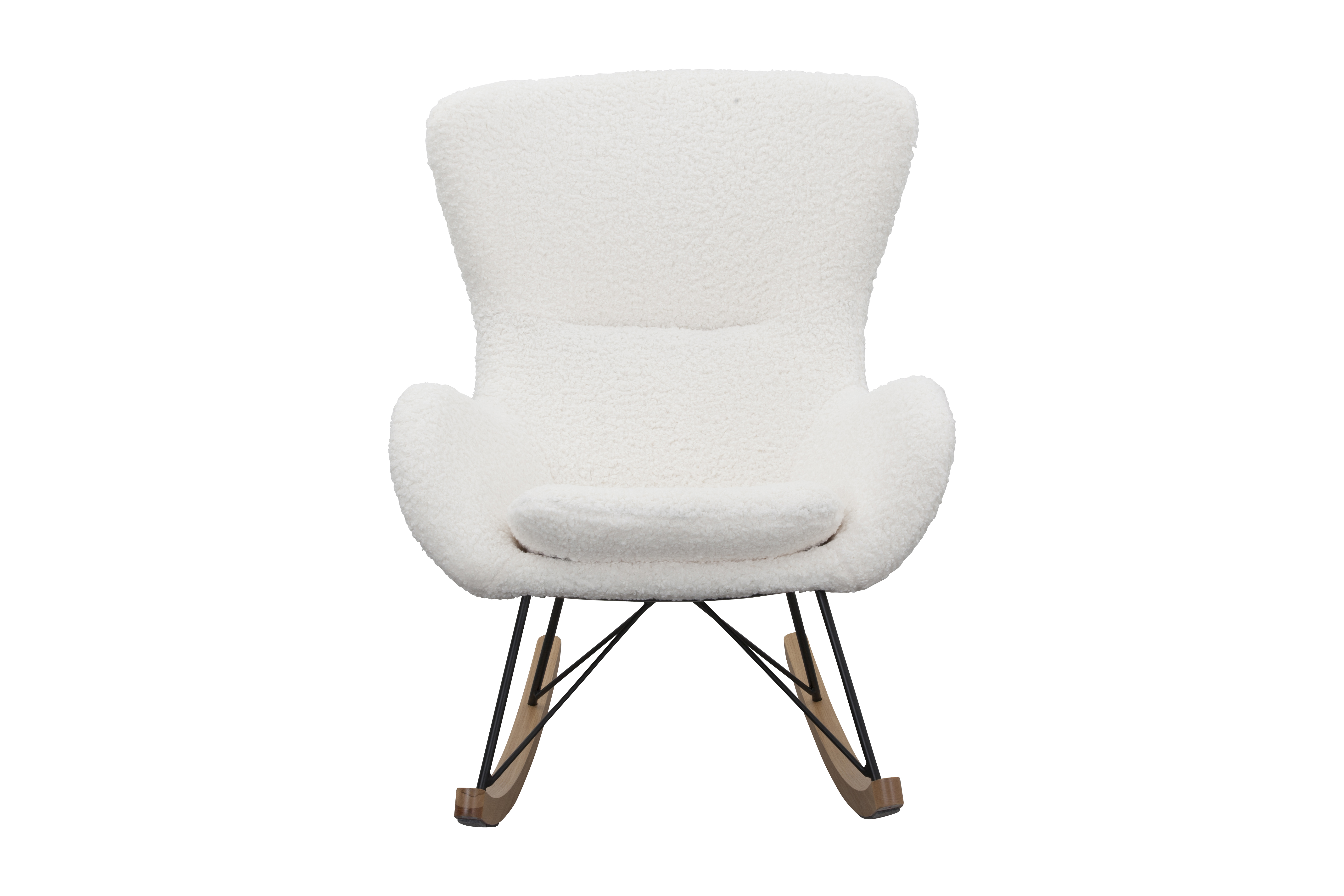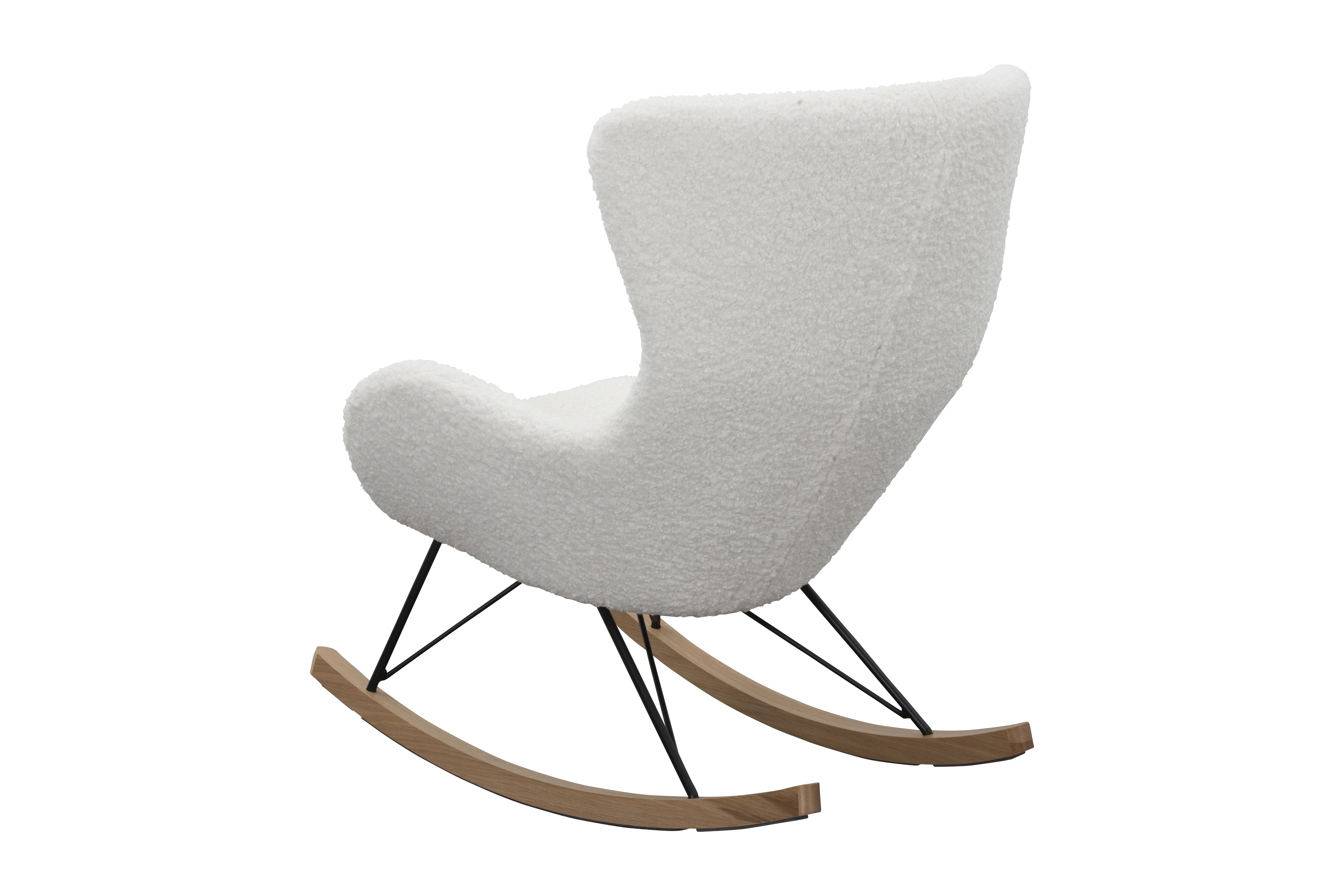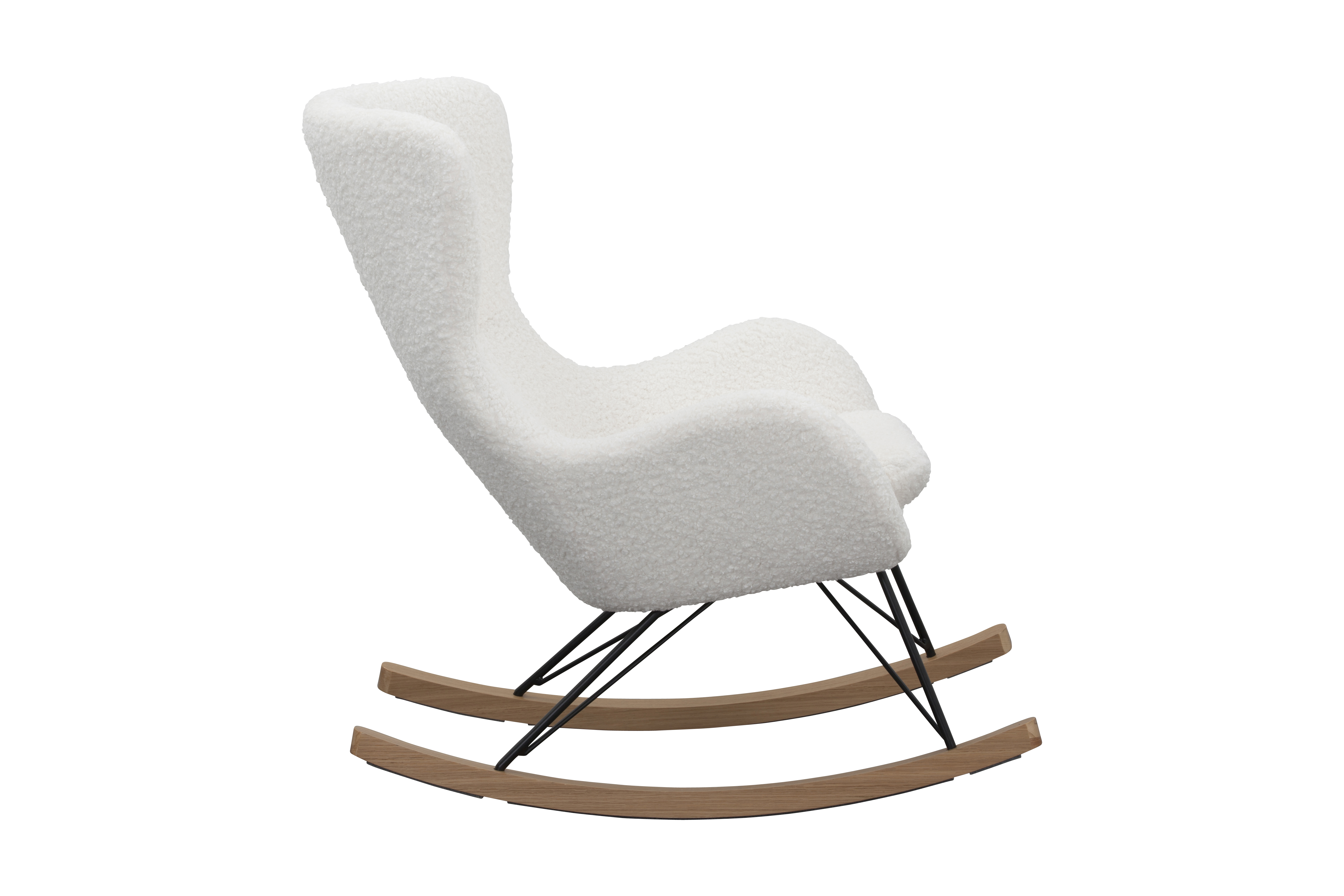 Le mobilier aspect peluche est une tendance de décoration confortable qui a conquis les intérieurs des amateurs de design ! La chaise à bascule de style scandinave séduit par la douceur de son revêtement en peluche. Alors que la structure est en métal thermolaqué ton noir, les deux pieds en arceaux sont en bois massif plaqué chêne. Cette structure garantit non seulement une répartition uniforme du poids et un beau mouvement du fauteuil, mais elle s’harmonise aussi parfaitement avec le revêtement en tissu. Grâce au rembourrage confortable, aux accoudoirs et au coussin d'assise ultra épais, faites l'expérience d'une détente et d'un confort haut de gamme. Le rocking-chair se distingue par son aspect original, sa qualité et sa robustesse. Faites de ce fauteuil à bascule votre nouveau lieu de prédilection et profitez de son confort pendant que vous lisez ou regardez la télévision.