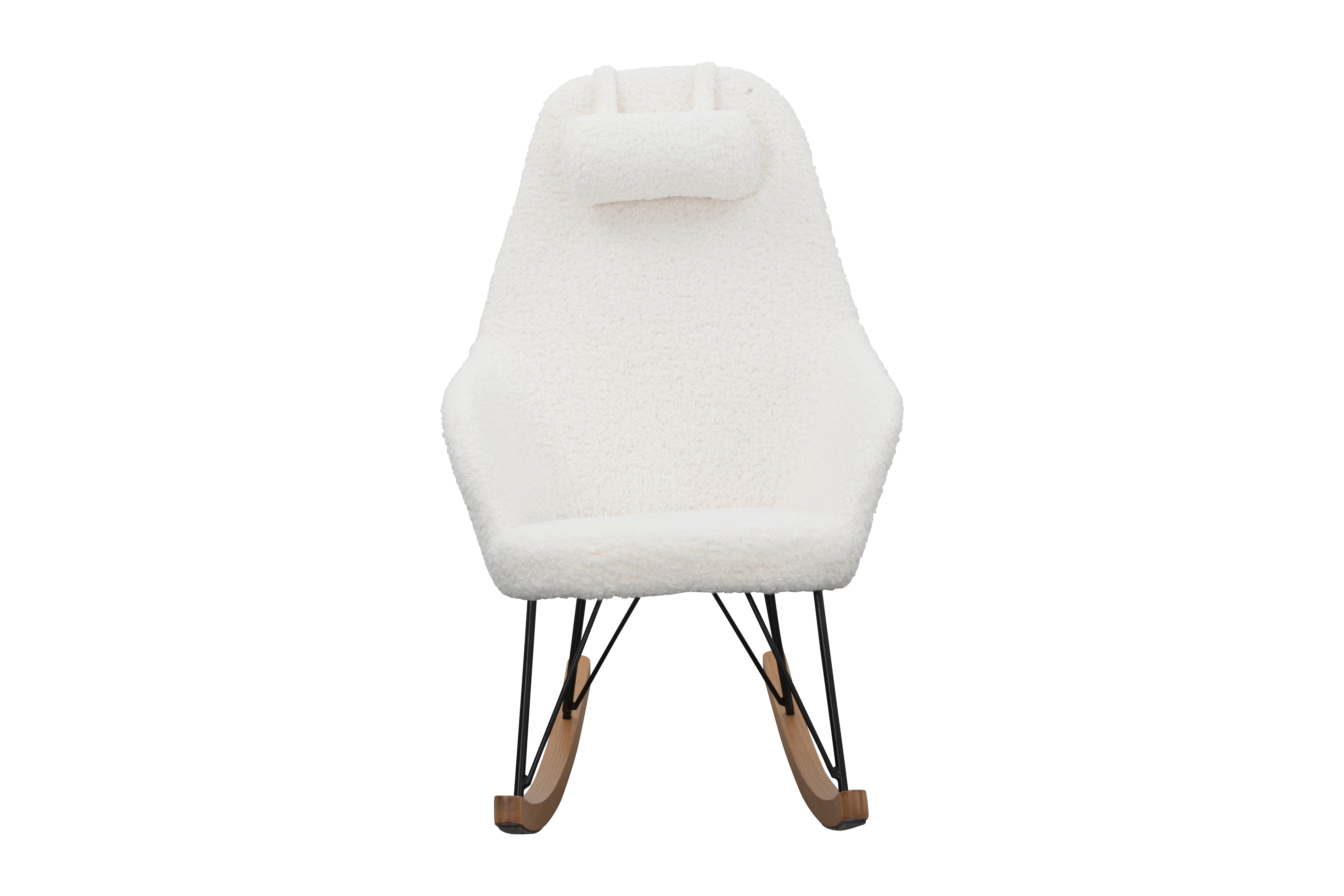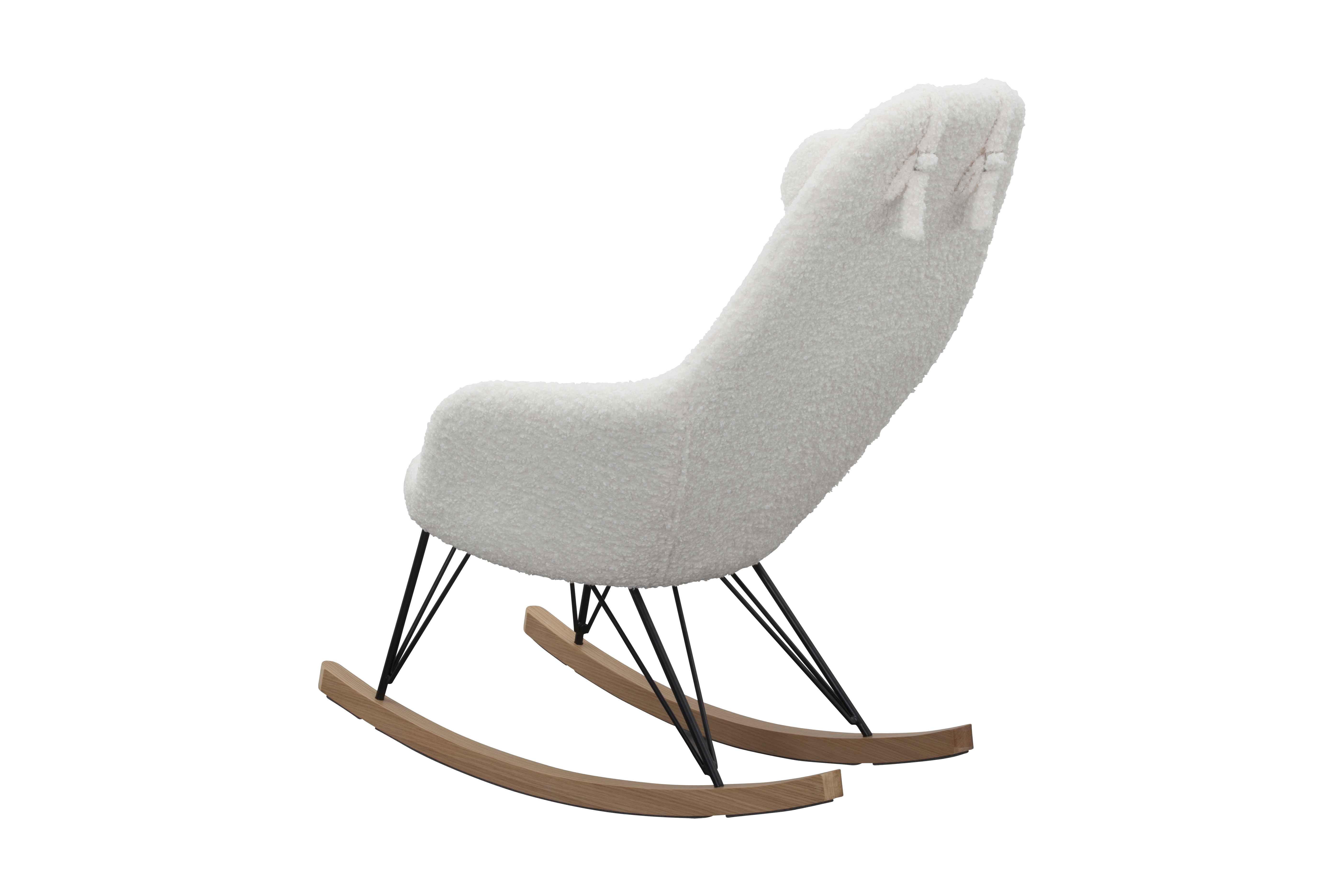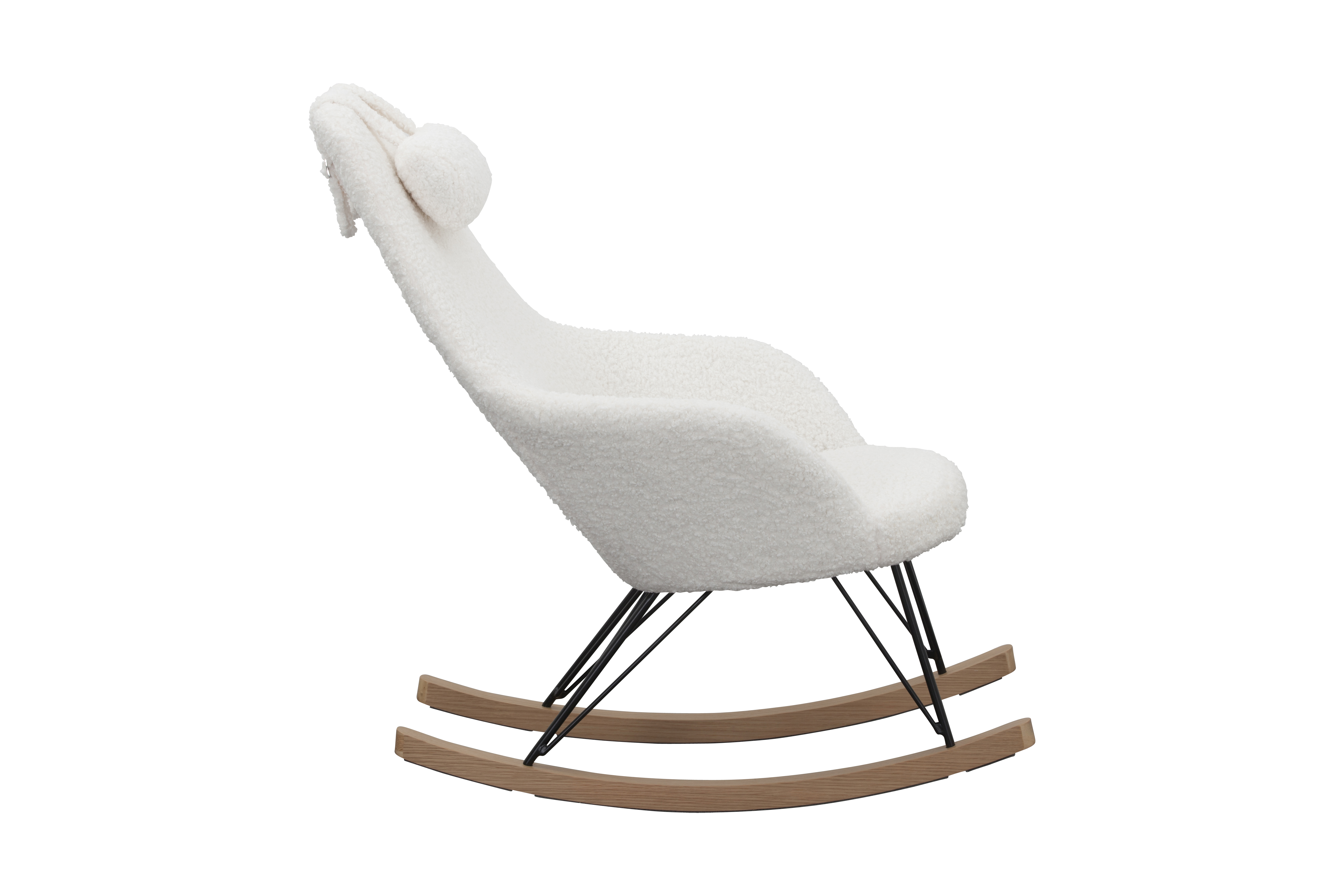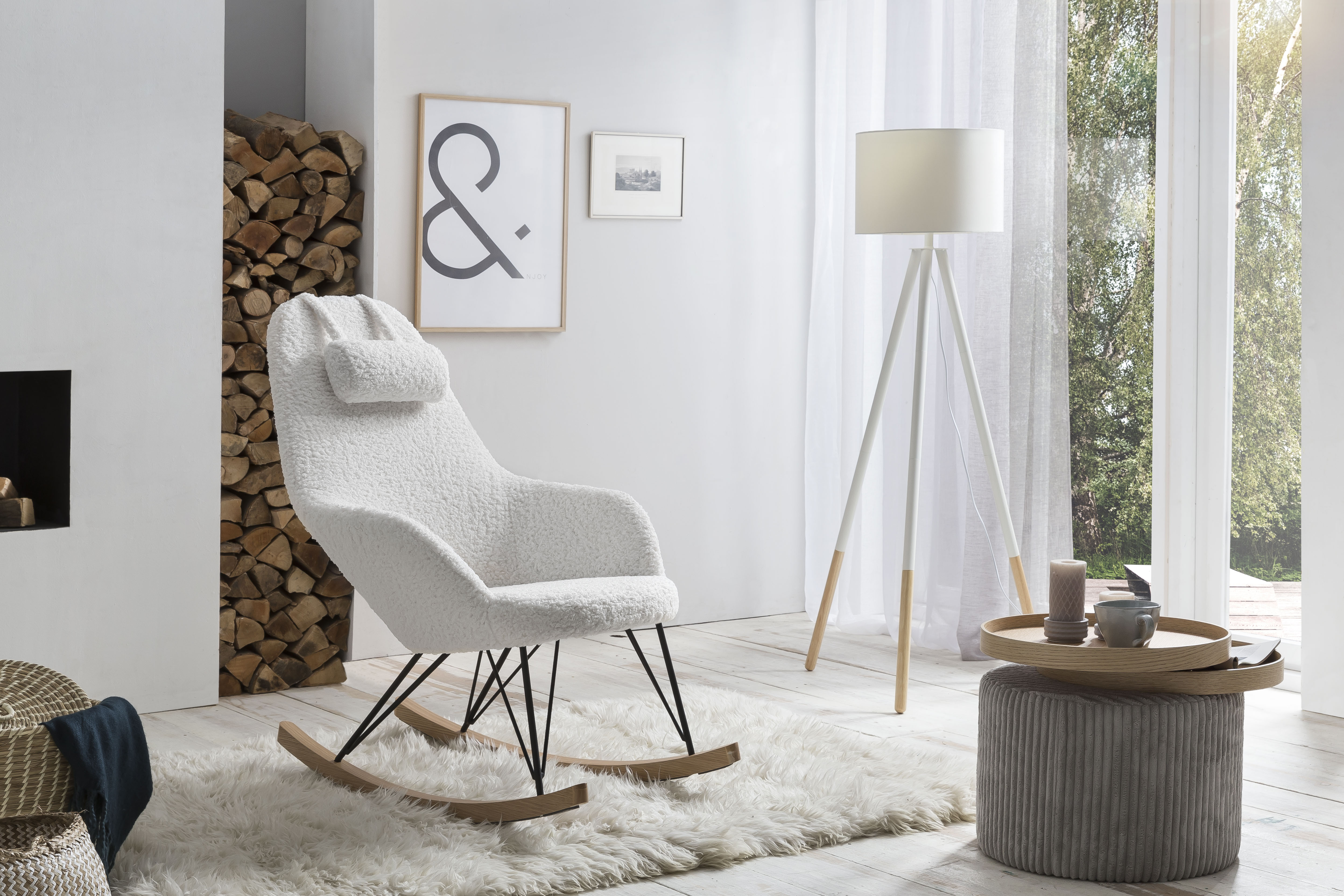 Le mobilier aspect peluche est une tendance de décoration confortable qui a conquis les intérieurs des amateurs de design ! La chaise à bascule de style scandinave séduit par la douceur de son revêtement en peluche. Alors que la structure est en métal thermolaqué ton noir, les deux pieds en arceaux sont en bois massif plaqué chêne. Cette structure garantit non seulement une répartition uniforme du poids et un beau mouvement du fauteuil, mais elle s’harmonise aussi parfaitement avec le revêtement en tissu. Le rocking-chair se distingue par son aspect original, sa qualité et sa robustesse. Faites de ce fauteuil à bascule votre nouveau lieu de prédilection et profitez de son confort pendant que vous lisez ou regardez la télévision.