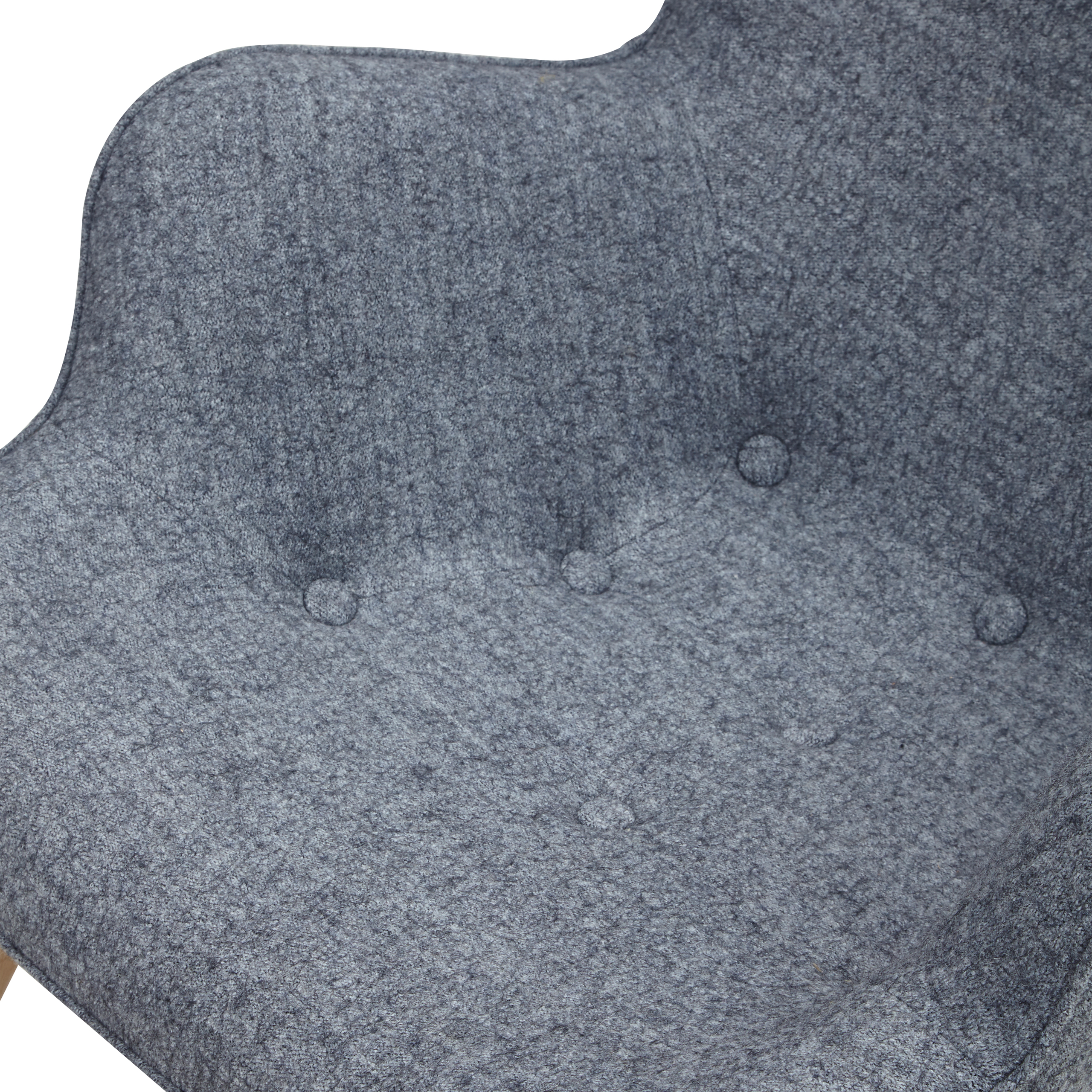 Ce fauteuil moderne de style scandinave se distingue par son revêtement en tissu tissé et ses boutons décoratifs au niveau de l'assise et du dossier. Le piètement 4 pieds en métal aspect chêne garantit non seulement une bonne stabilité, mais offre également un superbe contraste avec le revêtement du fauteuil. La forme ergonomique du fauteuil relax assure un confort d'assise exceptionnel.